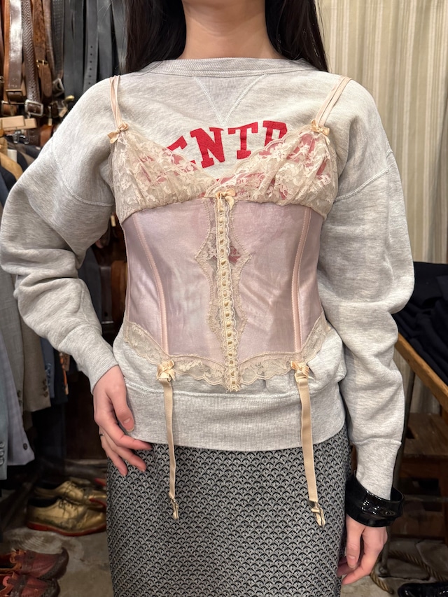 ⬜︎商品説明⬜︎ 古い繊細なシルクとレースが新品では出せない雰囲気を演出してくれます。この年代にしてはやや大きめのアンダーで、ホック部分は調節可能なので厚手のニットの上からでも着用することが可能です。今の時期にもレイヤードに是非いかがでしょうか。 ※全体的に小さなダメージや汚れあり ⬜︎サイズ⬜︎ 総丈:30cm 着丈:16cm トップ:78cm アンダー:70〜75cm アームホール:60cm 裾幅:37cm 着用モデル:162cm ⬛︎お支払い方法 クレジットカード決済のみになります ⬛︎送料 エリア別の料金対応になります ⬛︎⬜︎ATTENTION⬜︎⬛︎ 文章では伝えきれらない古着特有の使用感や経年変化等もございますが、こちらも含めて 楽しんで頂けたらと思います。 商品等の質問は、トップページのcontactからお問い合わせ頂く事が出来ますのでごぜひ利用下さい。 ⬛︎SOLD表示になっていなくてもお買い上げが出来ない場合がございます⬛︎ ※掲載商品は、店頭での販売も行っている為、注文が重複してお買い上げができない場合がございます。 ※営業時間外等に、ご購入決定のご連絡を弊社に直接頂たお客様がいる場合は、webの表示がsoldになっていない状態でもご購入して頂くことが出来ません。決定のご連絡を早く頂いたお客様へ発送とさせて頂きます。 予めご了承下さい。 ◼️店頭での受け取りをご希望される場合 購入画面の備考欄に店頭受け取りの旨をお書き下さい。ご来店頂き、決済を確定させて頂く際に送料分のキャンセル手続きをこちらで行わせていただきます。 ※お問い合わせの返信時間は営業時間内に限ります ※購入後の返品交換は致しかねます 上記の注意事項にご理解のあるお客様に向けて紹介させて頂きたいと思います。