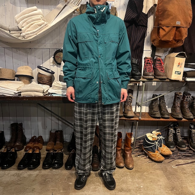 ⬜︎商品説明⬜︎ ヒルトンから90年代頃のマウンテンパーカーになります。表記Lサイズ。表、裏と共にコットン100%になります。着画のように腹付近にドローカードが入っていてかなり紐を絞って着用することもできます。ポケットの裏や、襟の裏の写真の通り元の色からかなり焼けて良いフェードの色味になっています。裏地の色もとても良くヴァーガンディーのような色味で鮮やかで良いです。 襟の部分にはスナップボタンが付いているので折っても立ててもどちらでも使えるアイテムになっています。 内ポケにはジップが付いていてまさにアウトドアならではの発想で、日常使いでも単純に使いやすいアイテムになっています。 お探しの方はぜひ。 ⬜︎サイズ⬜︎ 着丈79cm 裄丈90cm 身幅66cm 着用モデル:178cm ⬛︎お支払い方法 クレジットカード決済のみになります ⬛︎送料 エリア別の料金対応になります ⬛︎⬜︎ATTENTION⬜︎⬛︎ 文章では伝えきれらない古着特有の使用感や経年変化等もございますが、こちらも含めて 楽しんで頂けたらと思います。 商品等の質問は、トップページのcontactからお問い合わせ頂く事が出来ますのでごぜひ利用下さい。 ⬛︎SOLD表示になっていなくてもお買い上げが出来ない場合がございます⬛︎ ※掲載商品は、店頭での販売も行っている為、注文が重複してお買い上げができない場合がございます。 ※営業時間外等に、ご購入決定のご連絡を弊社に直接頂たお客様がいる場合は、webの表示がsoldになっていない状態でもご購入して頂くことが出来ません。決定のご連絡を早く頂いたお客様へ発送とさせて頂きます。 予めご了承下さい。 ◼️店頭での受け取りをご希望される場合 購入画面の備考欄に店頭受け取りの旨をお書き下さい。ご来店頂き、決済を確定させて頂く際に送料分のキャンセル手続きをこちらで行わせていただきます。 ※お問い合わせの返信時間は営業時間内に限ります ※購入後の返品交換は致しかねます 上記の注意事項にご理解のあるお客様に向けて紹介させて頂きたいと思います。