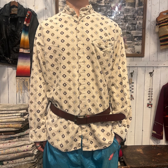 ⬜︎商品説明⬜︎ 小紋柄のようなものが入っているスタンドカラーのコーデュロイシャツでございます。 一見、プルオーバーのコーデュロイシャツに見えますが、フルでボタンが付いており、4ボタン辺りから 比翼になっている、古着好きにはたまらないディテール。まさに変わり種というアイテムではないでしょうか。 状態は、タグが欠損しております。 店頭でも秋に向けてコーデュロイシャツなどに 動きがあり、少しづつ準備している方も多いはず。 このような変わり種をお探しの方はぜひ。 ⬜︎サイズ⬜︎ 着用モデル:177cm 着丈77.5cm 身幅63cm 肩幅53.5cm 袖丈59cm ⬛︎お支払い方法 クレジットカード決済のみになります A⬛︎送料 エリア別の料金対応になります ⬛︎⬜︎ATTENTION⬜︎⬛︎ 文章では伝えきれらない古着特有の使用感や経年変化等もございますが、こちらも含めて 楽しんで頂けたらと思います。 商品等の質問は、トップページのcontactからお問い合わせ頂く事が出来ますのでごぜひ利用下さい。 ⬛︎SOLD表示になっていなくてもお買い上げが出来ない場合がございます⬛︎ ※掲載商品は、店頭での販売も行っている為、注文が重複してお買い上げができない場合がございます。 ※営業時間外等に、ご購入決定のご連絡を弊社に直接頂たお客様がいる場合は、webの表示がsoldになっていない状態でもご購入して頂くことが出来ません。決定のご連絡を早く頂いたお客様へ発送とさせて頂きます。 予めご了承下さい。 ◼️店頭での受け取りをご希望される場合 購入画面の備考欄に店頭受け取りの旨をお書き下さい。ご来店頂き、決済を確定させて頂く際に送料分のキャンセル手続きをこちらで行わせていただきます。 ※お問い合わせの返信時間は営業時間内に限ります ※購入後の返品交換は致しかねます 上記の注意事項にご理解のあるお客様に向けて紹介させて頂きたいと思います。