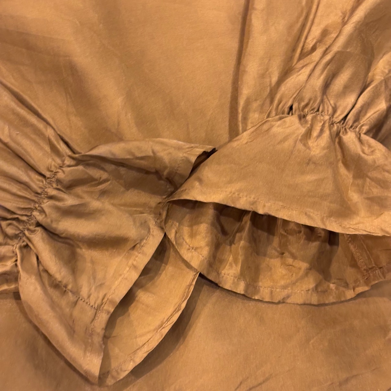 軽めのサラサラとした素材で、前がボタンで開くので羽織るのにも使えます。