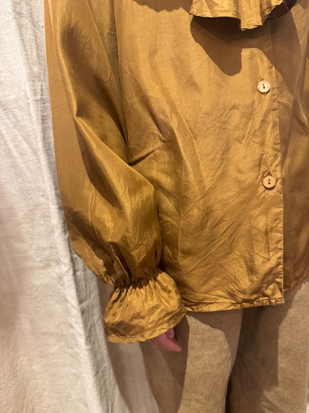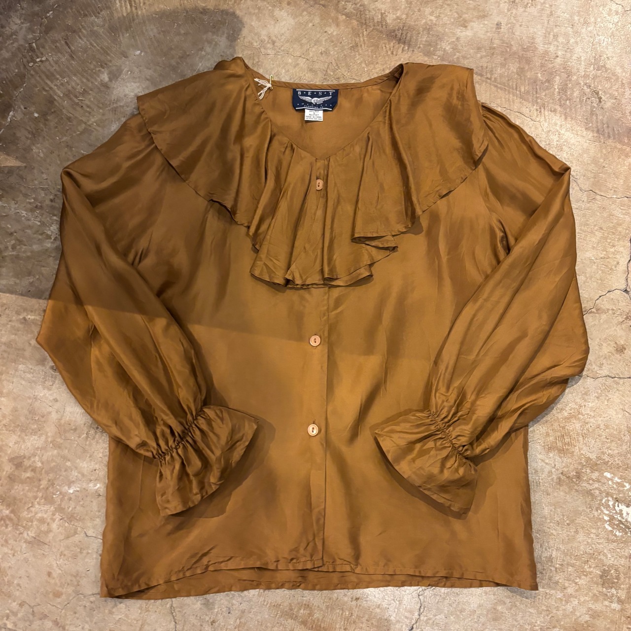 襟元、袖に大きめのフリルが付いていて可愛らしいです。