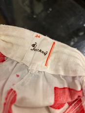 ラブリーな柄が目を惹くトランクスです。キャッチーなタッチで描かれた恋するインディアンの男女がプリントされており、とても可愛いです。大きめなサイズ感で、メンズ・ウィメンズ共に着用して頂けると思います。ワタリ幅も大きめですので、少し細身のパンツの上からレイヤードするのもオススメのスタイルです。透け感がございますので、着用の際はご注意くださいませ。