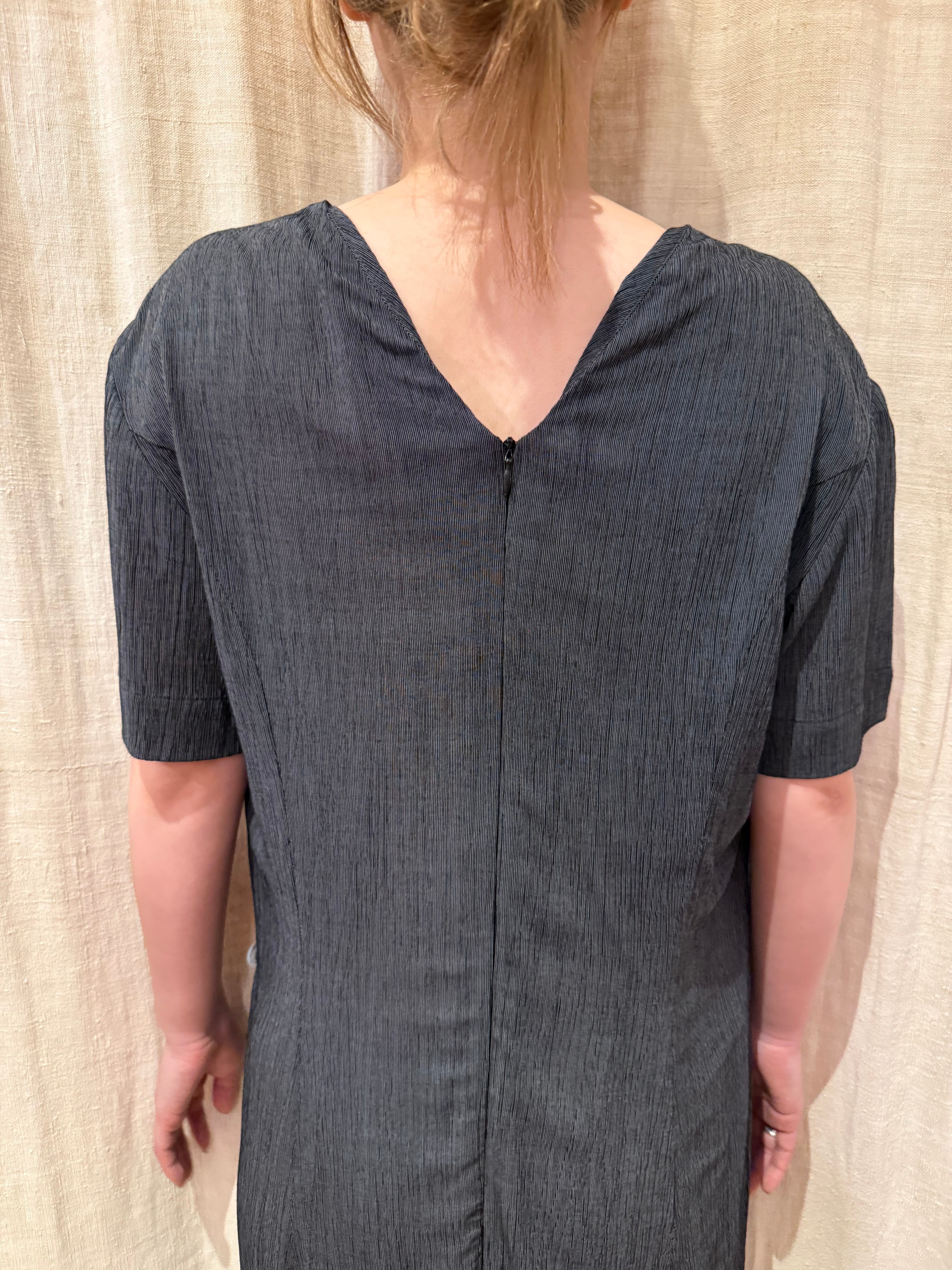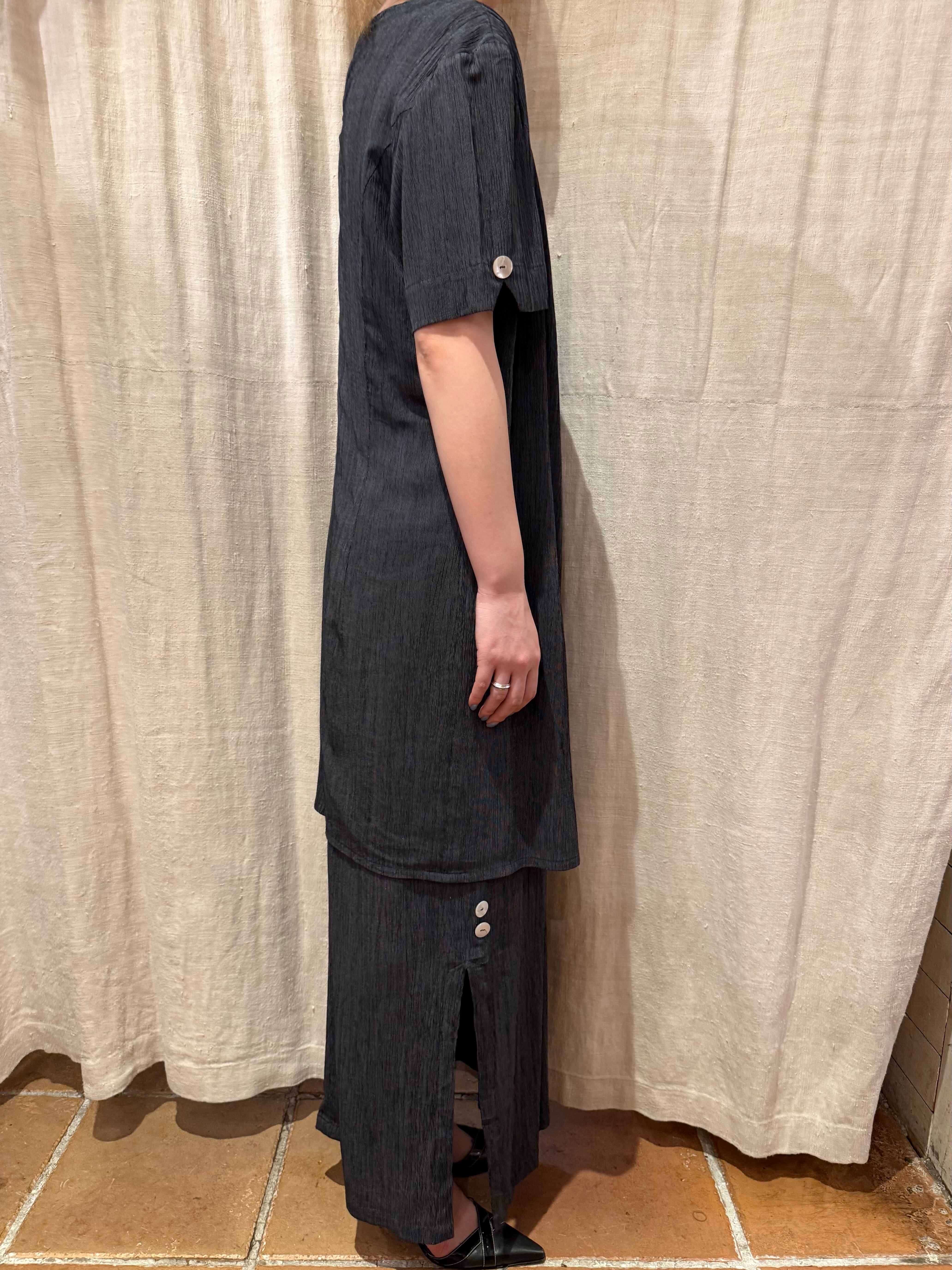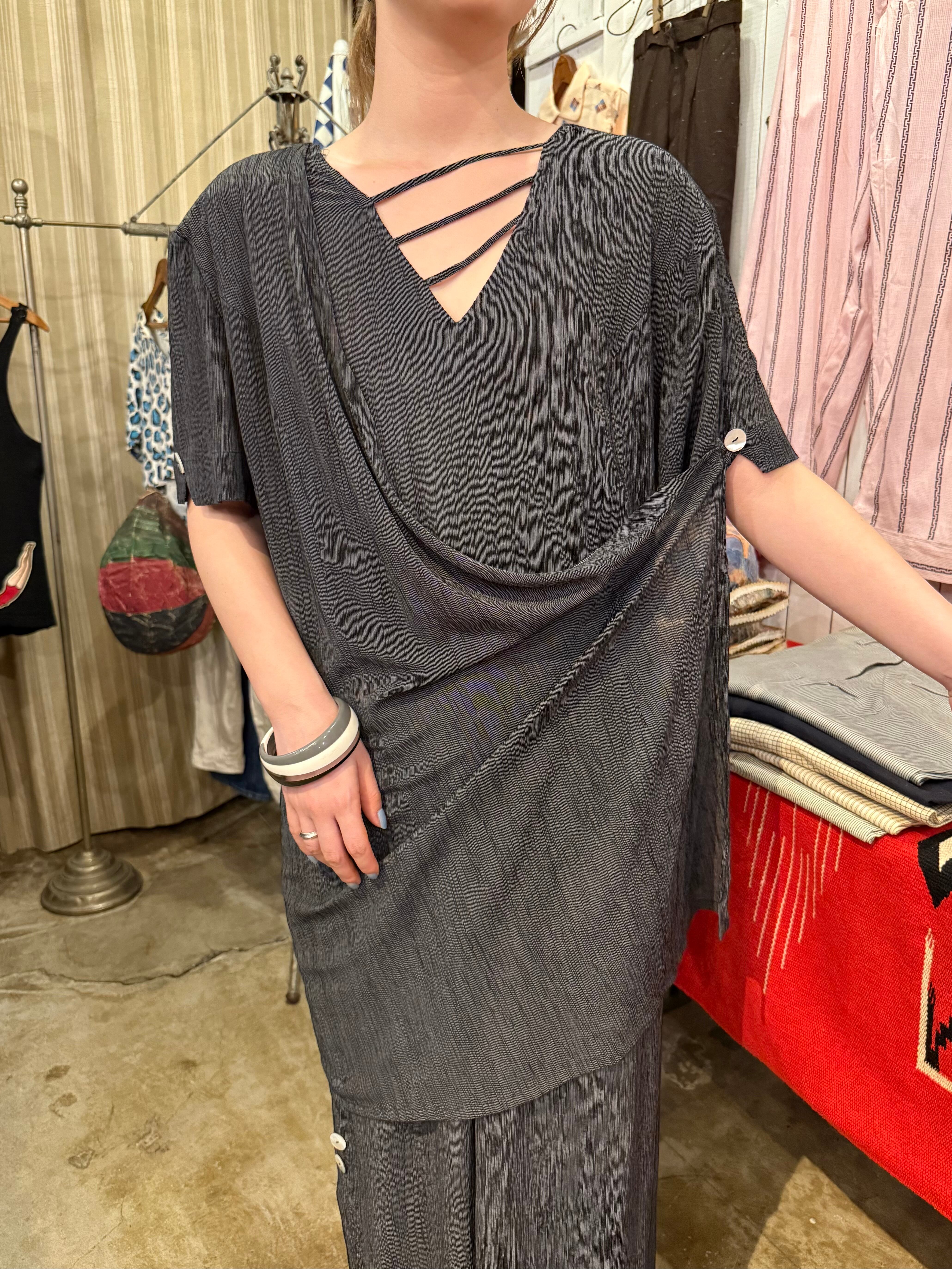 細かいストライプ柄の入る生地でくたっと身体に馴染みます。