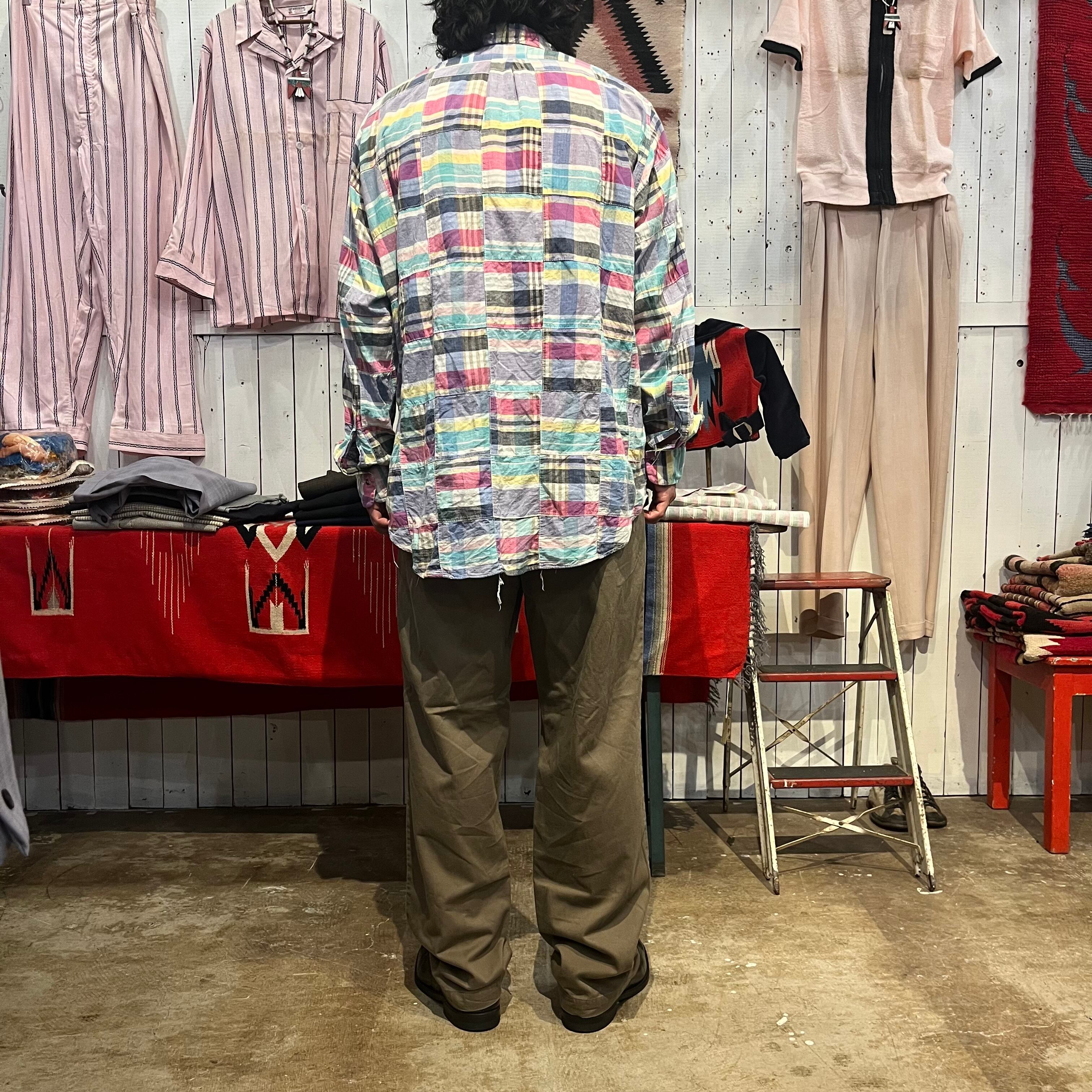 こちらはブルックスブラザーズから、クレイジーパターンのロングスリーブシャツになります。USA製。裾のラウンド感が程よく色味も柔らかい印象で一枚でも決まりますし、Tシャツに合わせてもバランスが取れるシャツになっています。ゆったり着れるサイズになっていると思いますのでこれからの時期にも着用しやすい一枚です。なかなかこのカラーのパターンのものは見ないと思いますのでお探しの方はお早めに。
