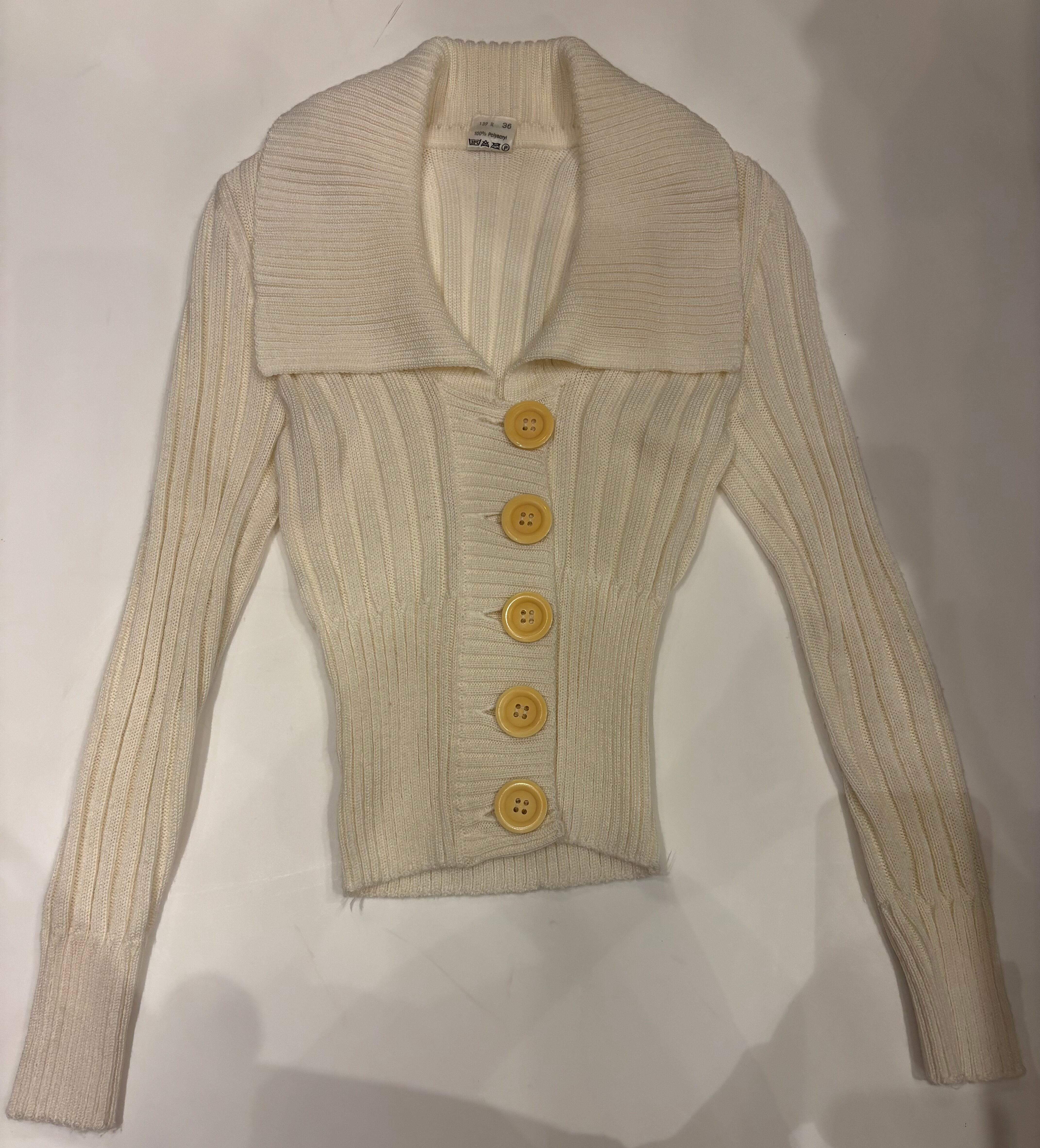 大きな襟にボタン、タイトなシルエットがとても可愛いく、女性らしいです。ボタン下2個ほど開けて着用しても違った雰囲気で楽しめます。いろんなコーディネートに合わせやすく、様々なシーンで活躍しそうです。