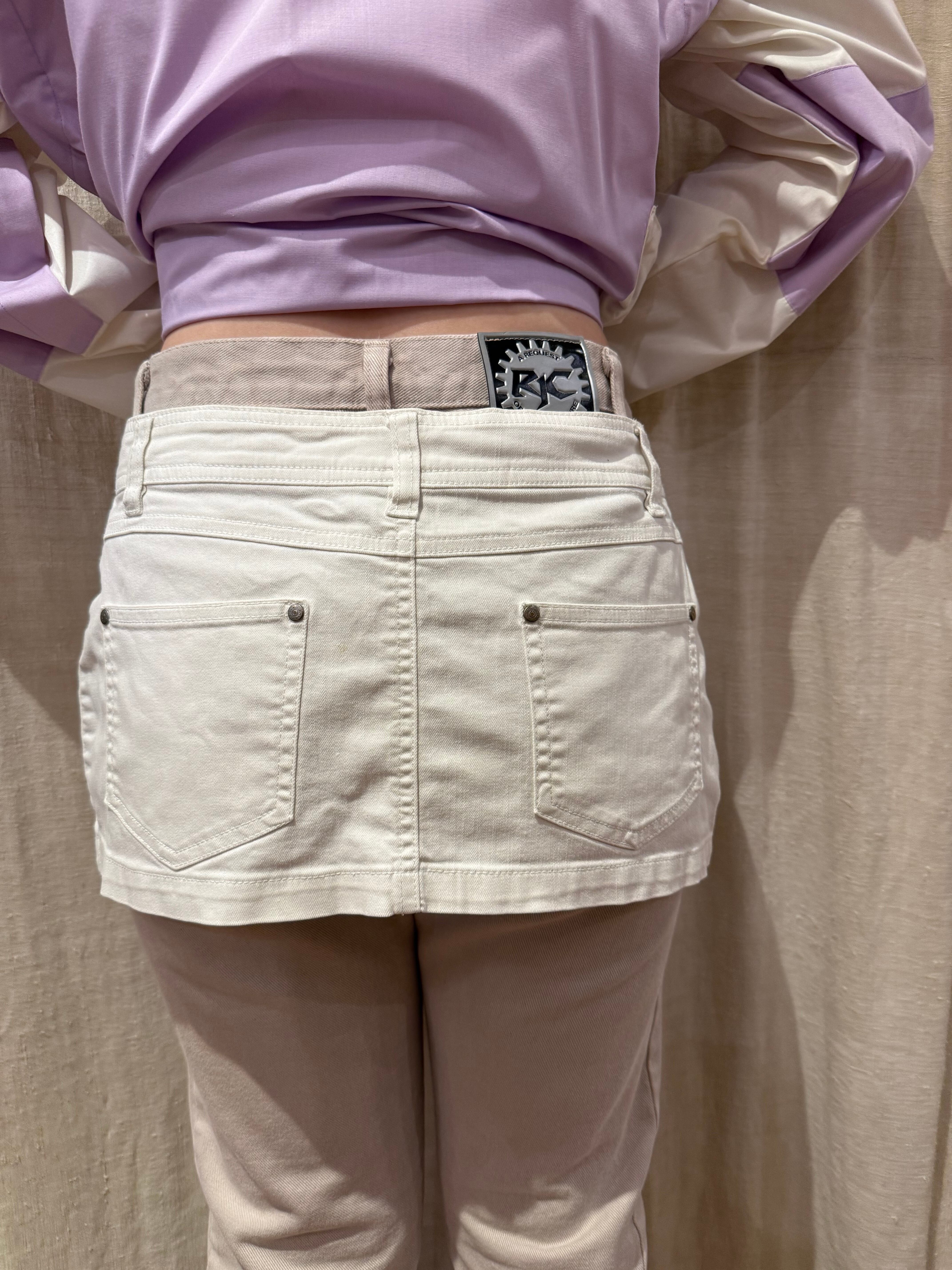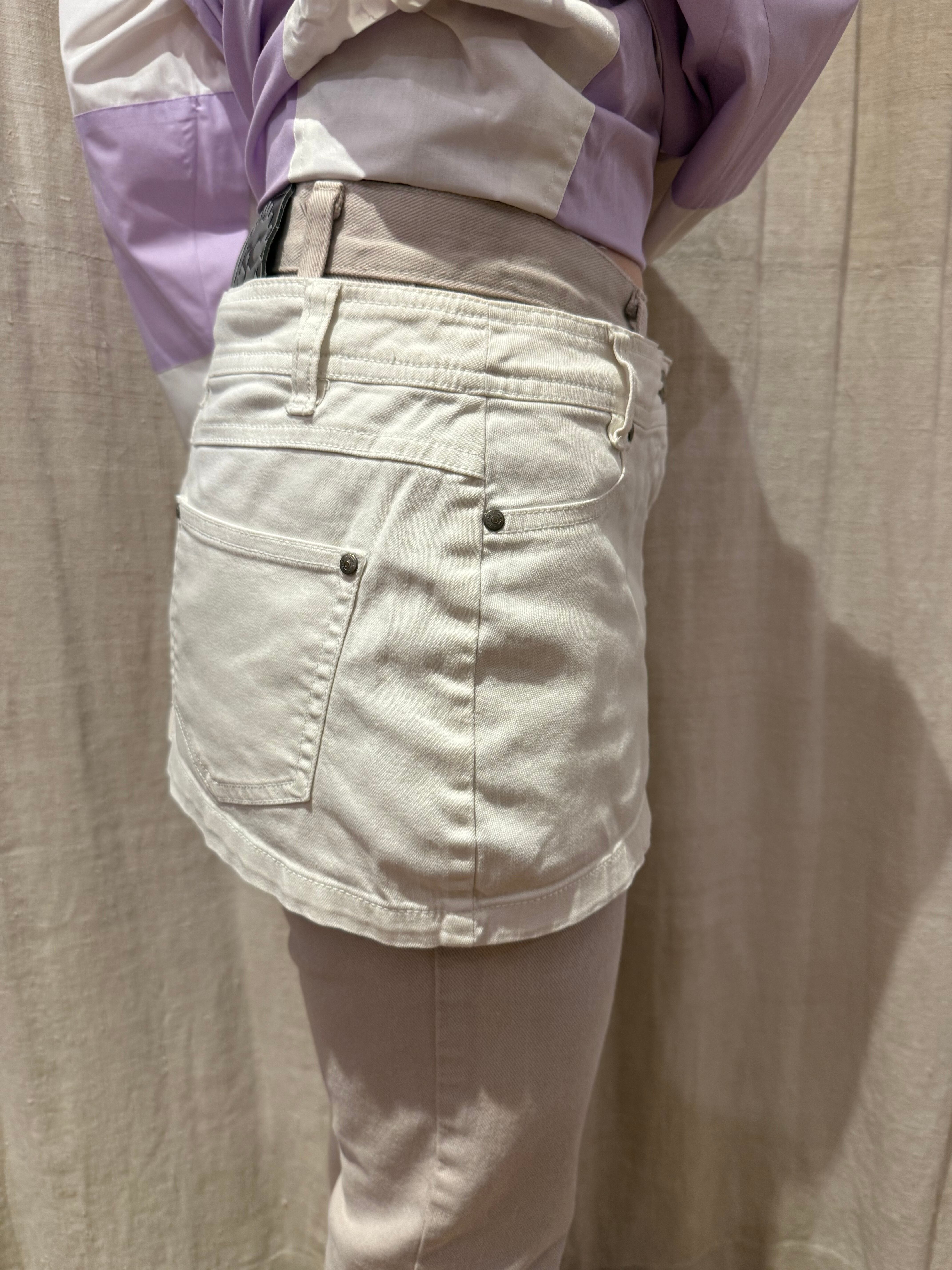 ホワイトカラーがどんなアイテムとも相性がよく、使い勝手の良いデニムのミニスカート。腰履きしても可愛らしく、パンツと重ねても◎秋冬はタイツやレギンスパンツを履いてブーツなどで合わせても可愛らしいです。