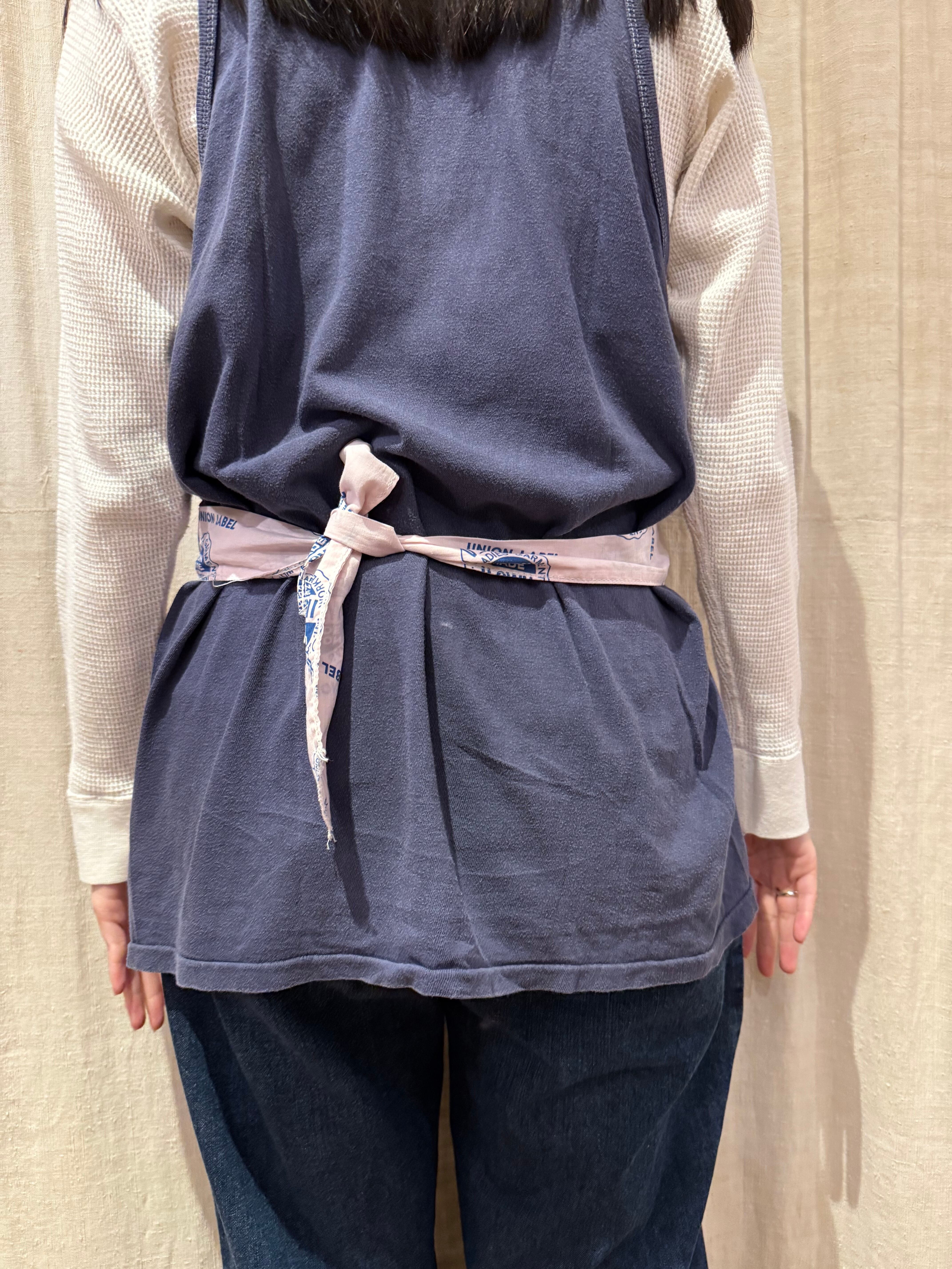 淡いピンクが可愛らしいエプロン。UNION MADEのタグのモチーフ柄で、珍しいデザインとなっております。ヴィンテージとも相性が良く、コーディネートのアクセントになります。着ける位置を自分なりに探すのも楽しいコーディネート探しになりそうです♩