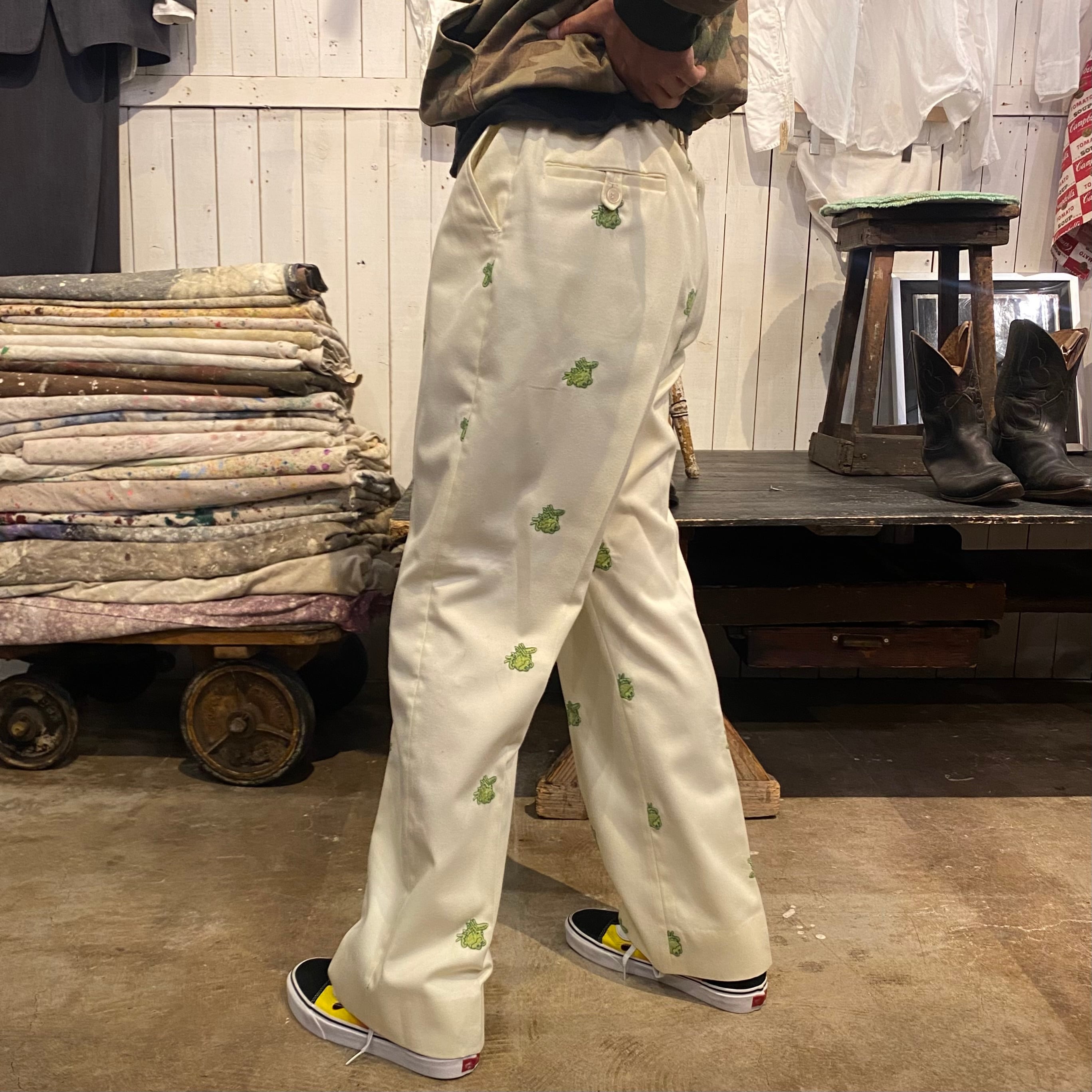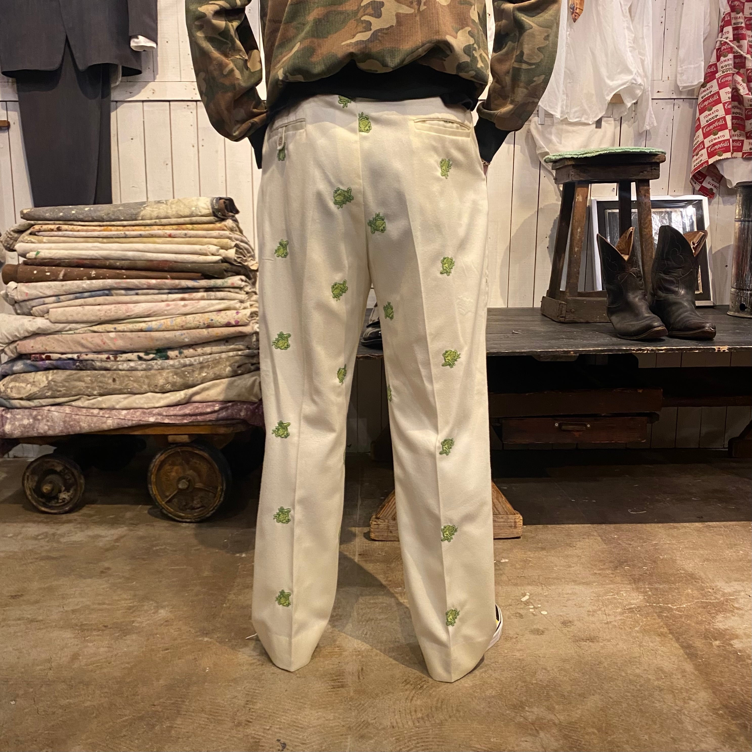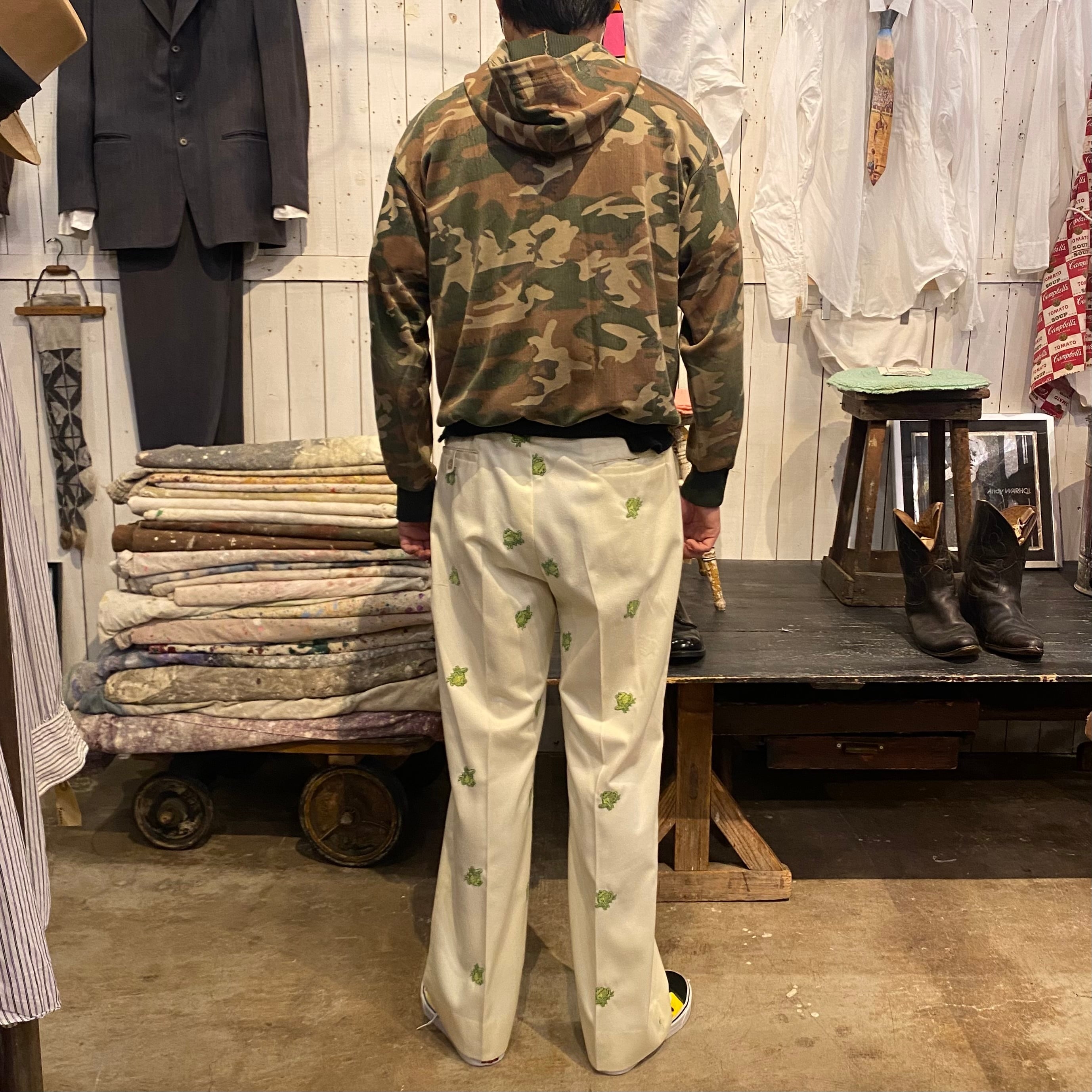 1970年代くらいの刺繍パンツです。素材表記はないですがコットンだと思います。柔らかくて履き心地のよいコットンです。