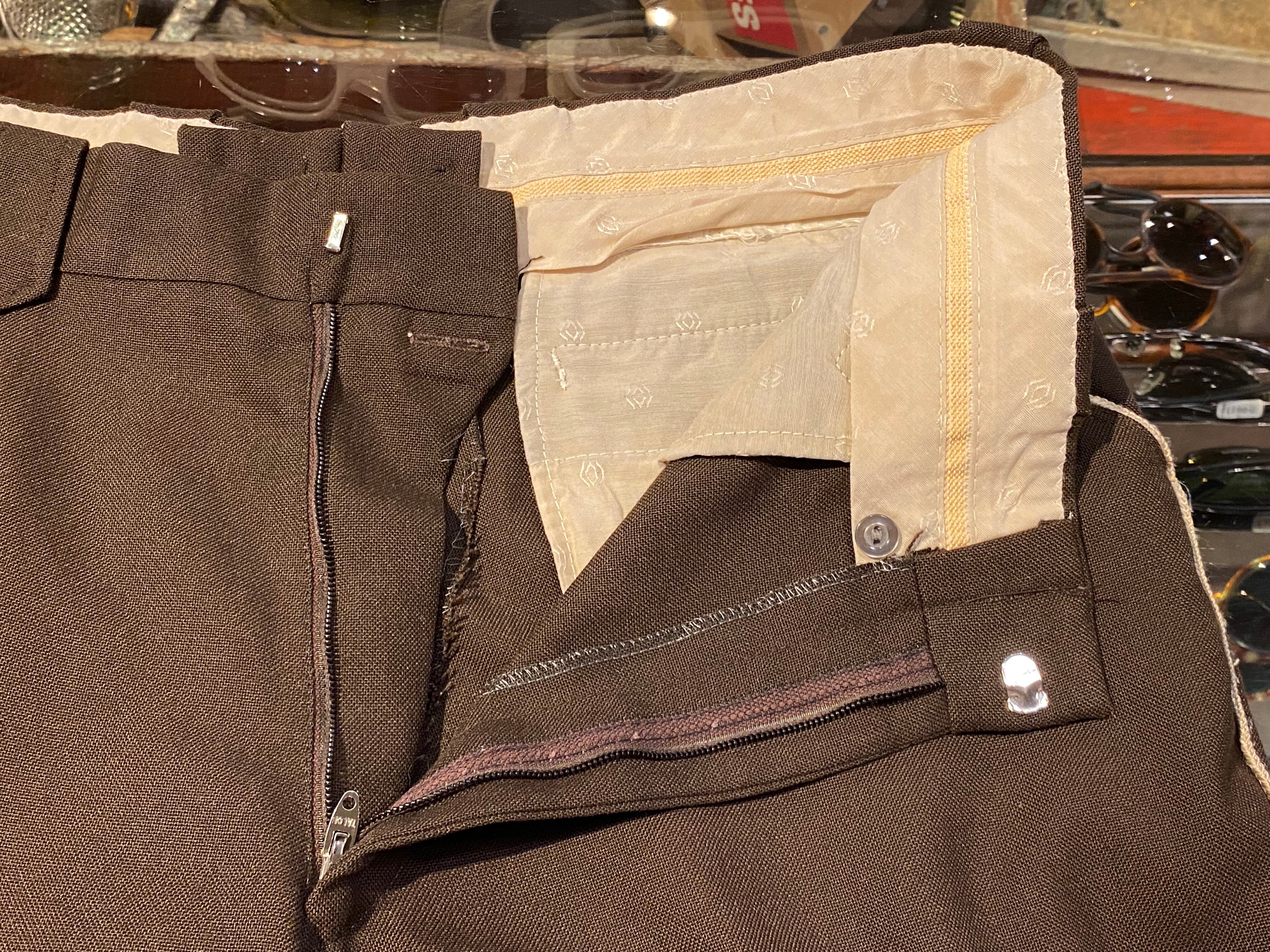 ダークブラウンにサイドに側章の入ったウエスタンパンツです。サイドに紐がついておりラインパンツのようになってます。デザインはとても良いです。