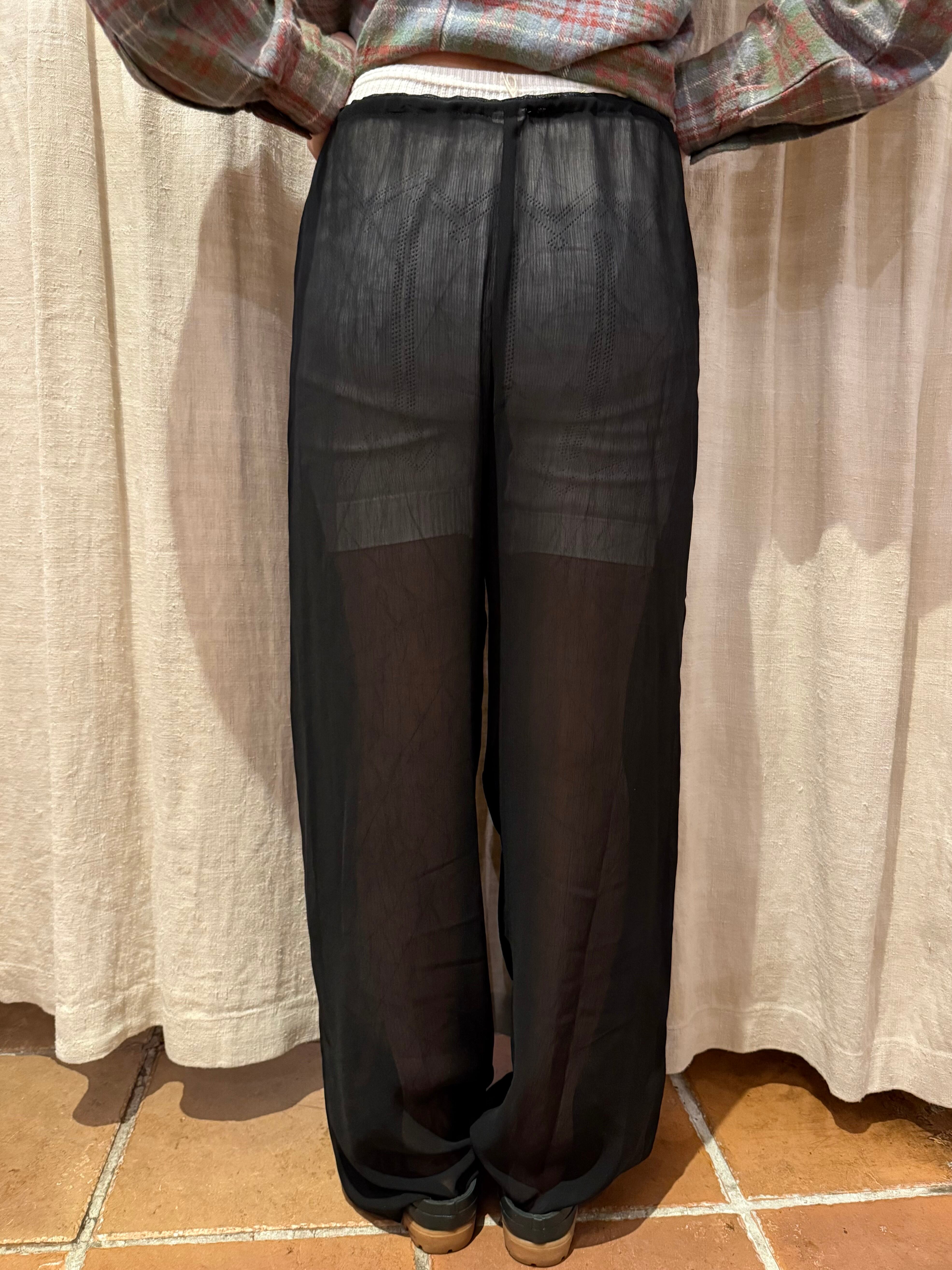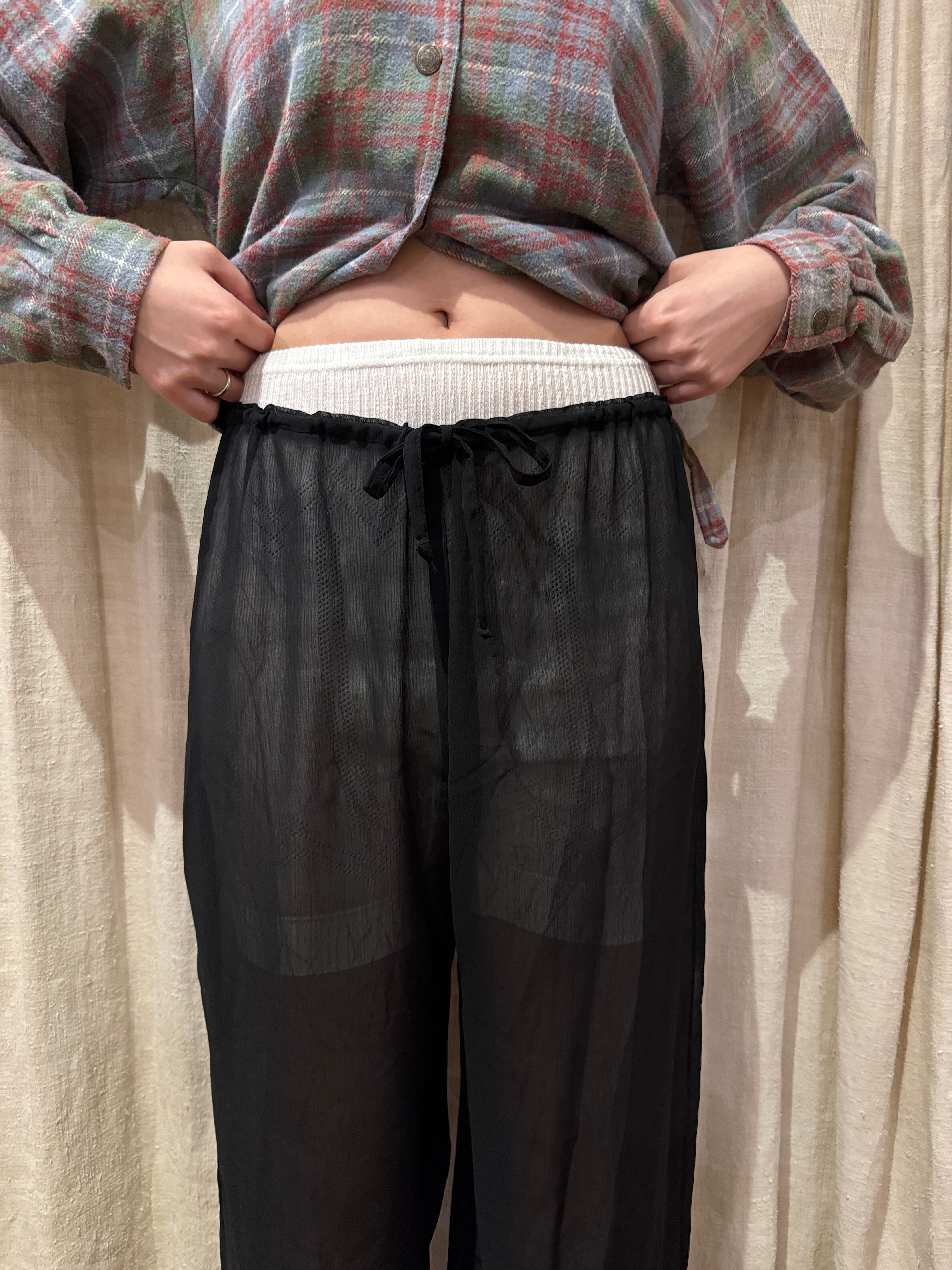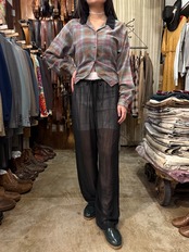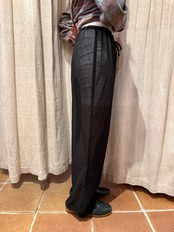 透け感のある軽めの素材で、それぞれのシーズンに取り入れやすいアイテム。ゆったりとしたシルエットでラフな着心地。ウエストは調節が可能となっております。これからの季節は下にパンツやタイツ、レギンスなど仕込んでも良さそうです。