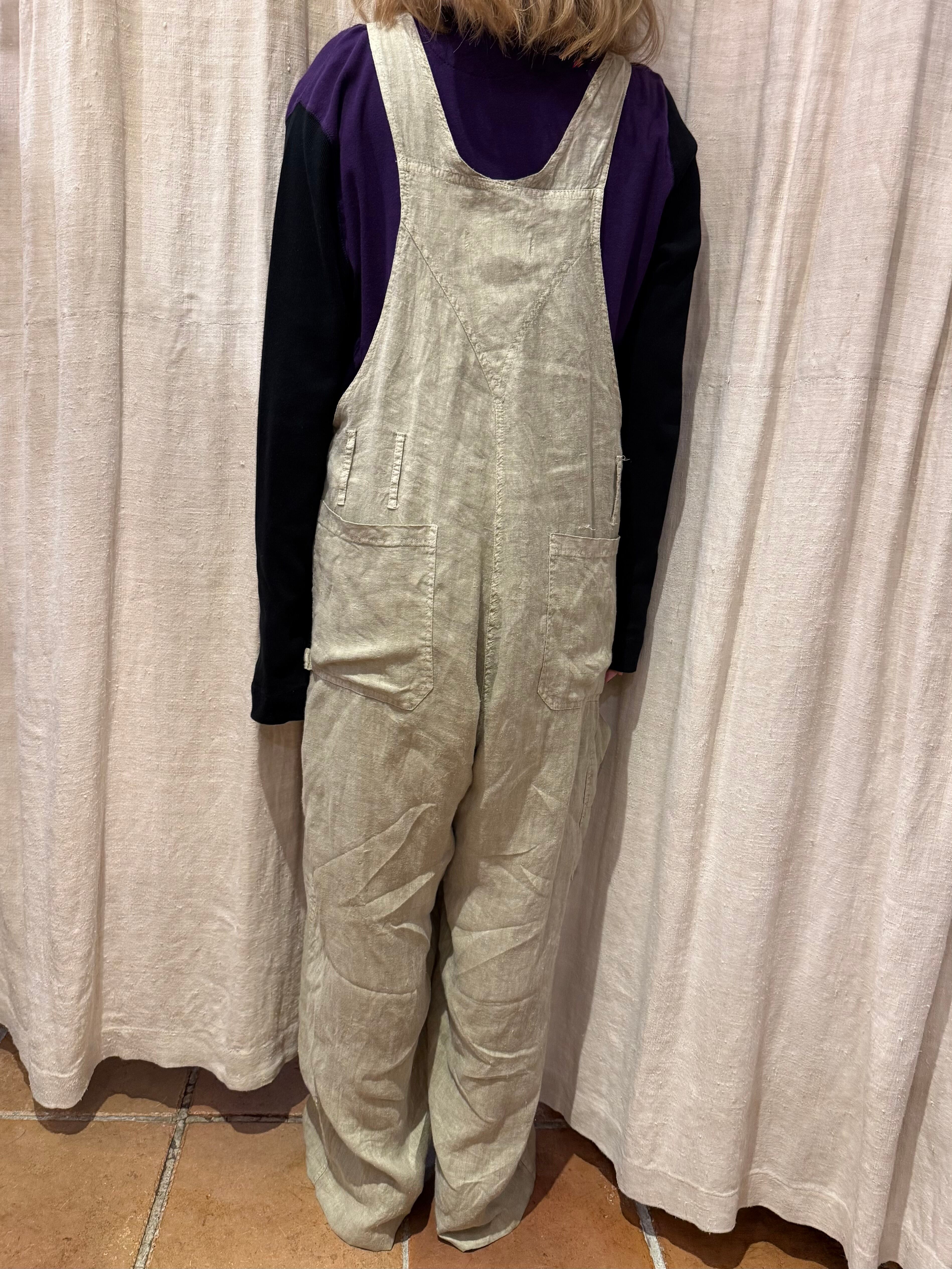 テロテロとしたリネン素材のオーバーオール。軽い着心地でオーバーオールですが肩に負担なく着用することができます。ベージュのような淡いカラーでトーディナーとに取り入れやすいです。リネンですがあえてこれからの季節に着用しても◎おすすめです。