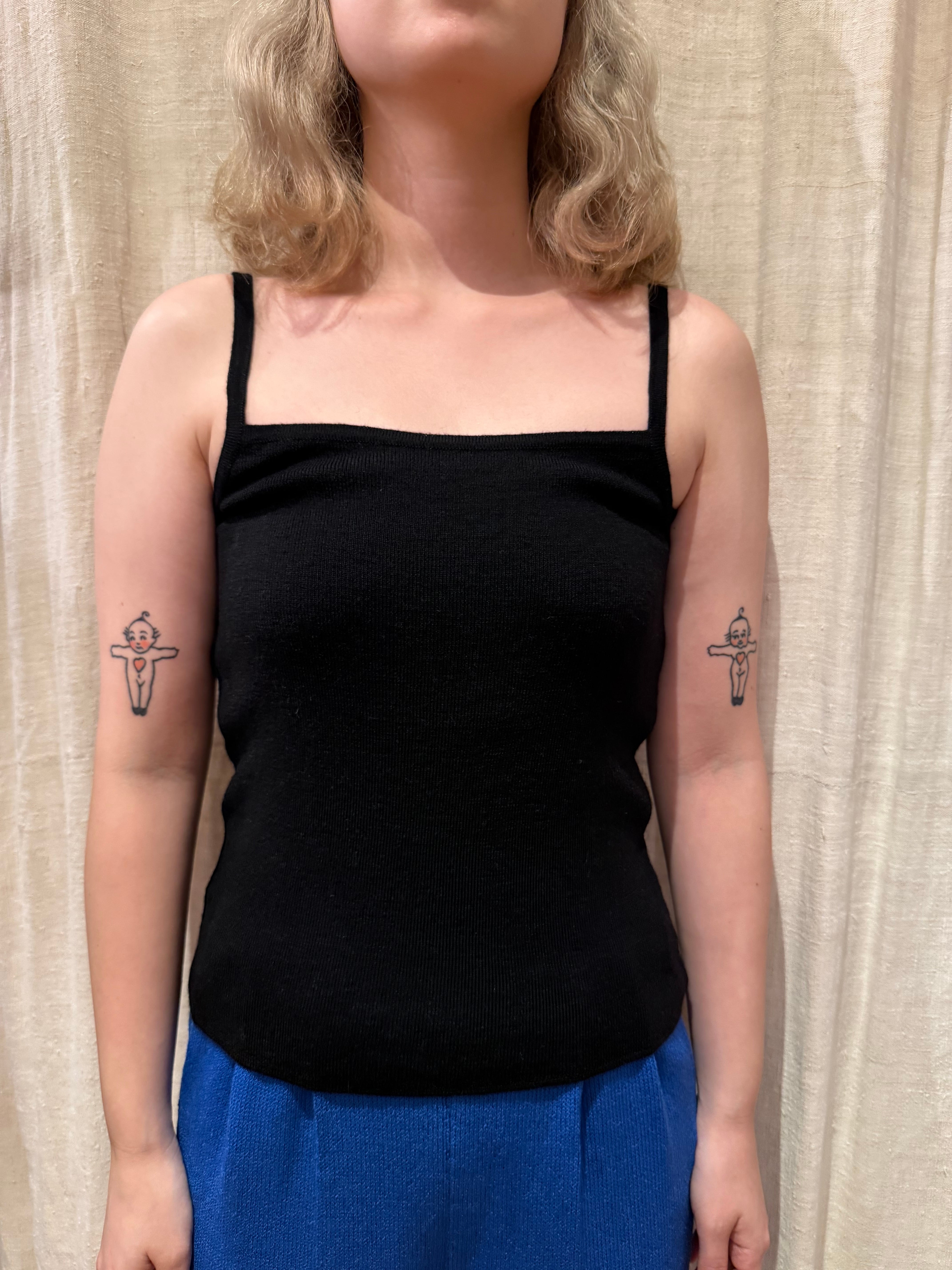 伸縮性があり肌触りの良いニットキャミソール。チクチクする事はなく、素肌の上からでも着用出来ます。インナーとしても使えますが、レイヤードをする時にもをするときにも使えるアイテムです。今の時期にぴったりな一着です。