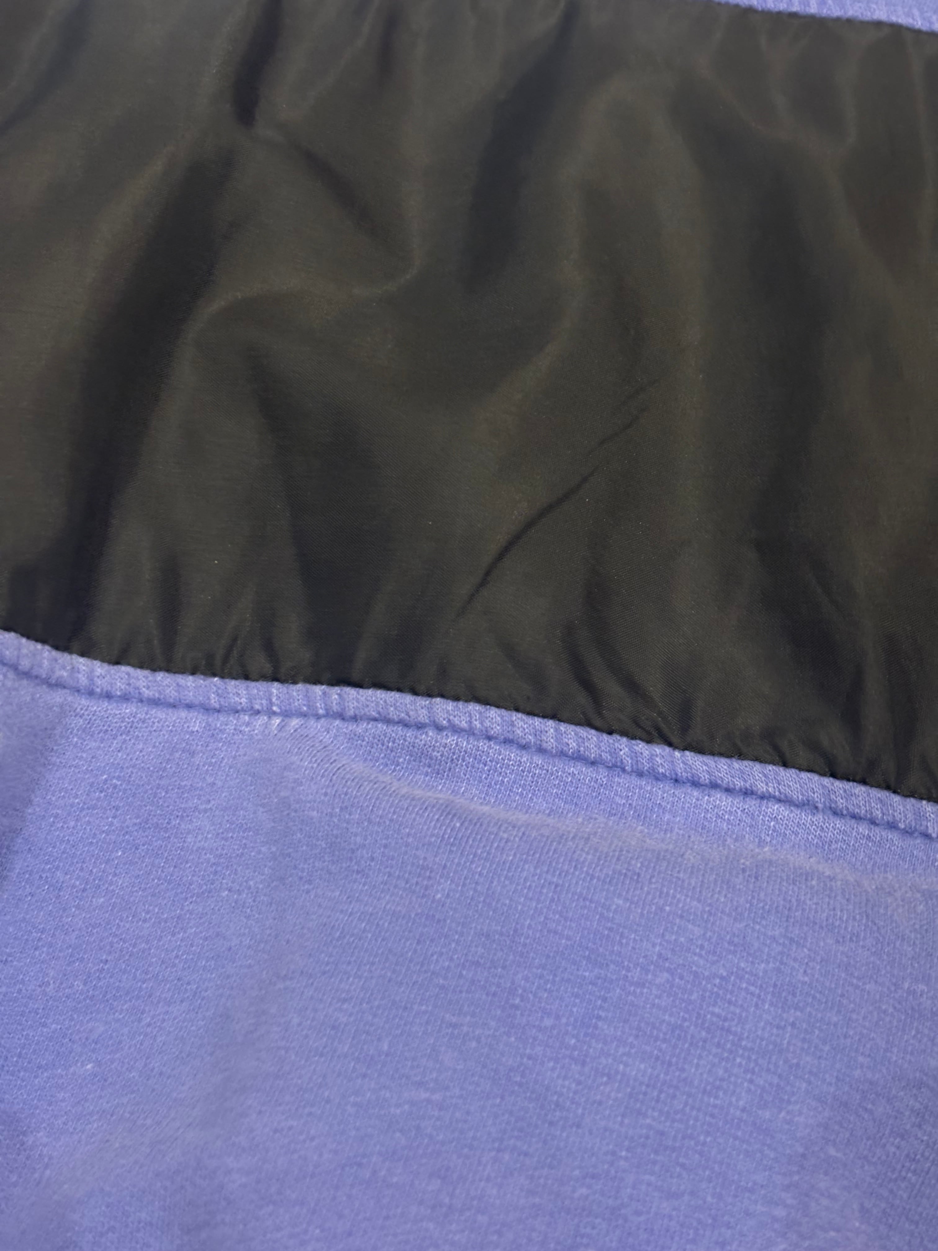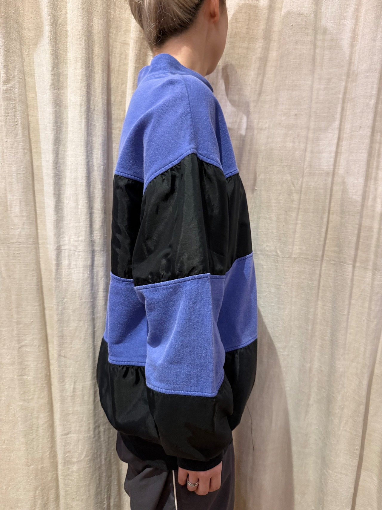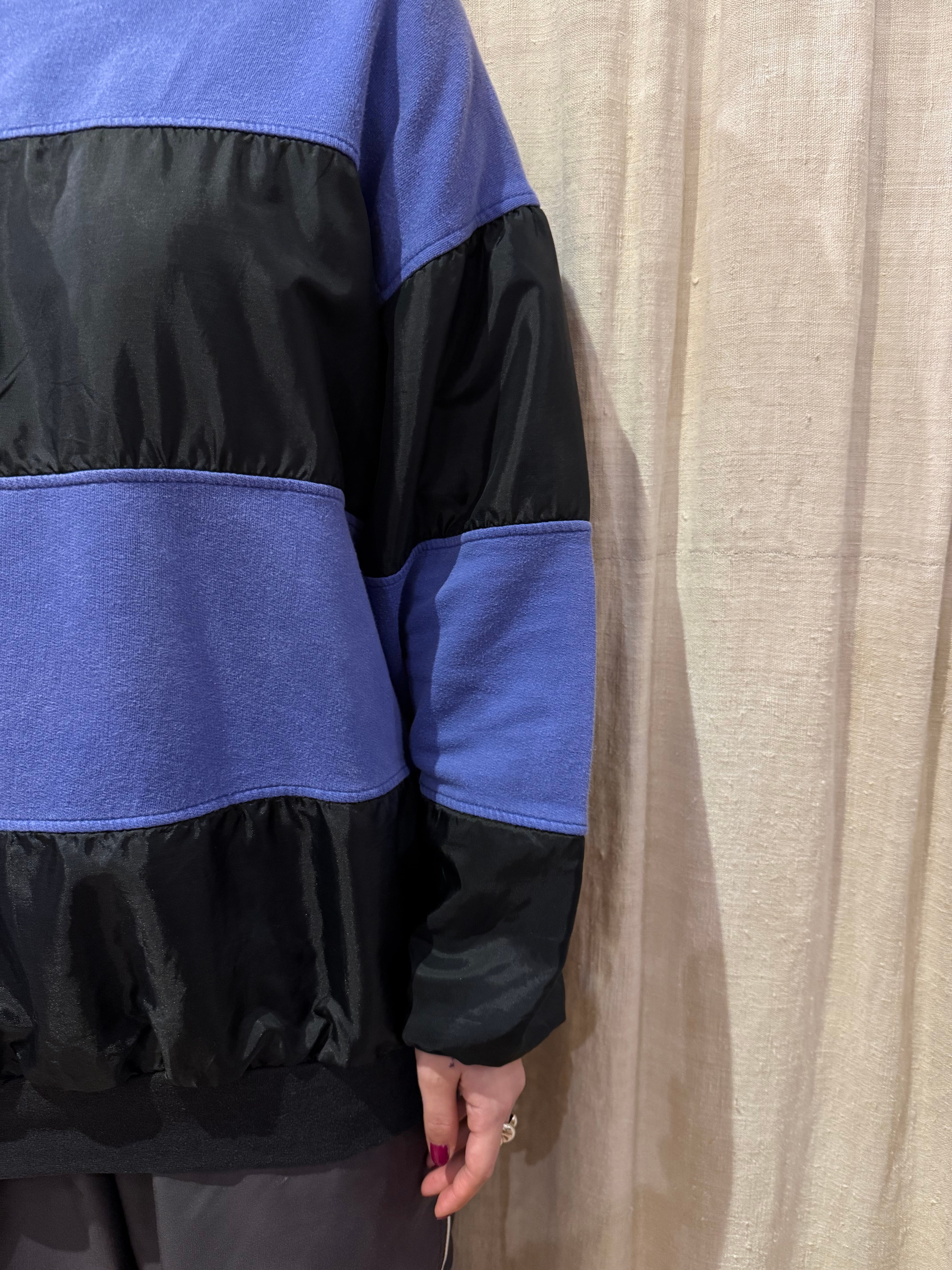 大胆なボーダーで、ナイロンとスウェットのような素材のトップス。ゆったりとした着心地で配色がとても可愛らしいです。着用画像のようにナイロン素材のパンツを合わせるスタイルも素敵です。インパクト抜群で、メンズの方にもオススメですです。