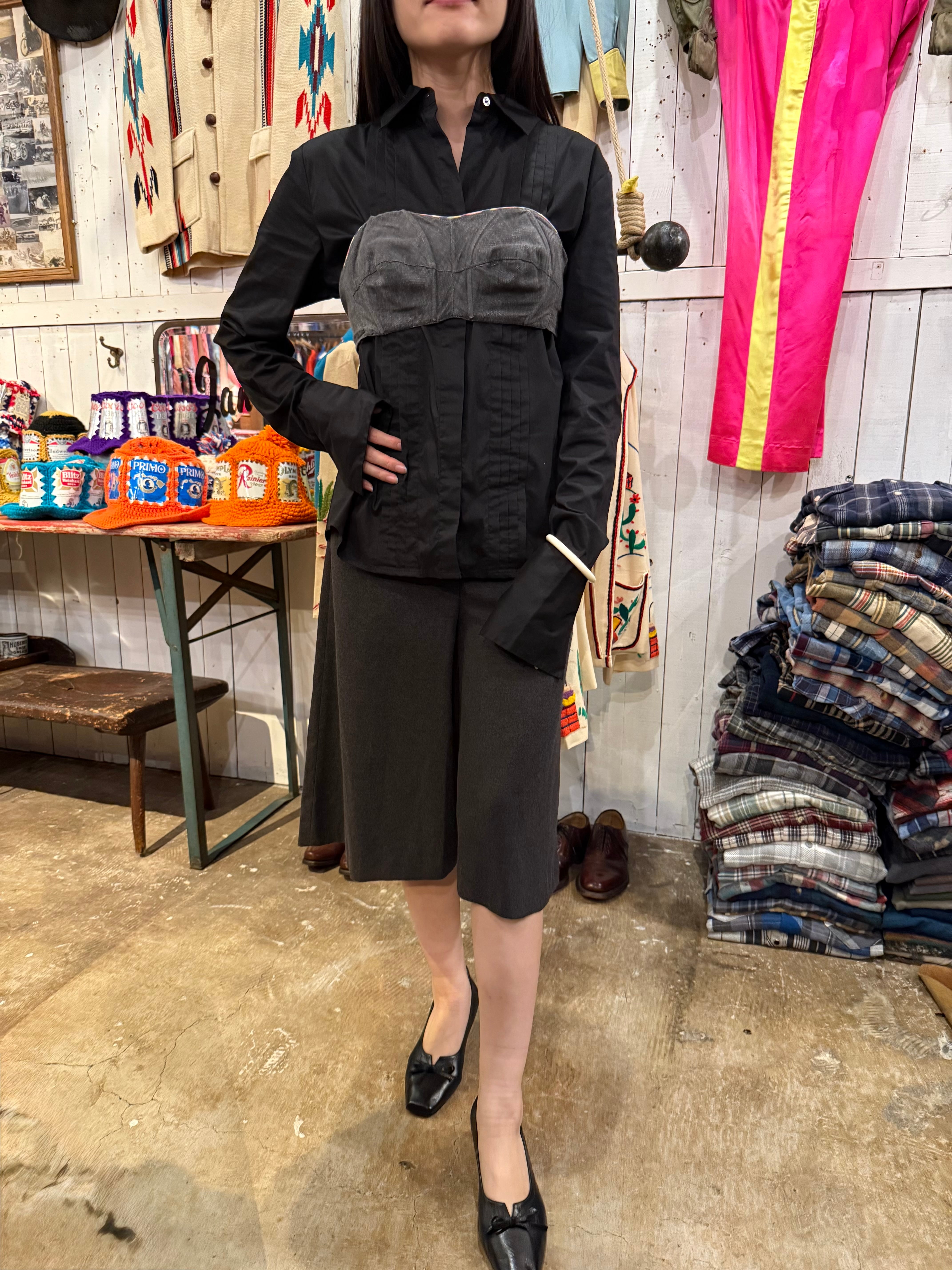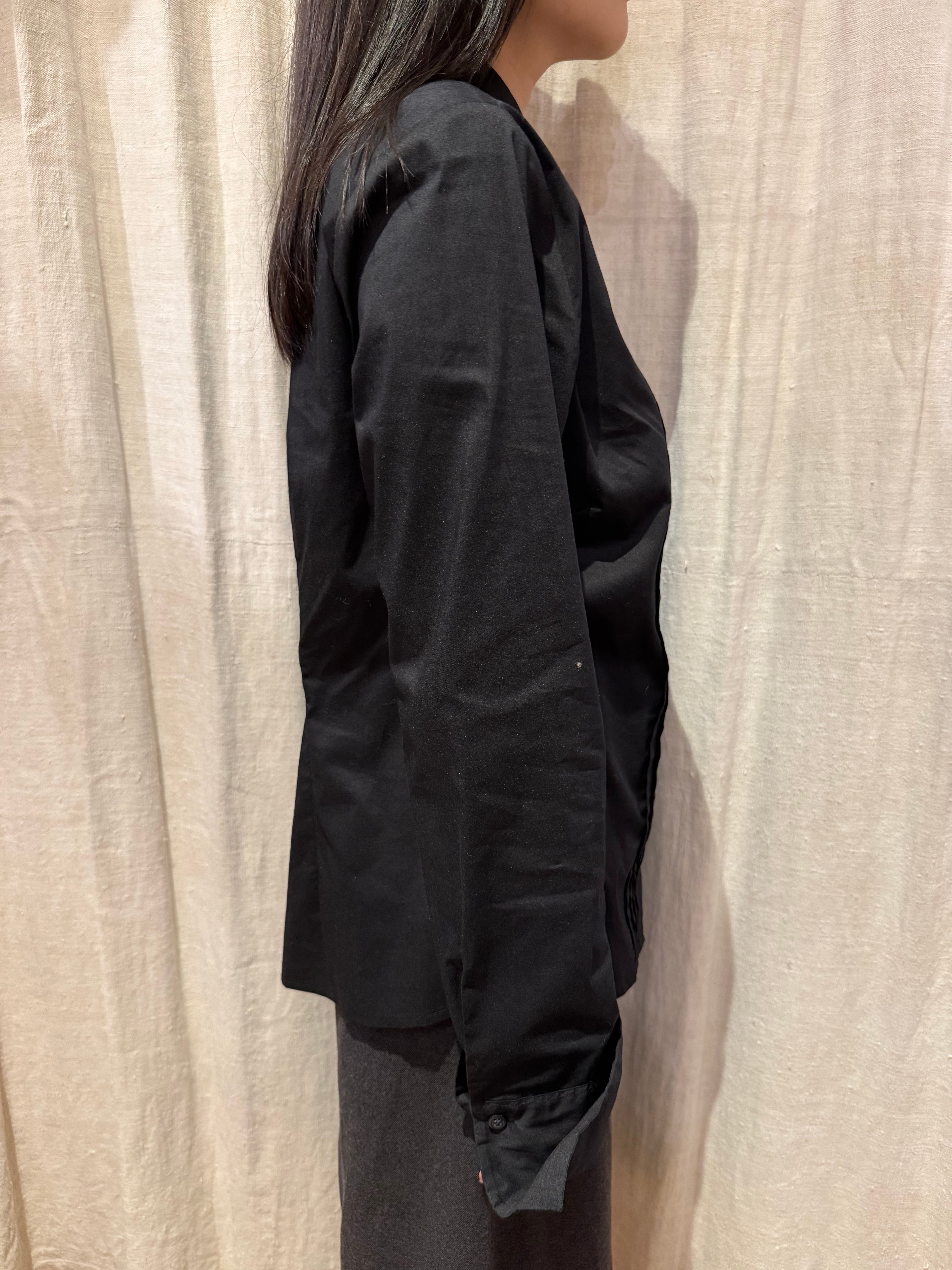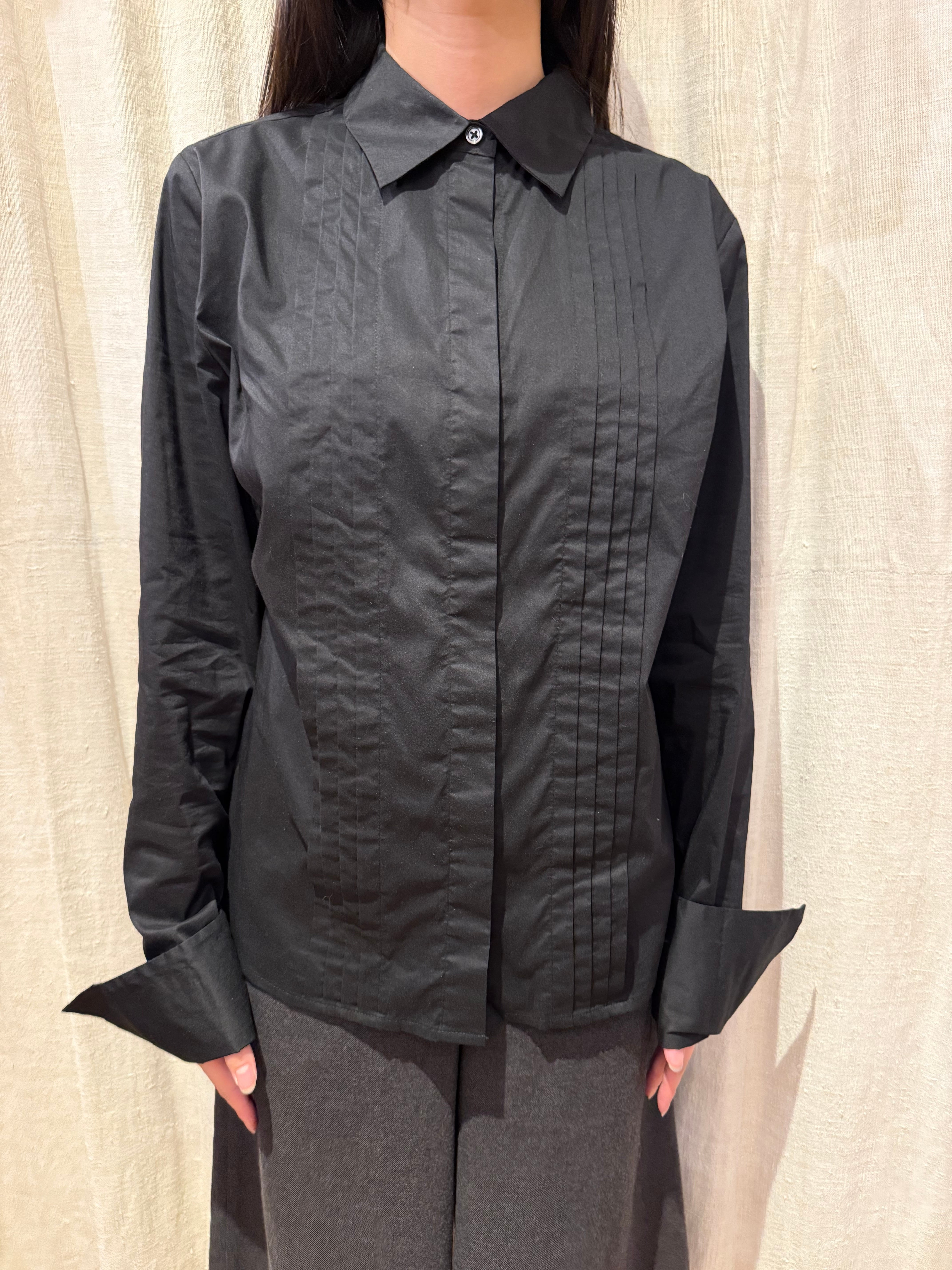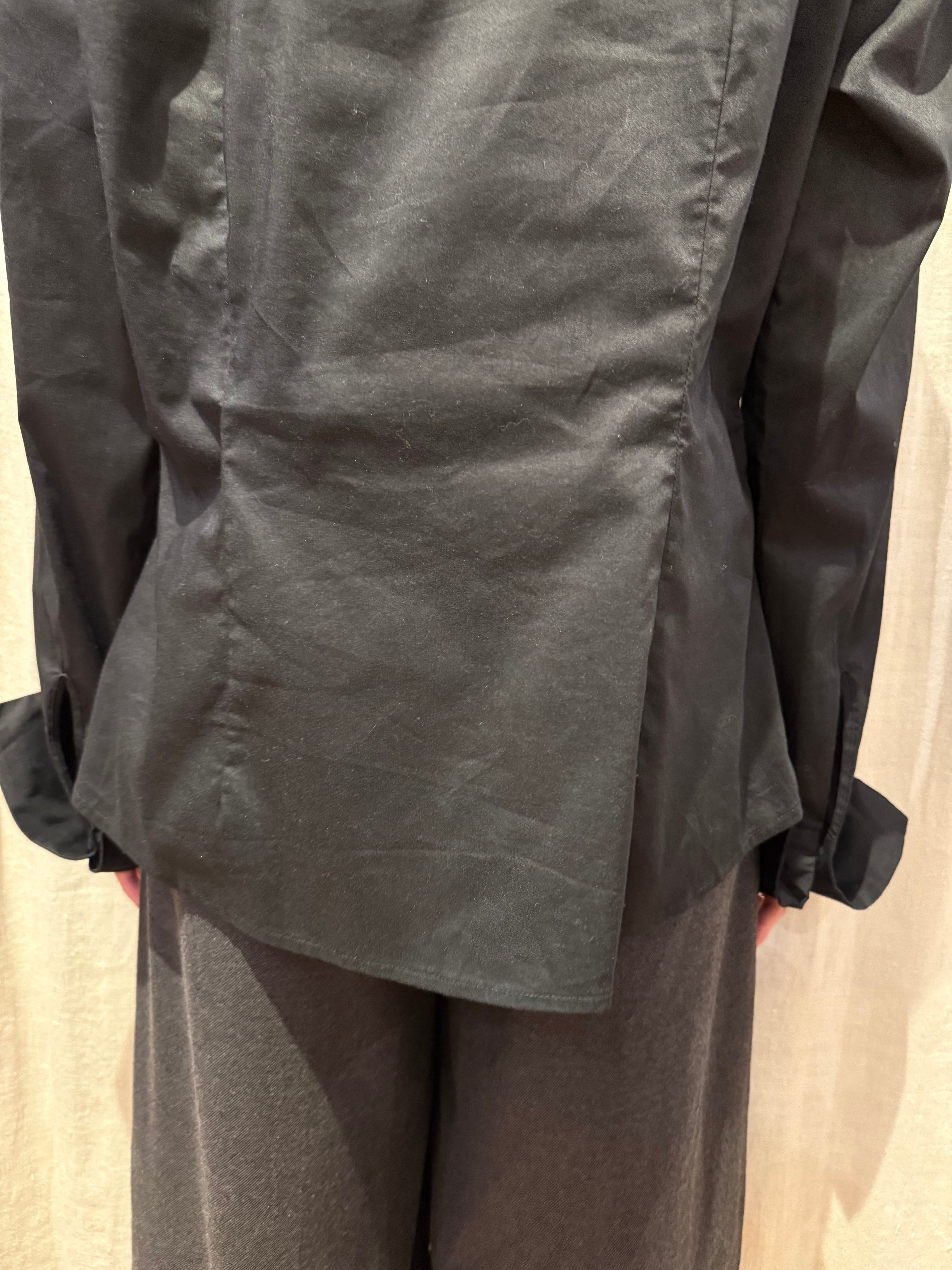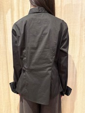 シックな雰囲気のシャツ。中央にプリーツが入っていてシンプルですが上品なデザイン。バナリパなのも良いですね◎サラッと柔らかい着心地なのでラフに羽織ることも可能です。