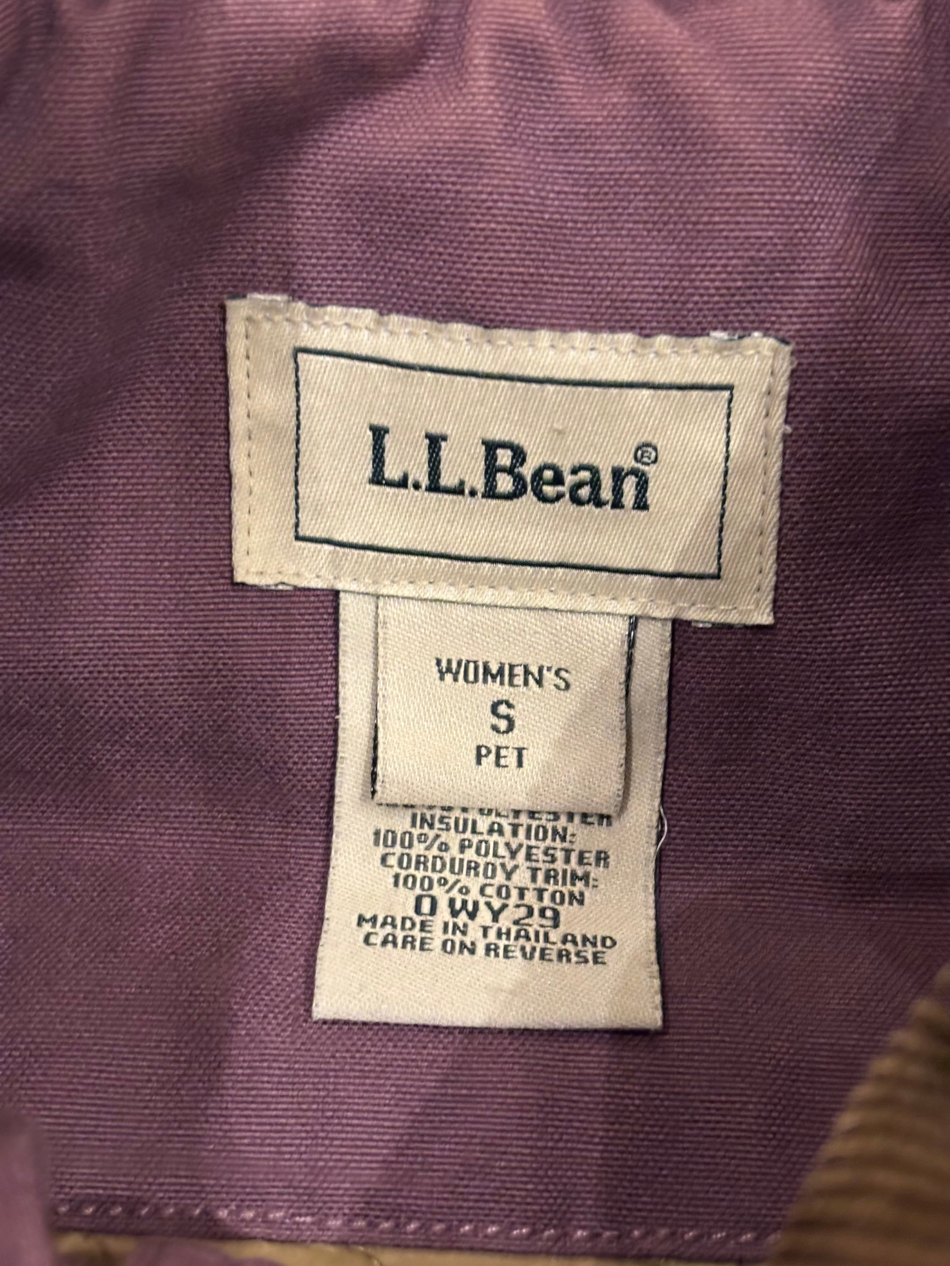 ダックのしっかりとした素材のダックジャケット。L.L.BEANの中でもベージュやグリーンが多い中で、紫は珍しいカラーだと思います。リブの部分はゴーズになっているのでとても可愛らしいです。着丈が長めなので写真のようにカラータイツなどと合わせても良いですね◎