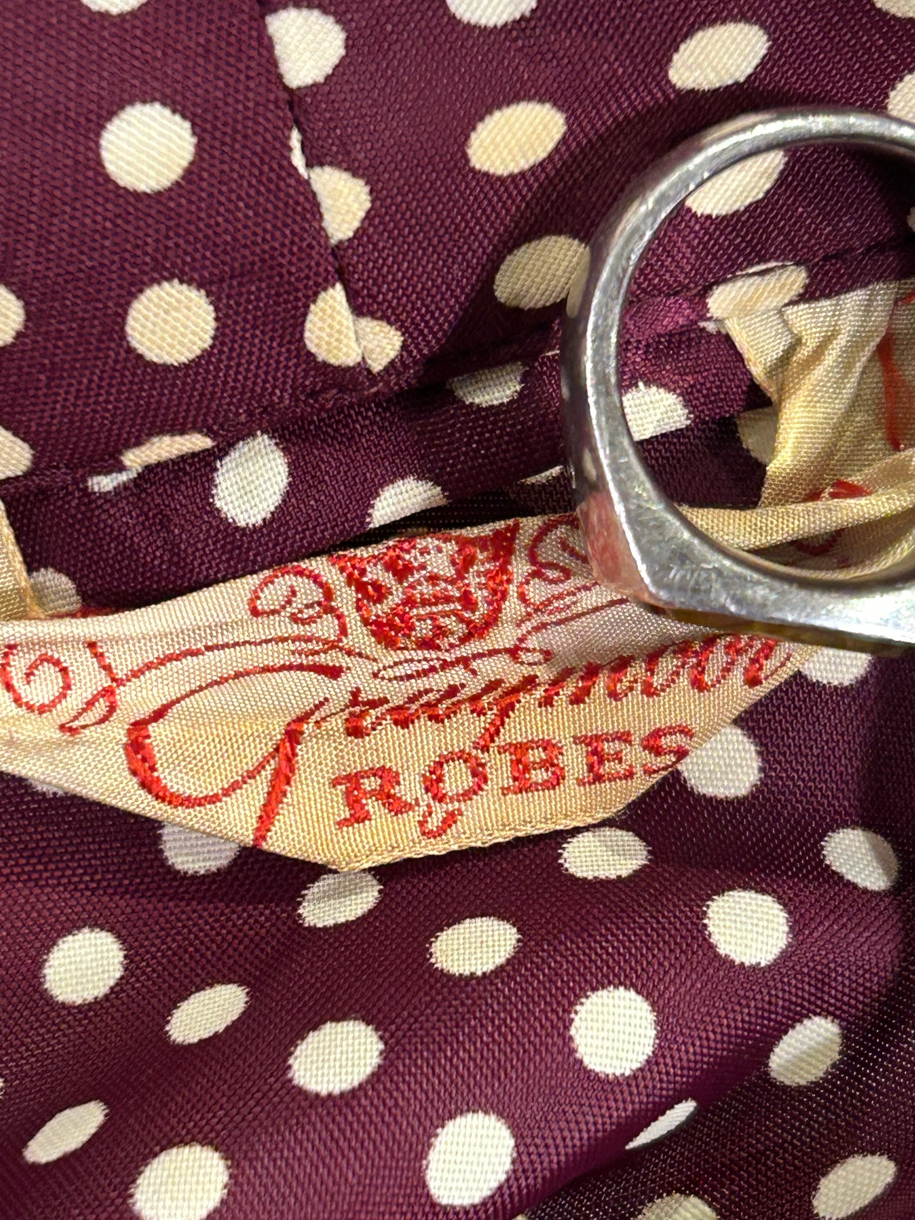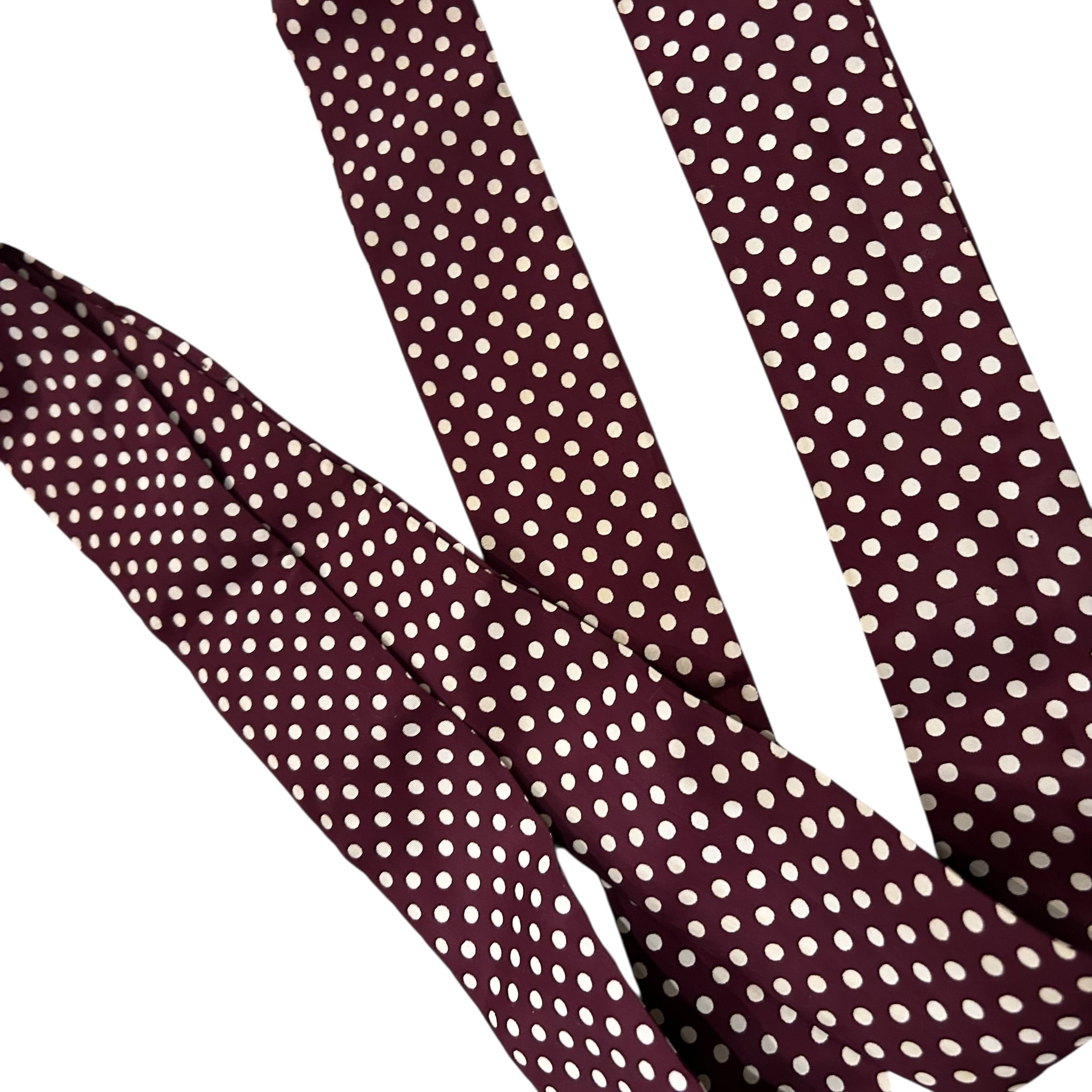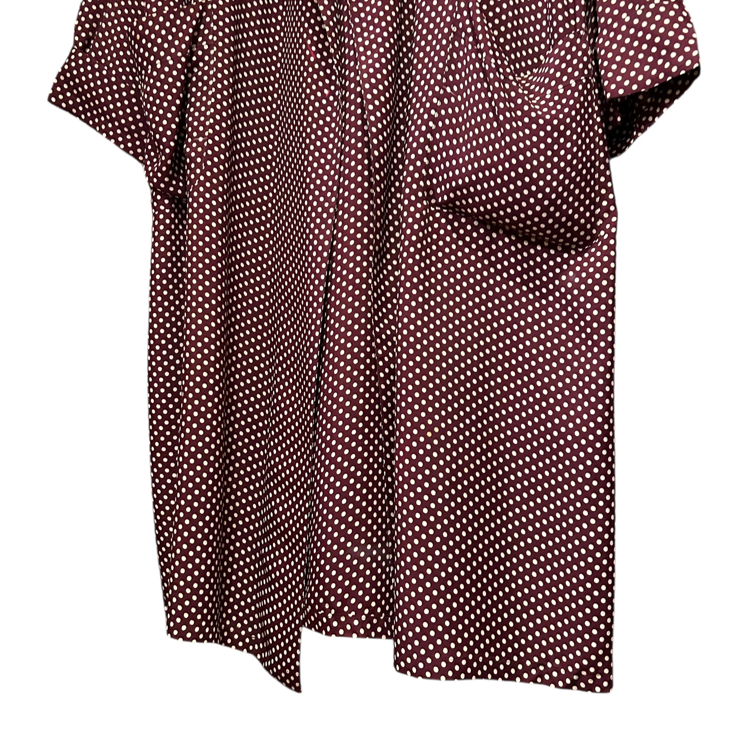 バーガンディーベースに、白の配色のドット柄になります。