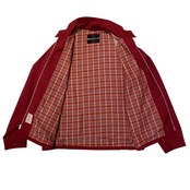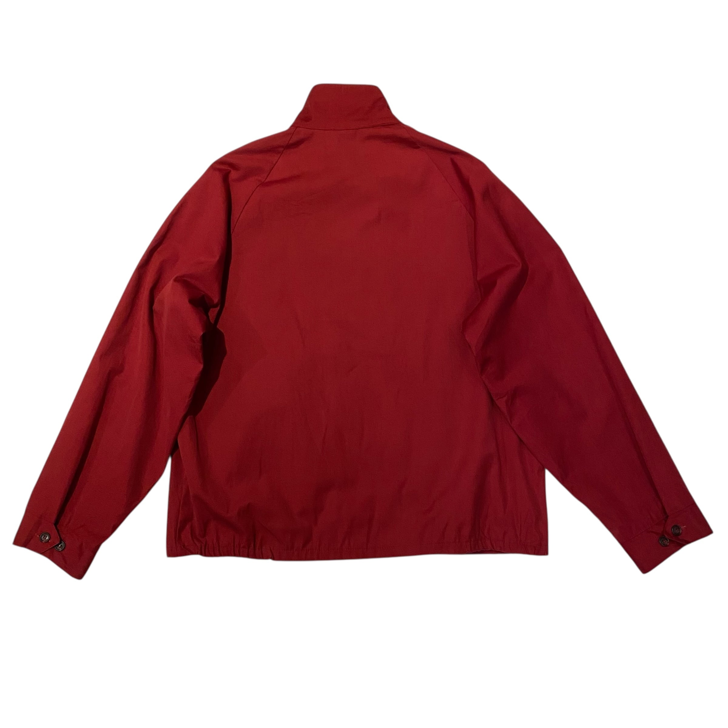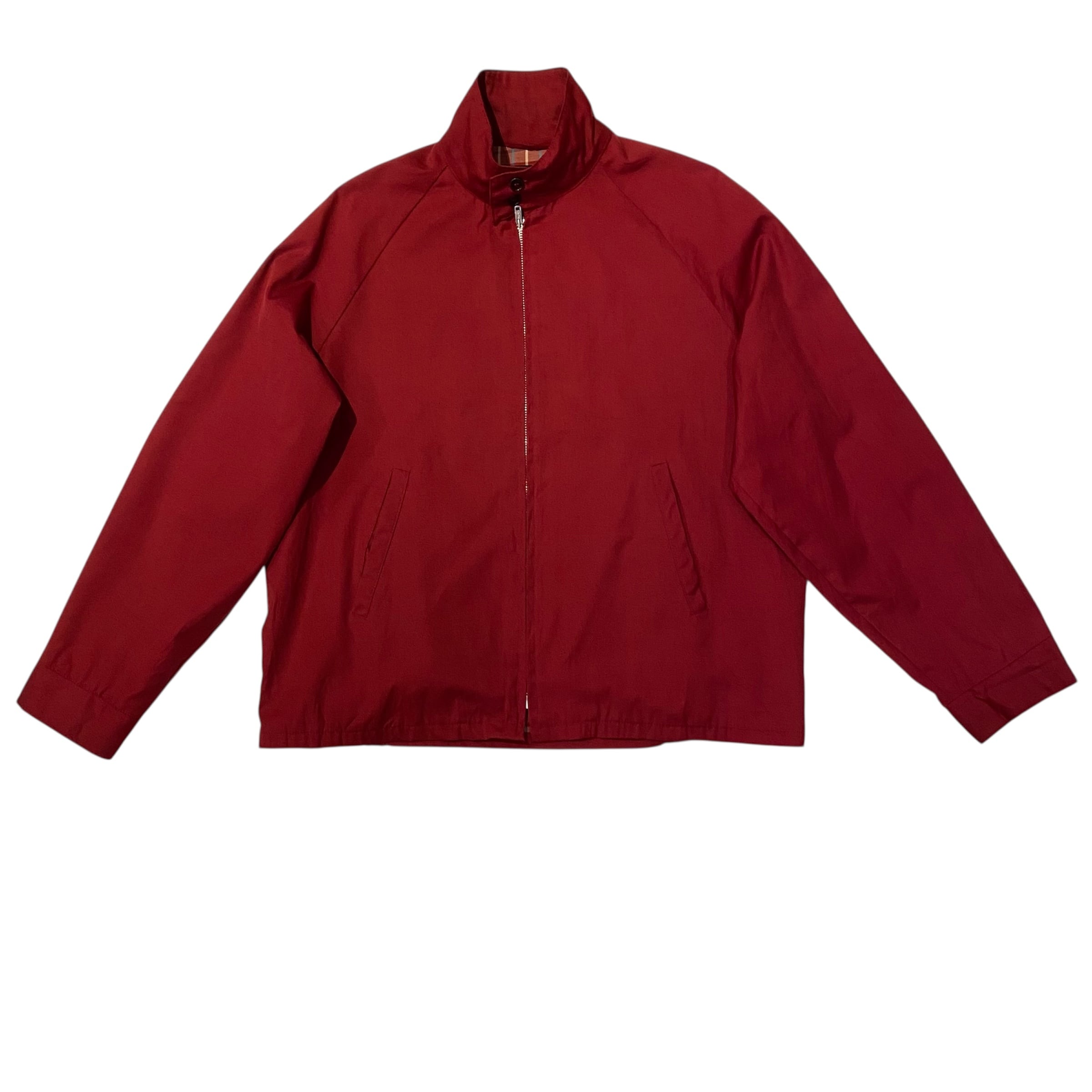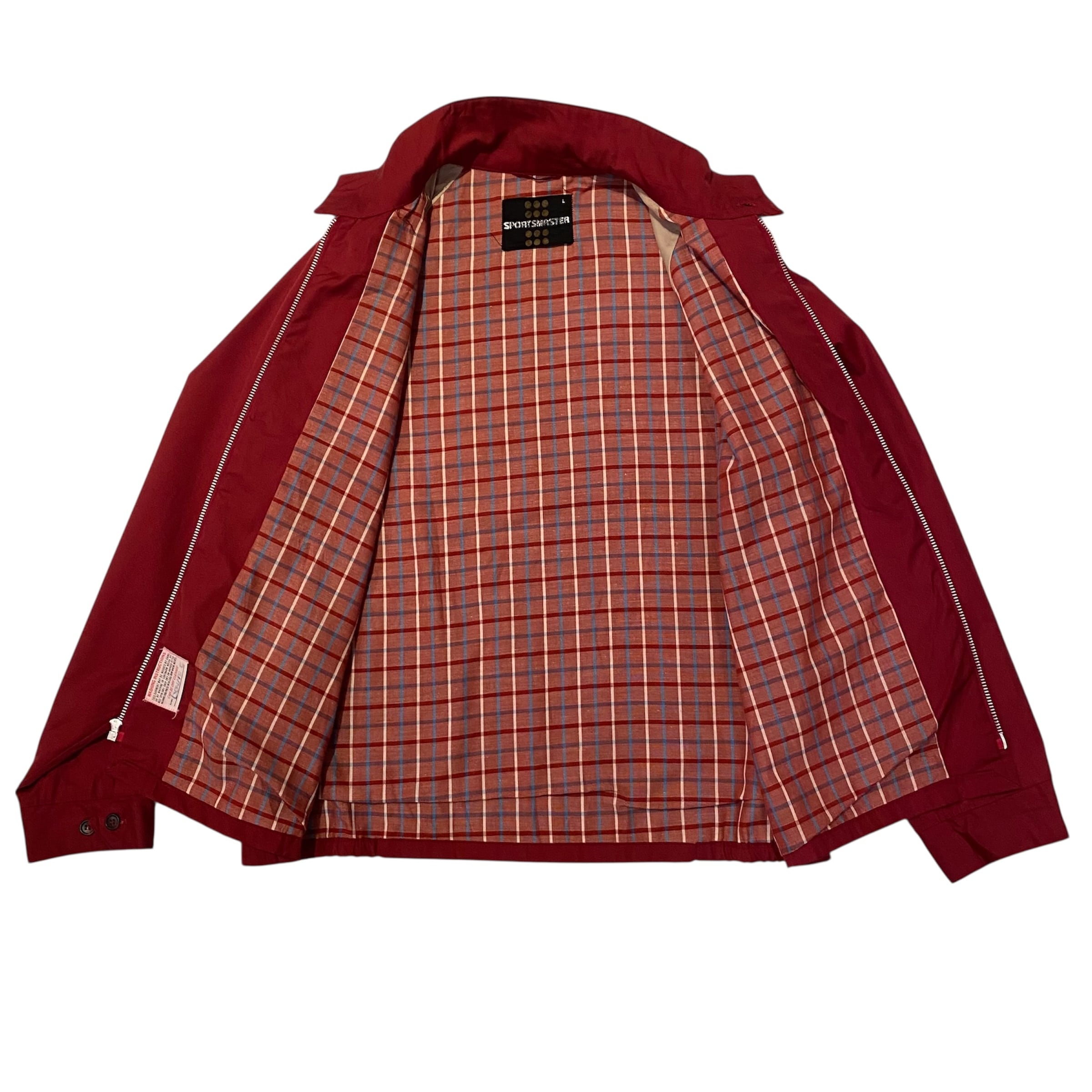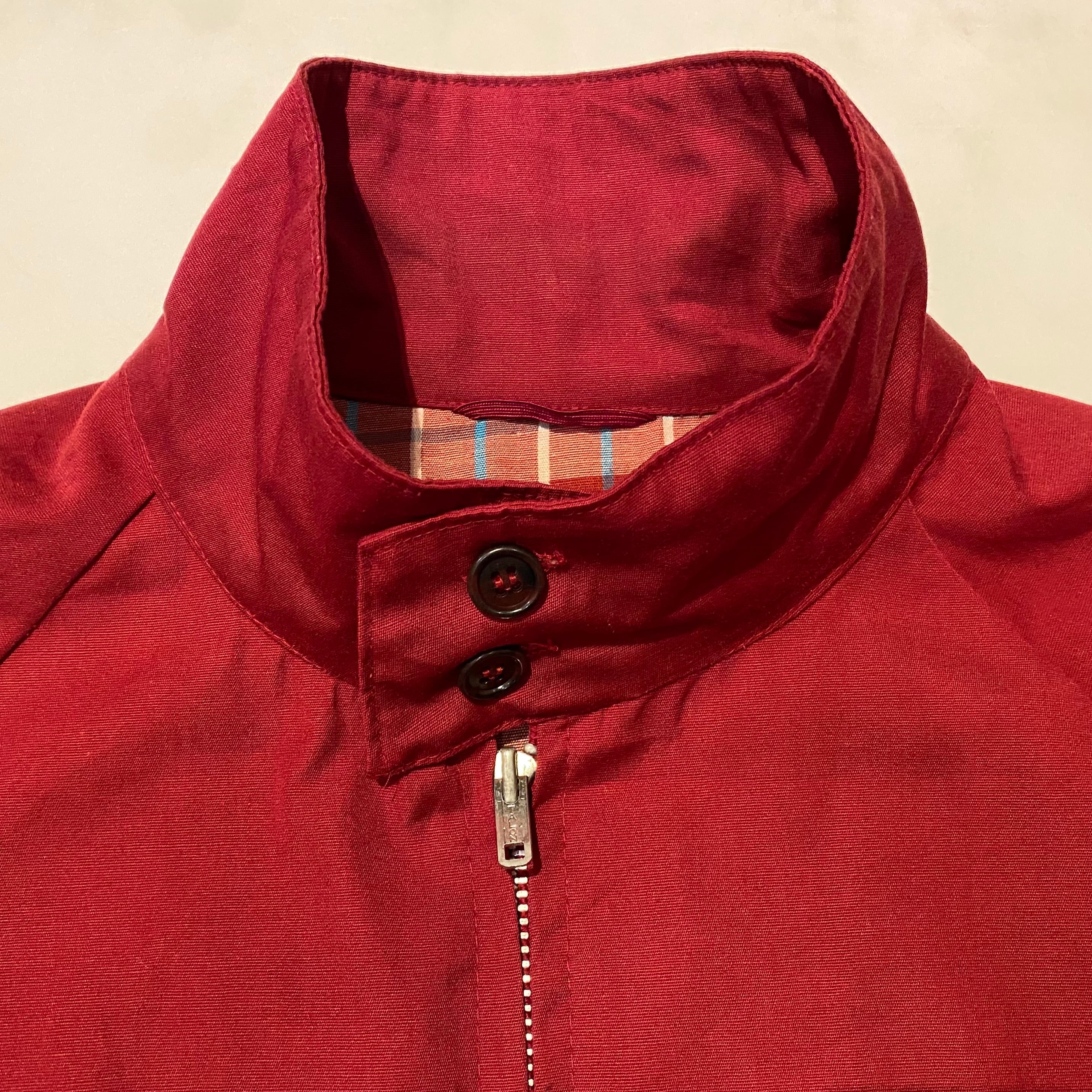1970年代のスタンドカラーのスウィングトップになります。TALONのアルミジッパー仕様です。バーガンディの色味も派手すぎず落ち着いたカラーで良いと思います。裏地にはチェック柄が使われています。ラグランスリーブ仕様で身幅はしっかりあってショート丈のバランスは合わせやすいですしやっぱり使えると思います。インナーにマルチボーダーTシャツ、下はチェッカーフラッグのラインスラックスにバンズ、を合わせ横ノリを意識したカジュアルスタイルに落とし込みました。