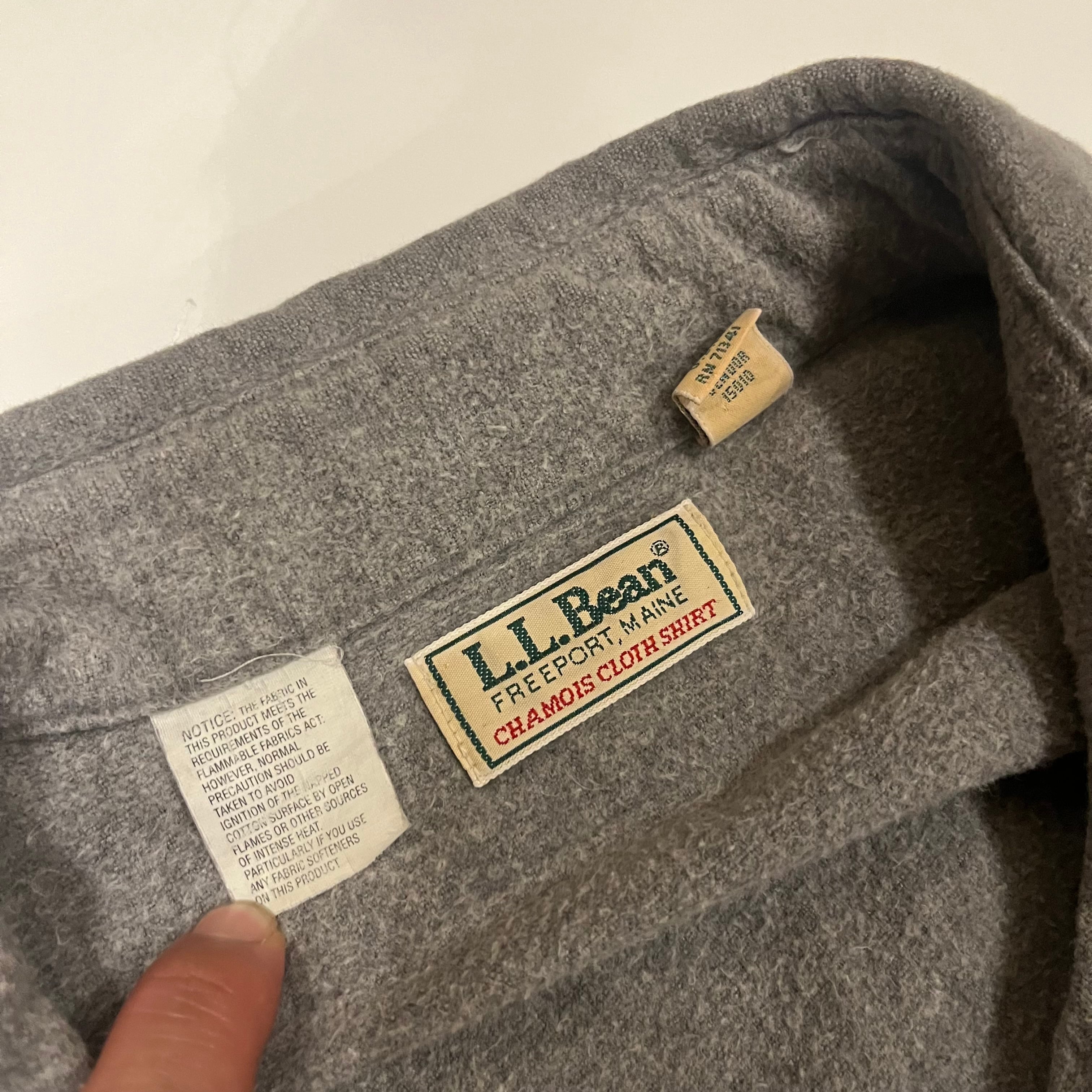エルエルビーンから、シャモアクロスシャツになります。80年代頃のアイテムです。ふわっとした生地感にシンプルなグレーで合わせやすくファッションに落とし込みやすいアイテムだと思います。