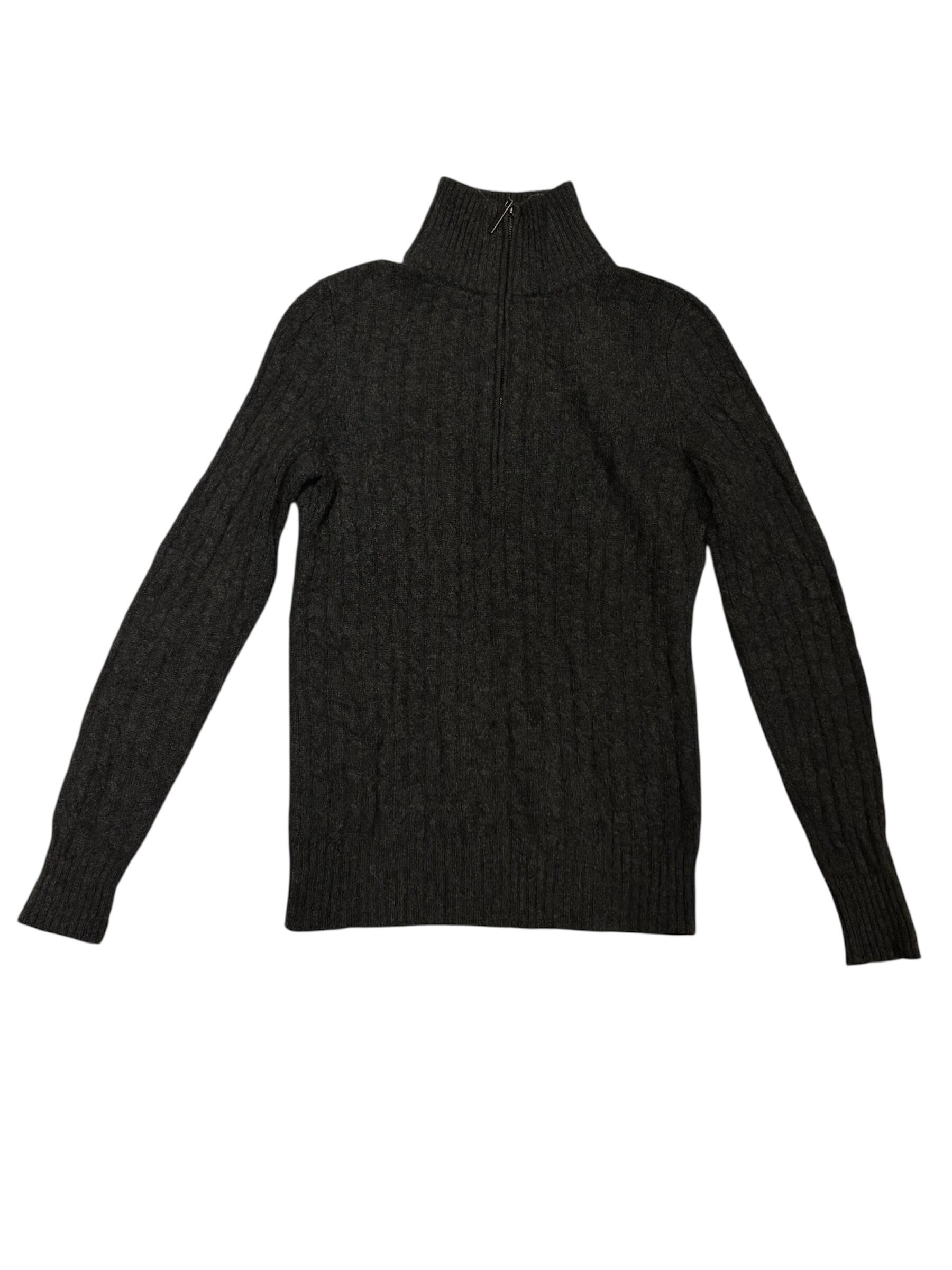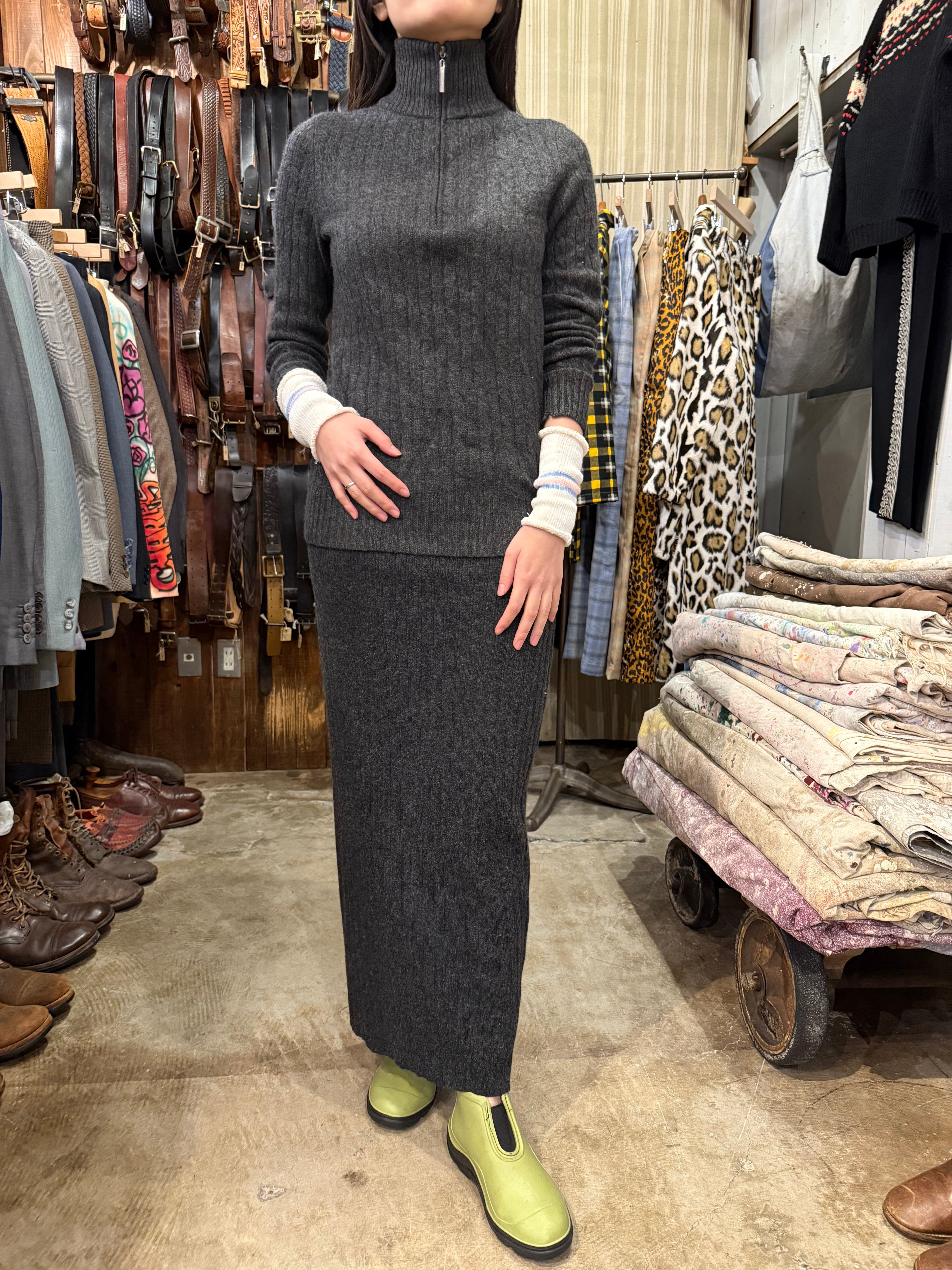 ハーフジップのニットトップスです。薄めで柔らかな生地感でチクチク感も無い肌触りです。程良く体にフィットするサイズ感で、女性らしく着用できます。一枚でもインナーとしてでも活躍する一着です。