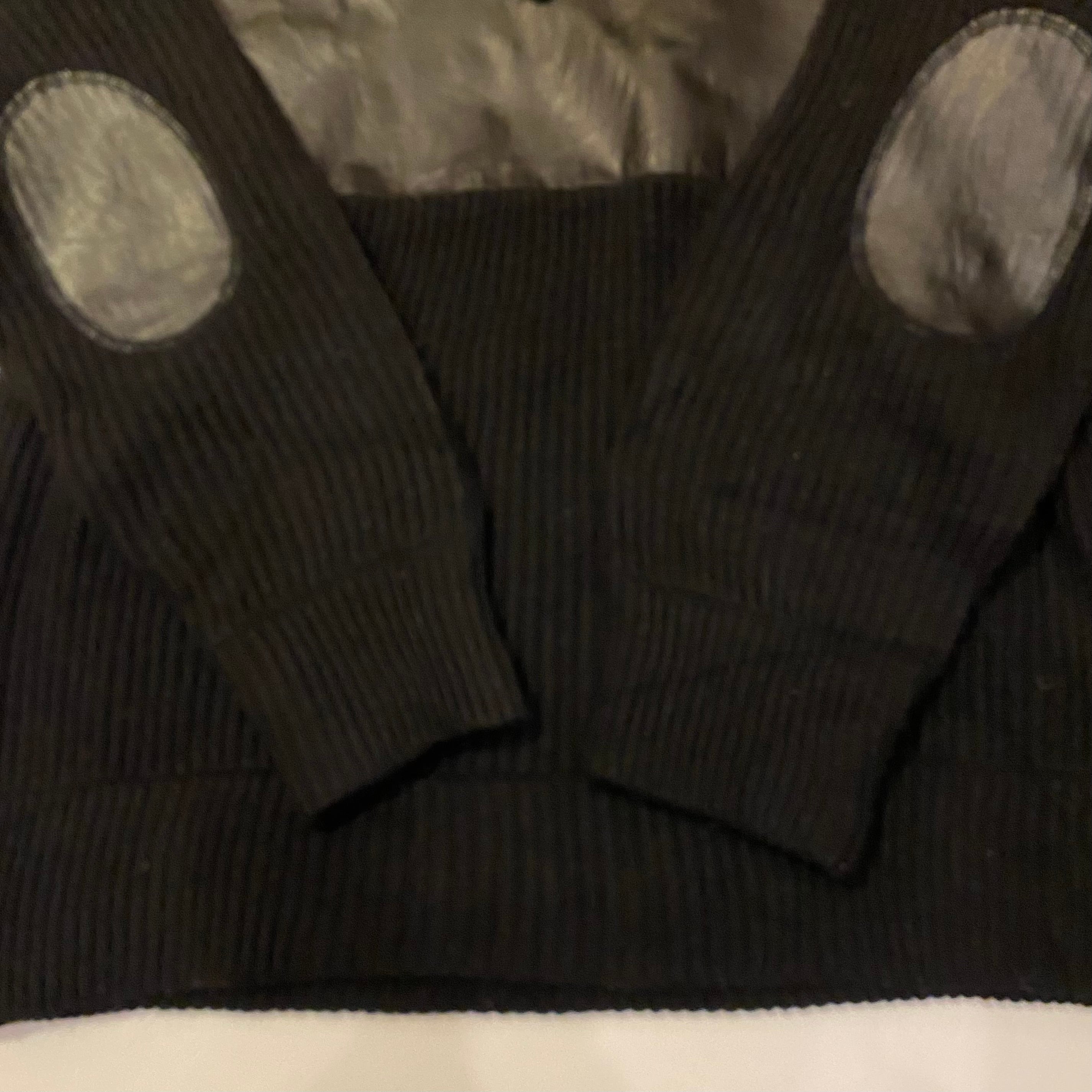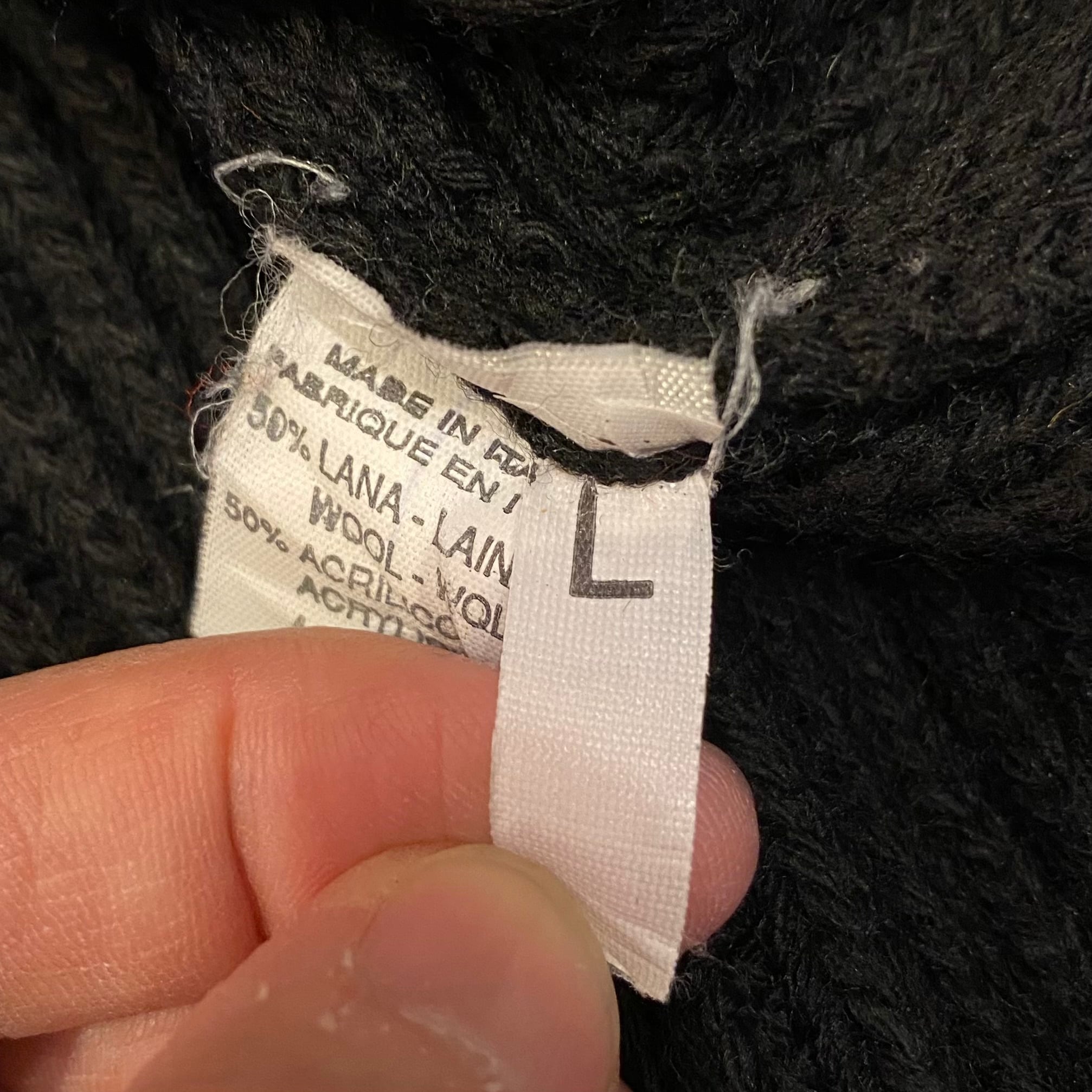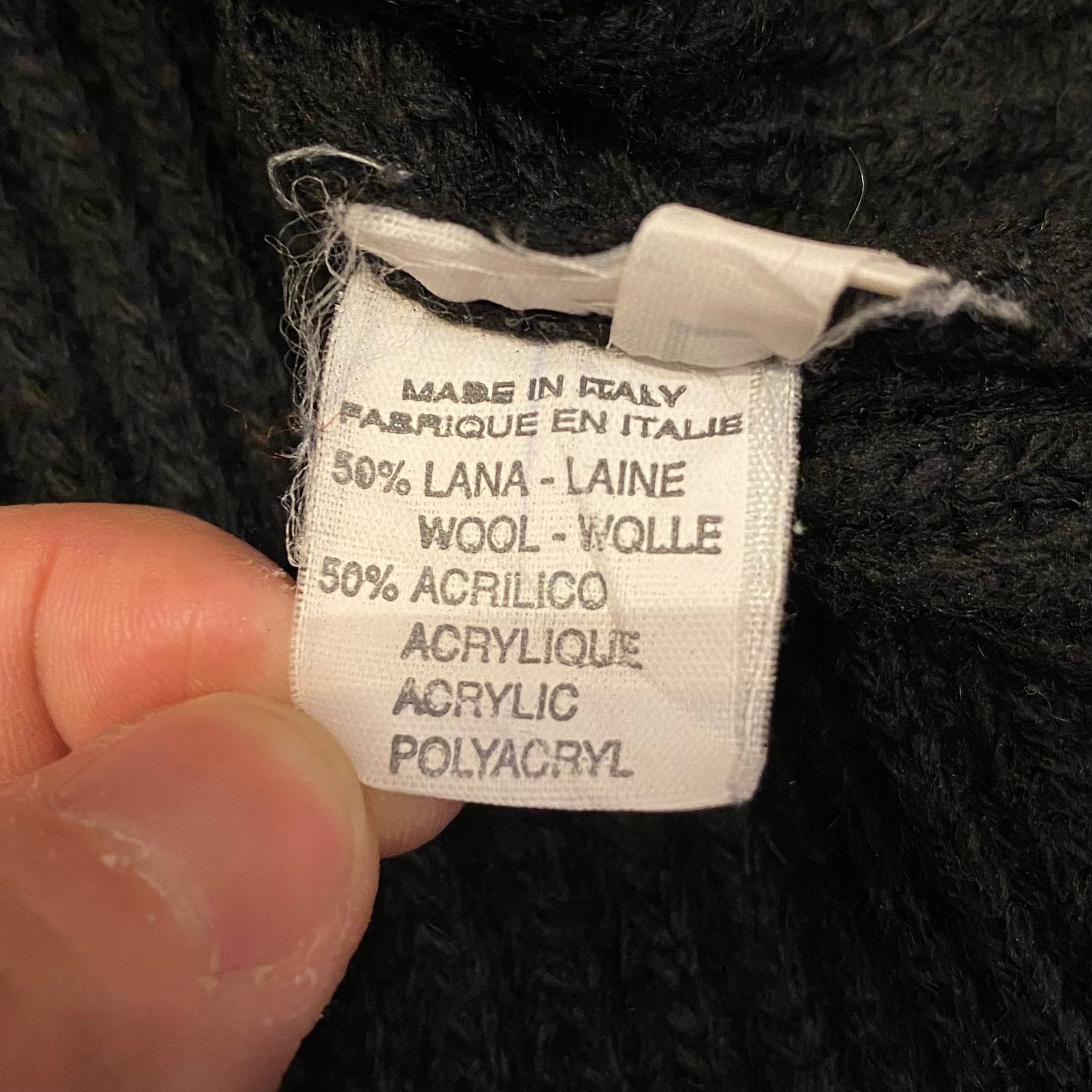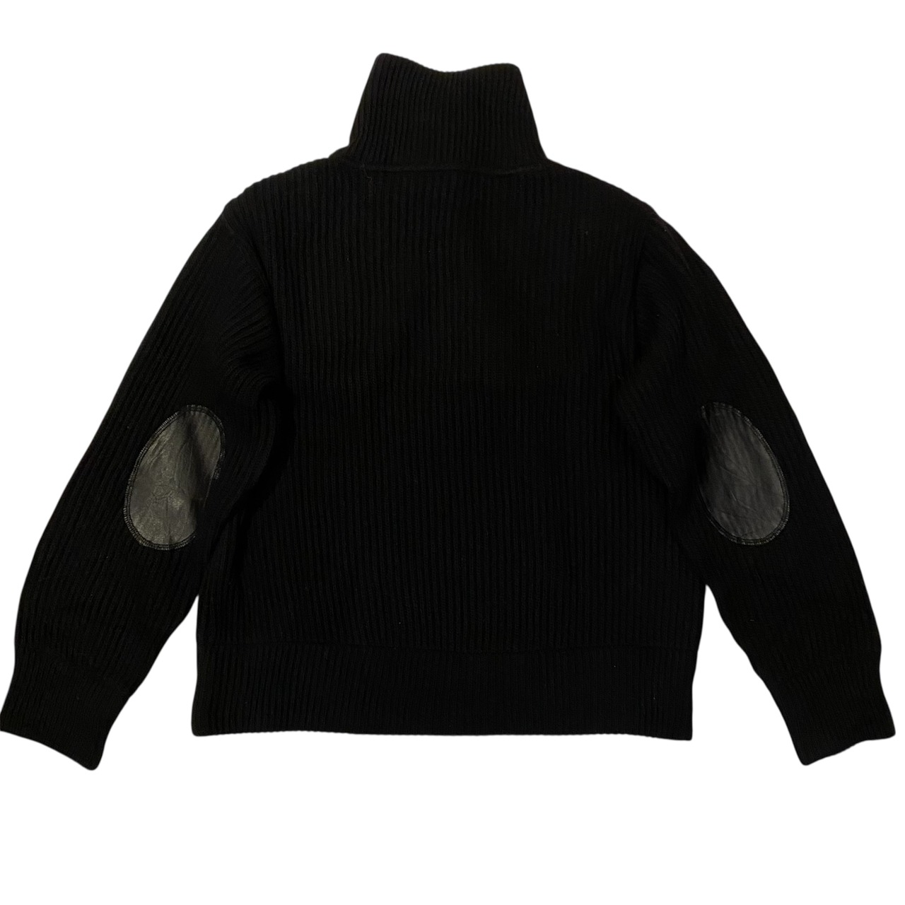 80年代のイタリアのデザインニットになります。カラーはブラックで、素材はウール×アクリルの柔らかいリブ編みニットです。首もとの斜めジッパーで開閉できるプルオーバーのデザインで、フロントとエルボーにはレザーが使われています。デザイン性、また着た時のシルエットも良く一枚でさまになるニットでございます。