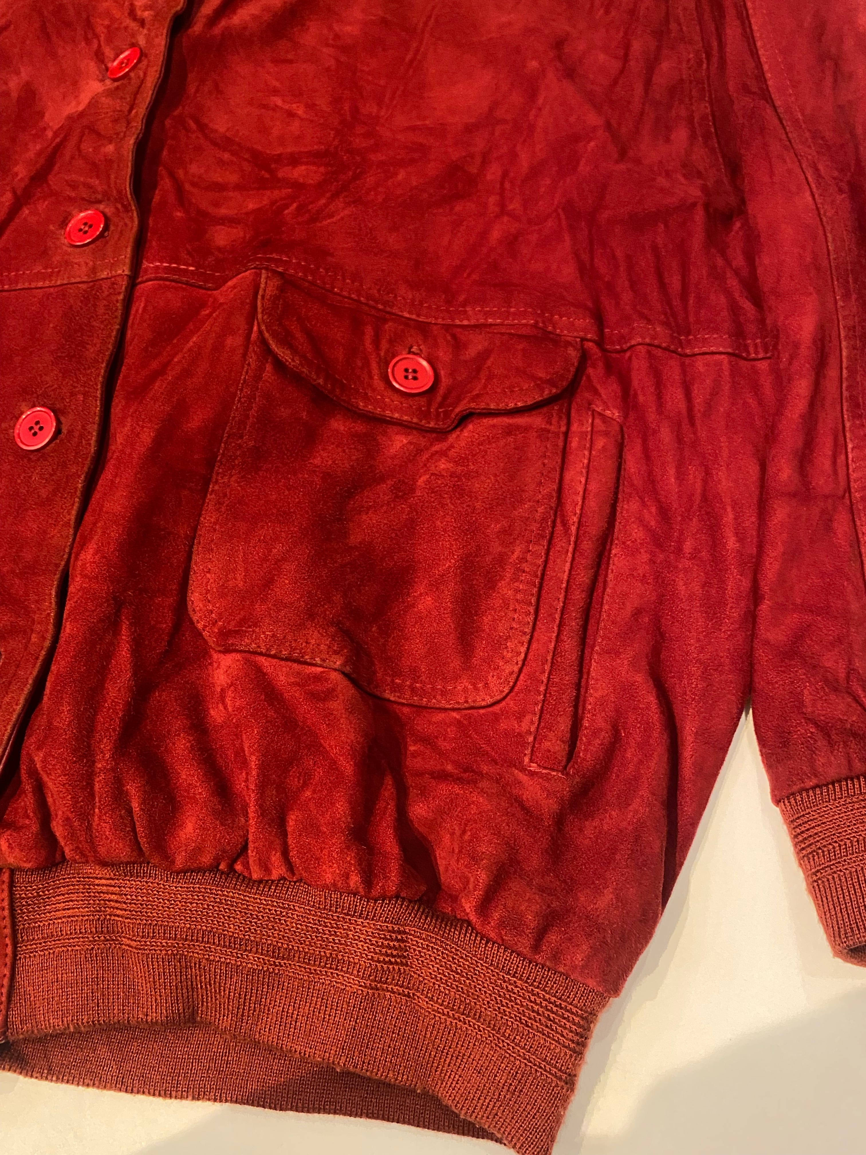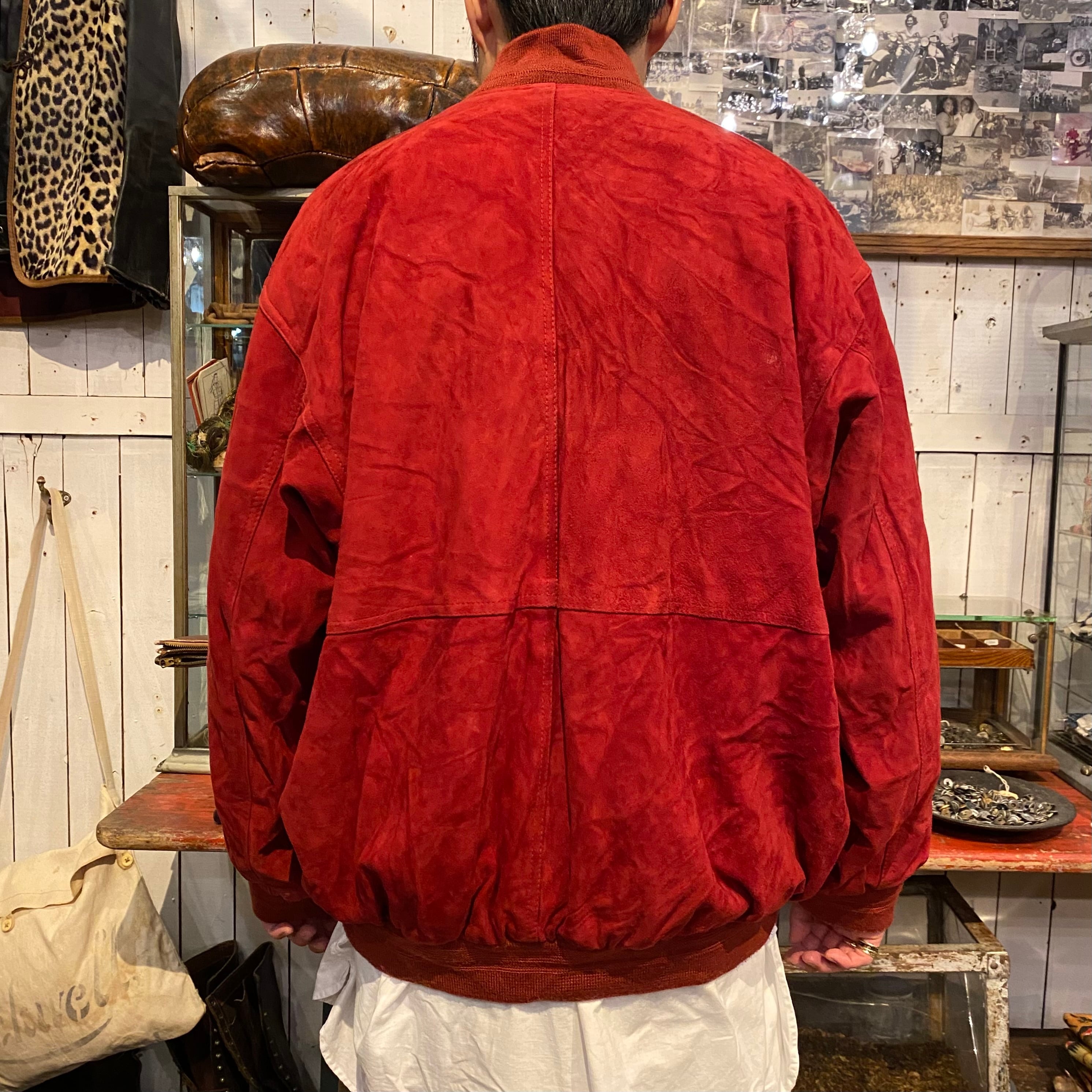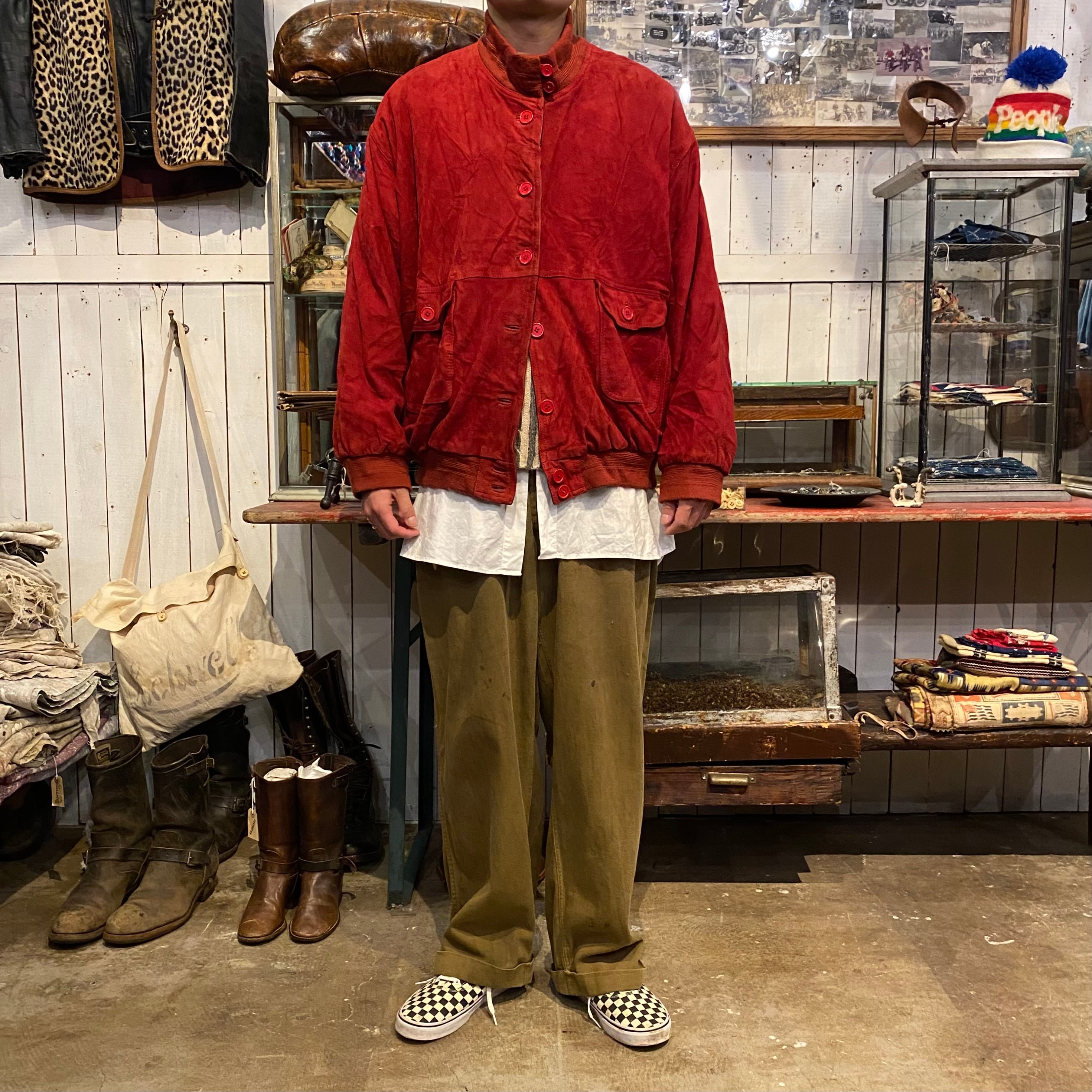 柔らかいヌバックレザーです。柔らかいですので、肩は大きいですが、綺麗に落ちるのでシルエットは綺麗です。