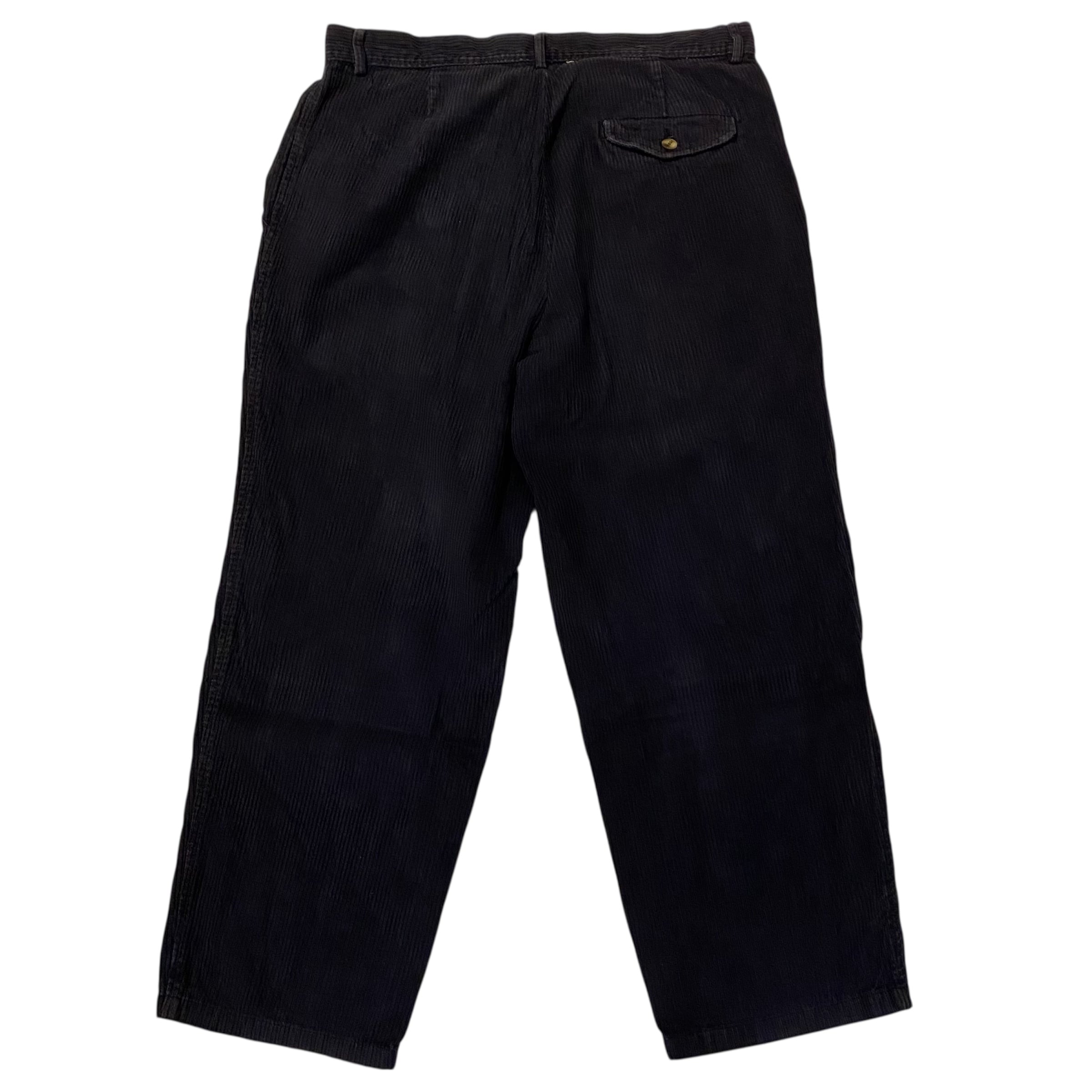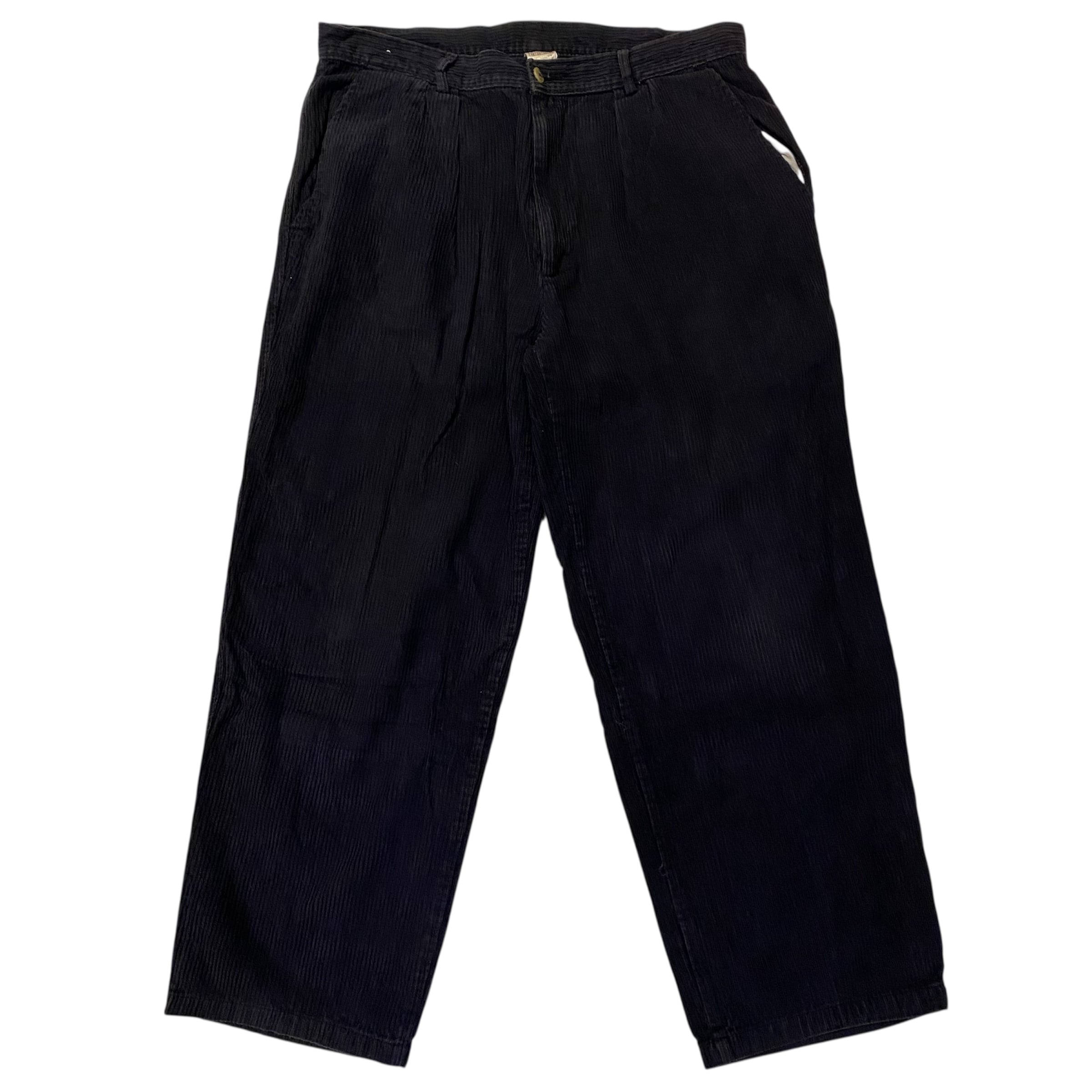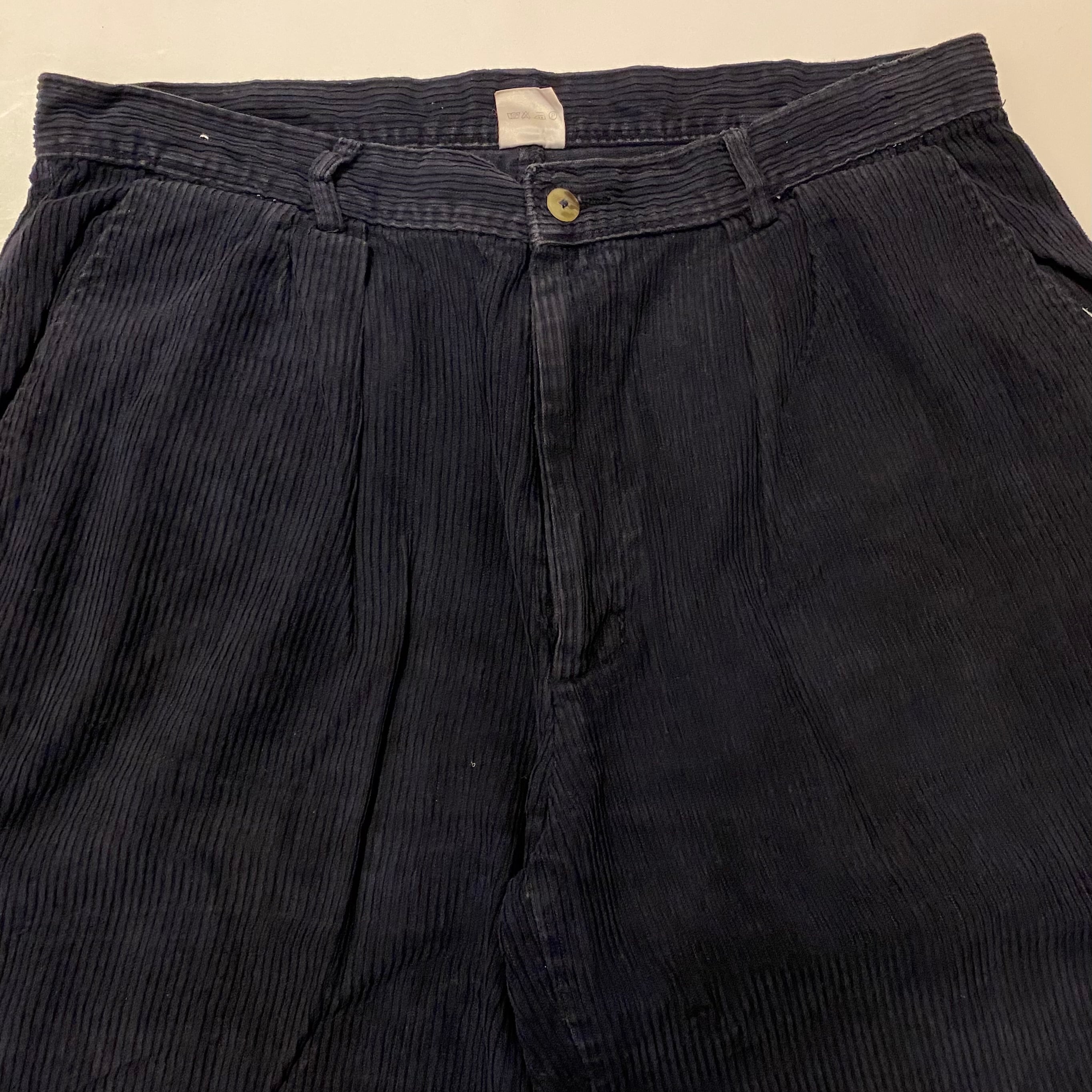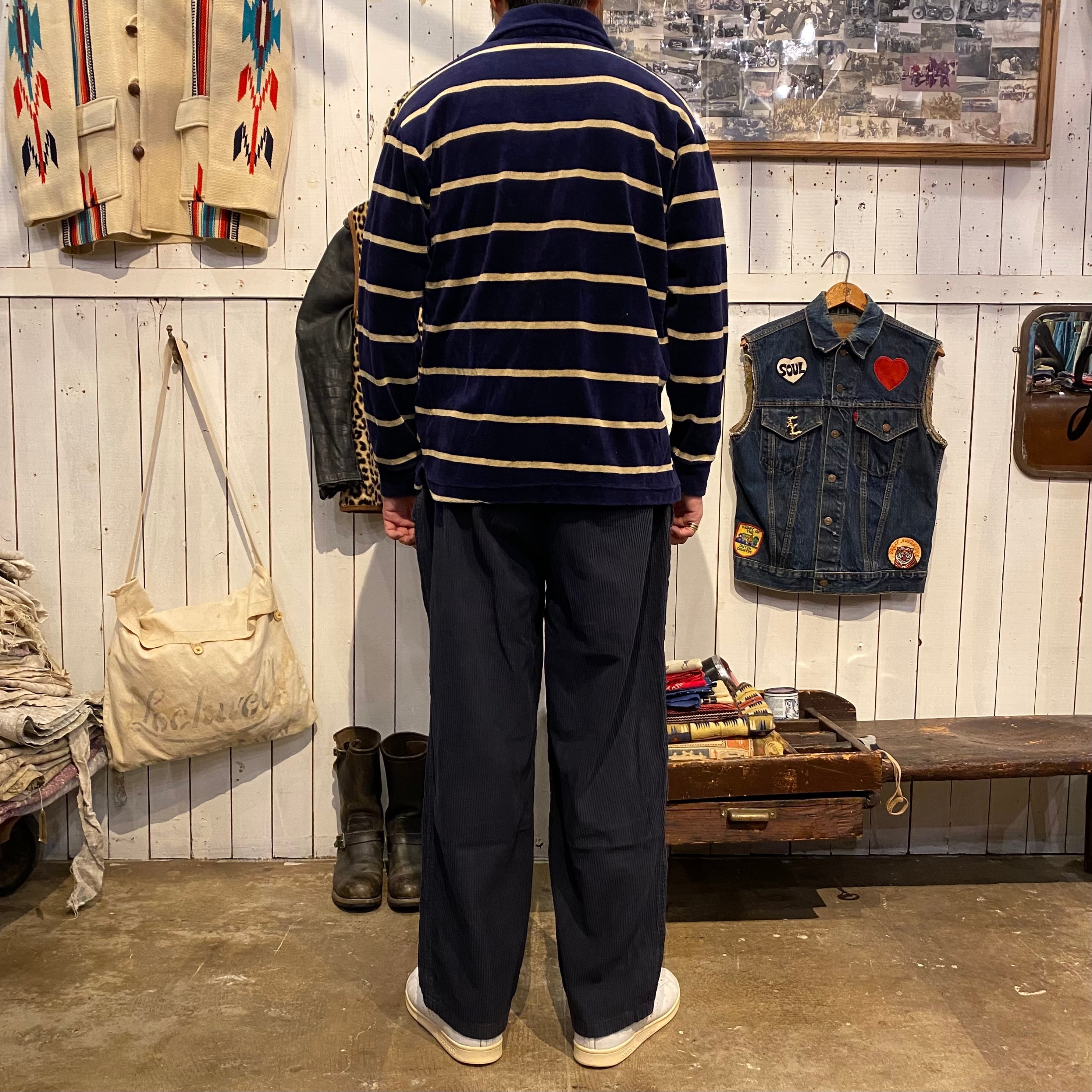 ヨーロッパのうねの太めなコーデュロイパンツになります。2タックで太めのストレート〜少しテーパードのシルエットでショートレングスです。ワークパンツのようなシルエットが良く、合わせやすいですし使えると思います。白のスニーカーでコーディネートしましたがブーツや革靴にも相性ばっちりです。