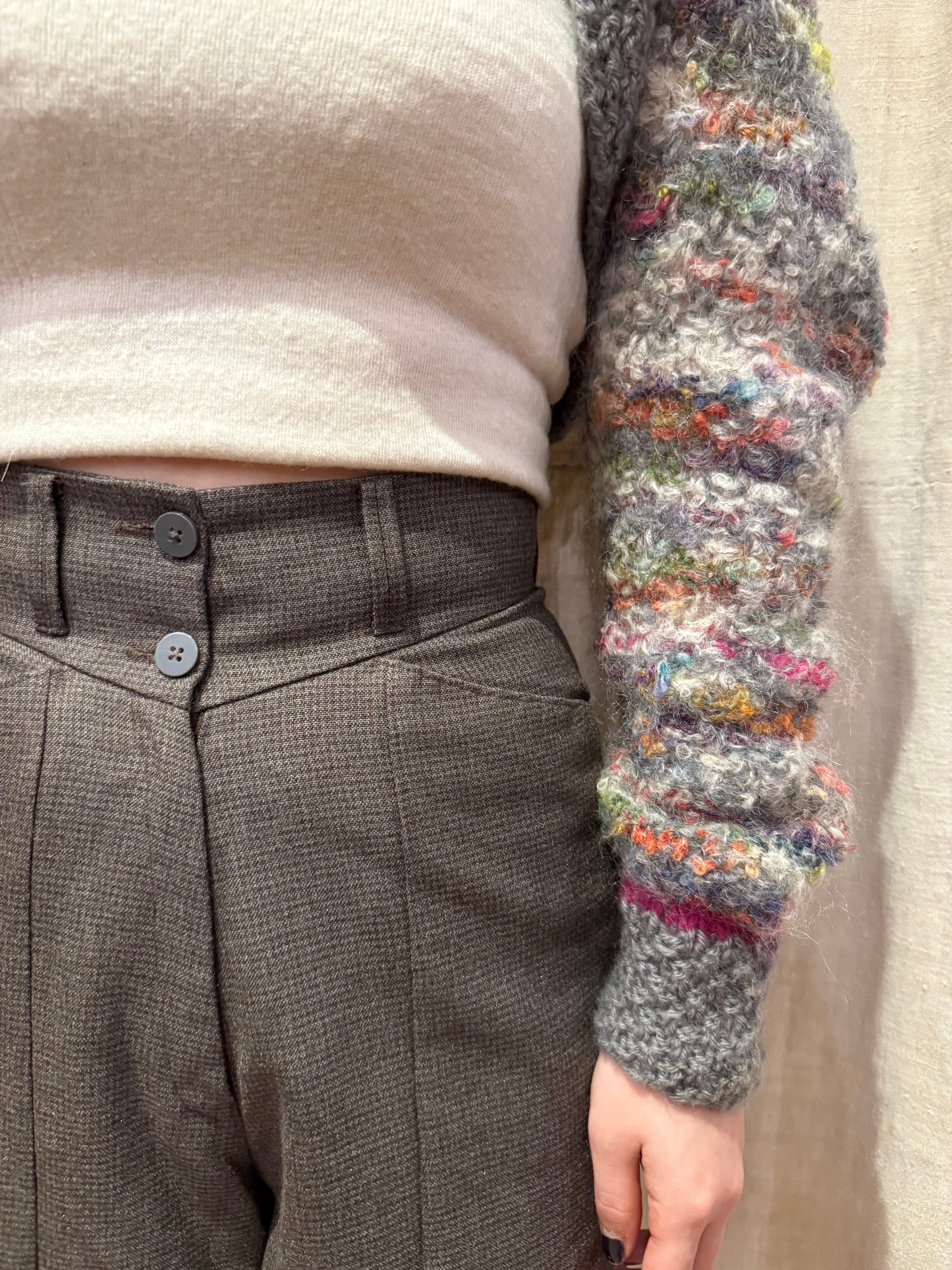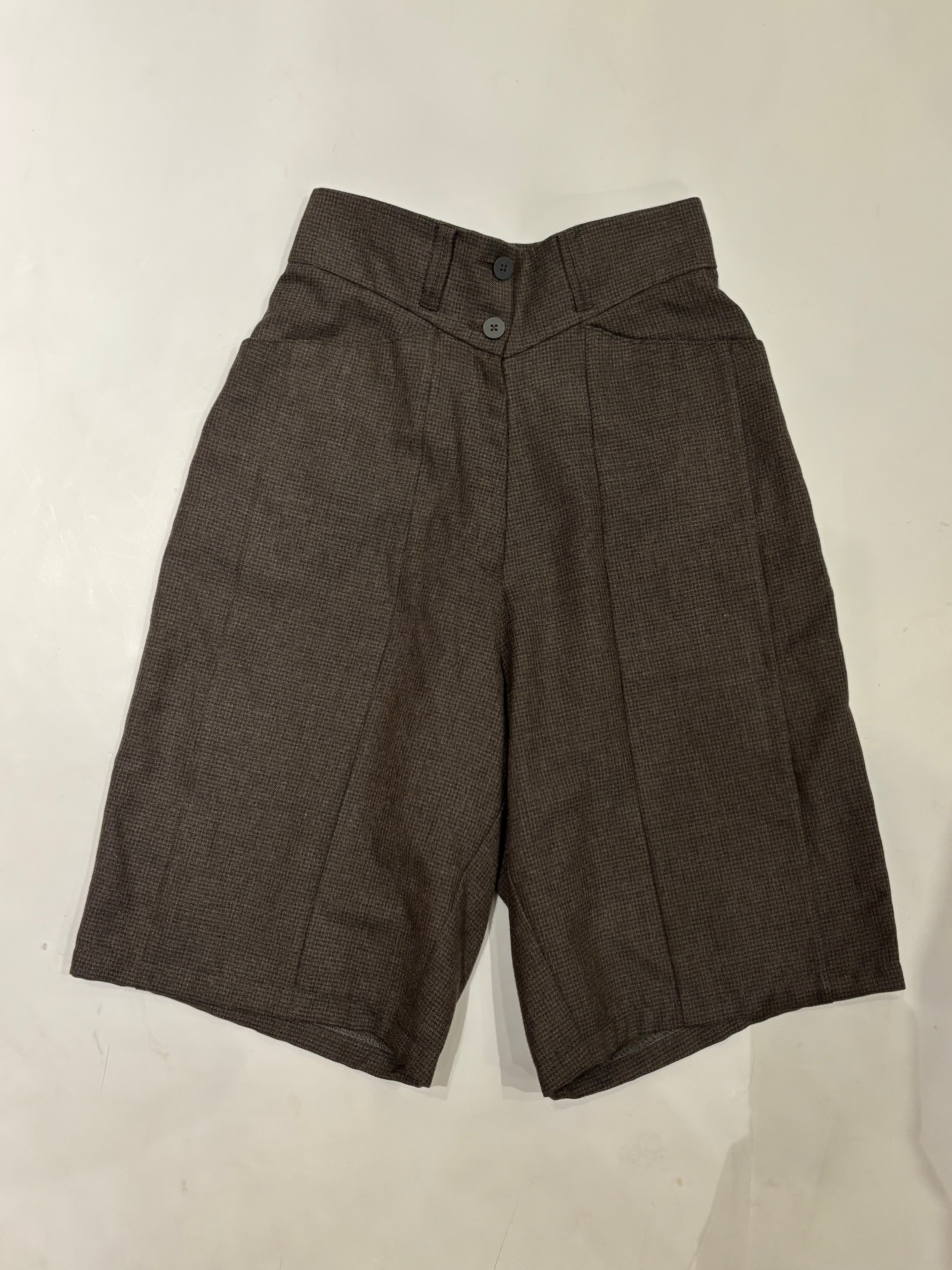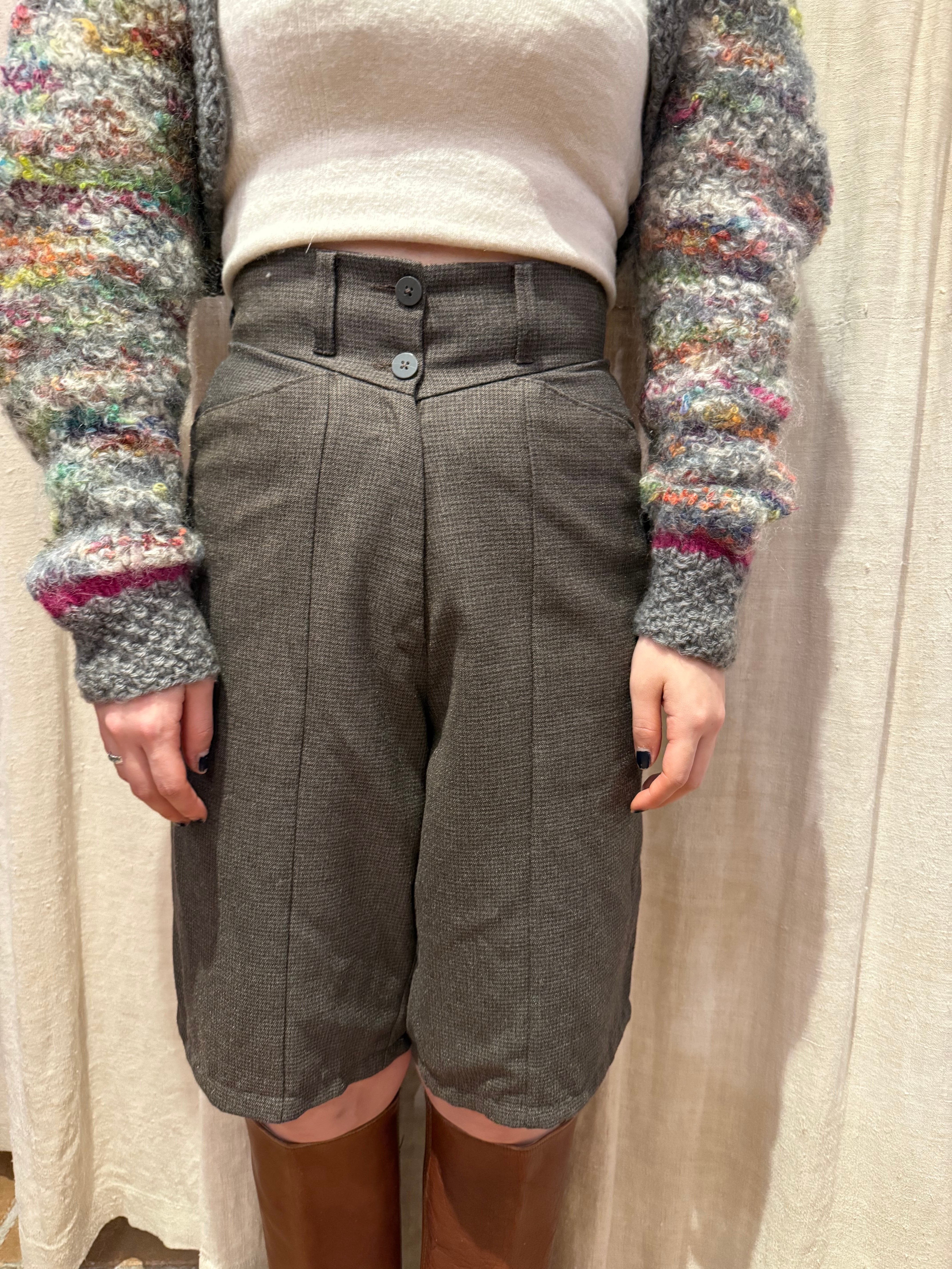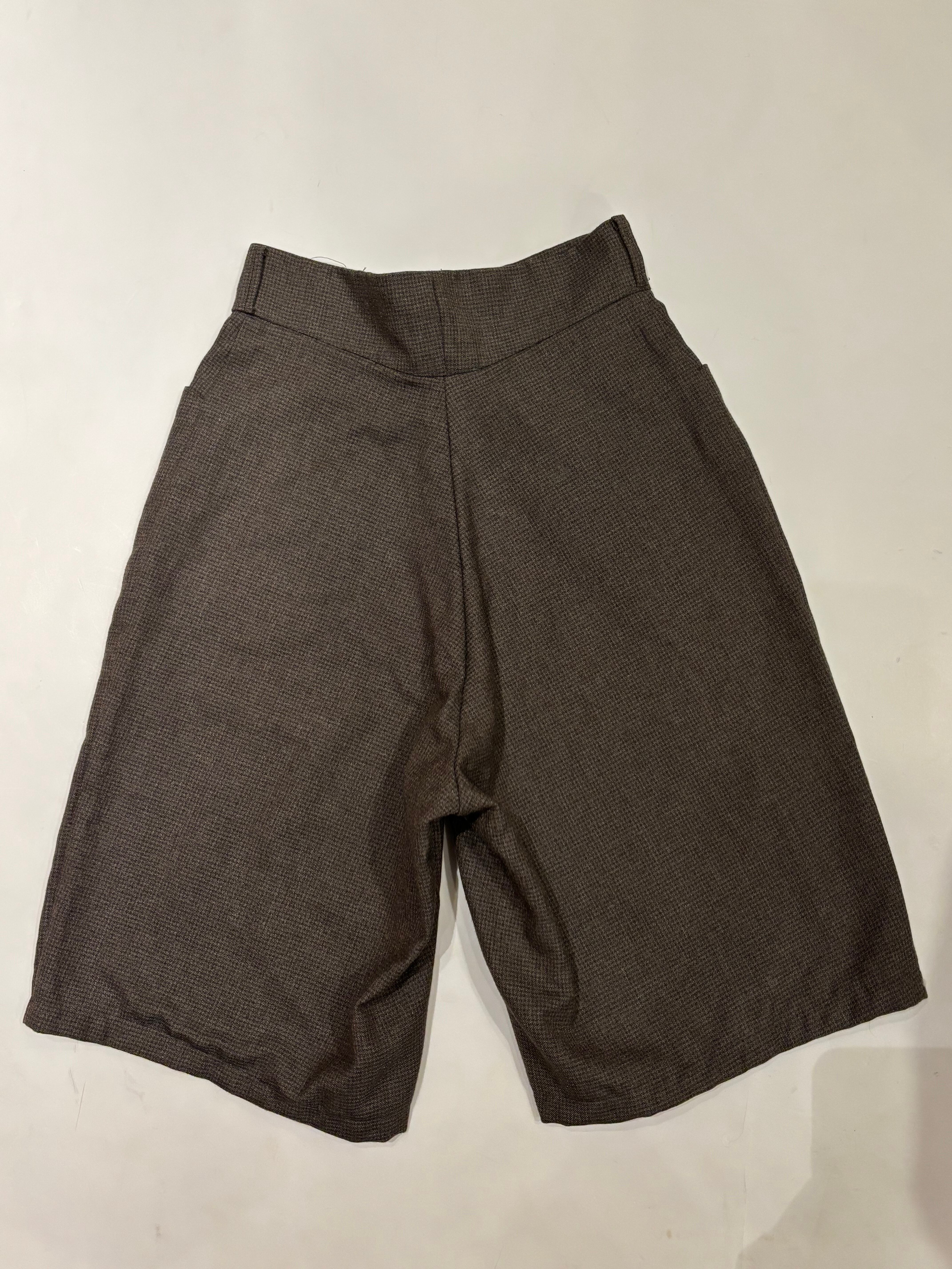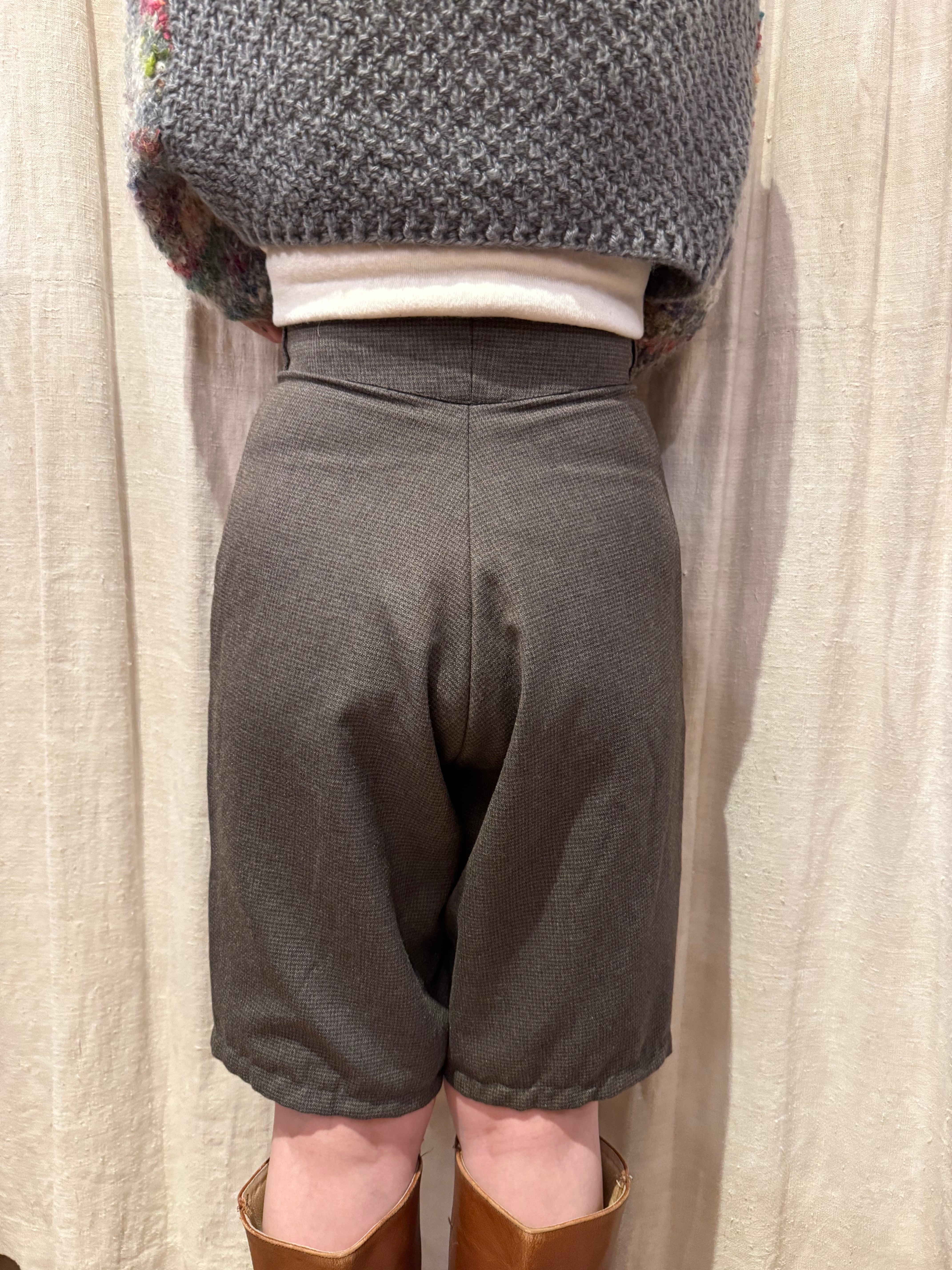 ウール素材のハーフパンツです。少し細身のシルエットでスッキリ履けてカジュアルになりすぎないです。ウエストのデザインも可愛いので、インスタイルもオススメです。綺麗めスタイルがお好きな方にピッタリのハーフパンツです。