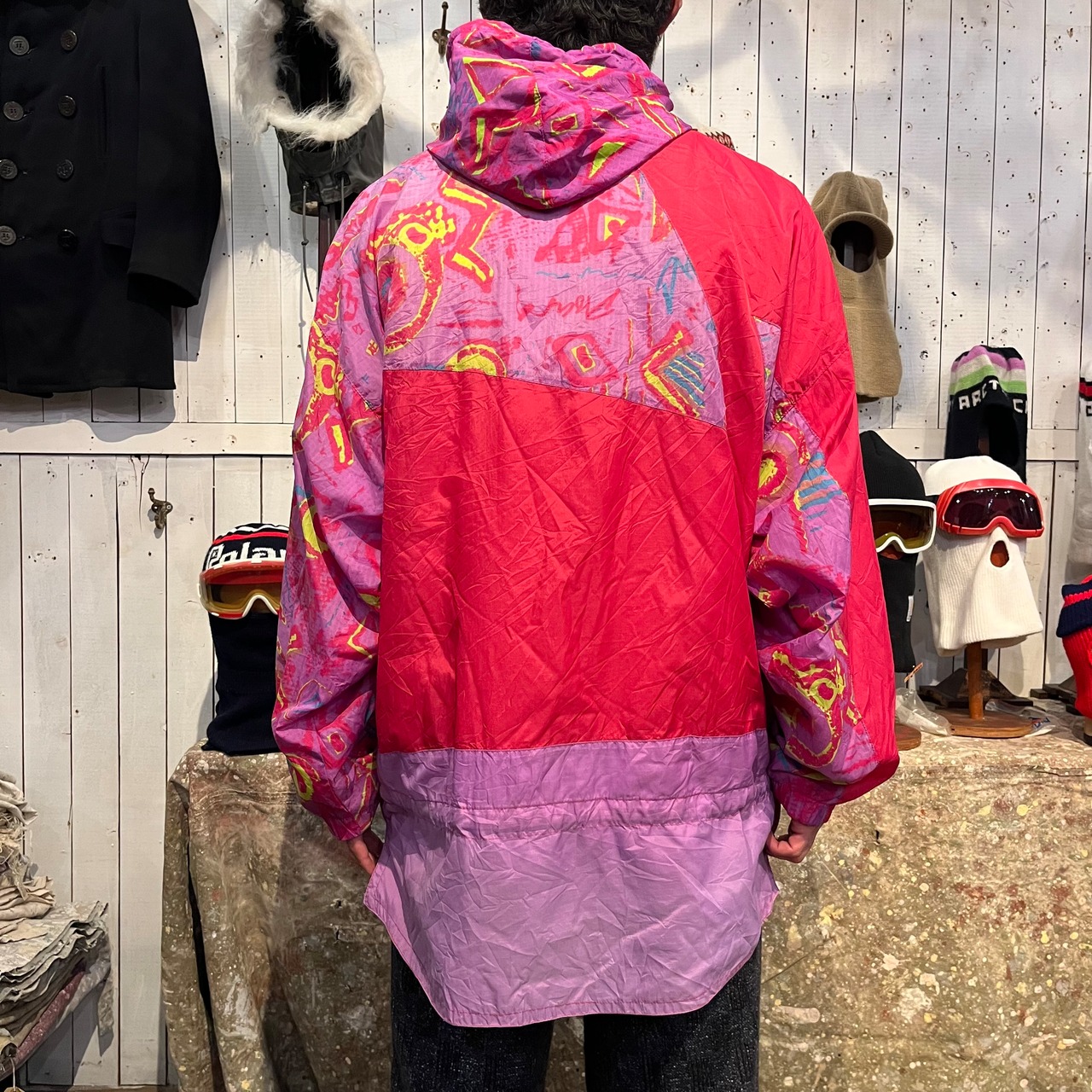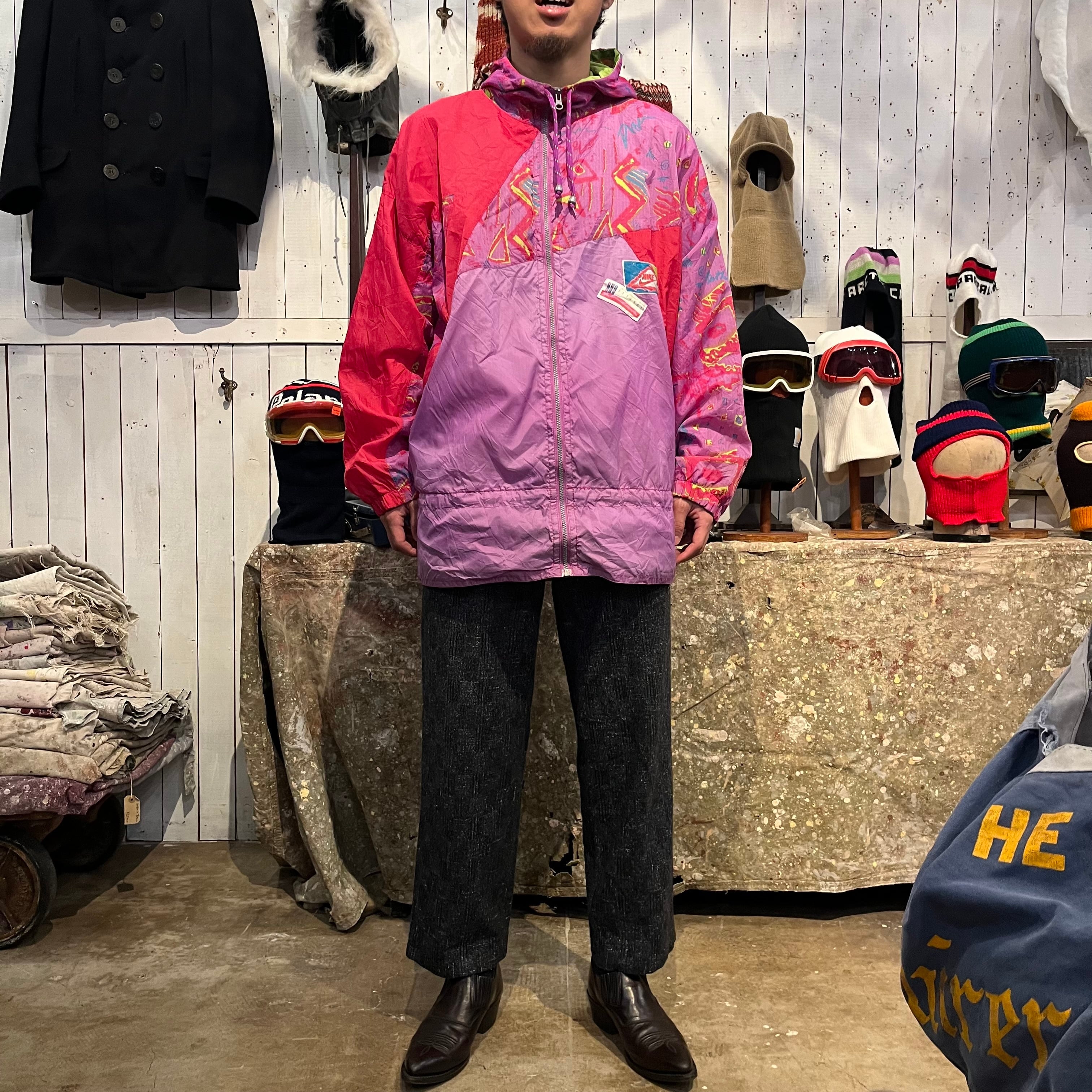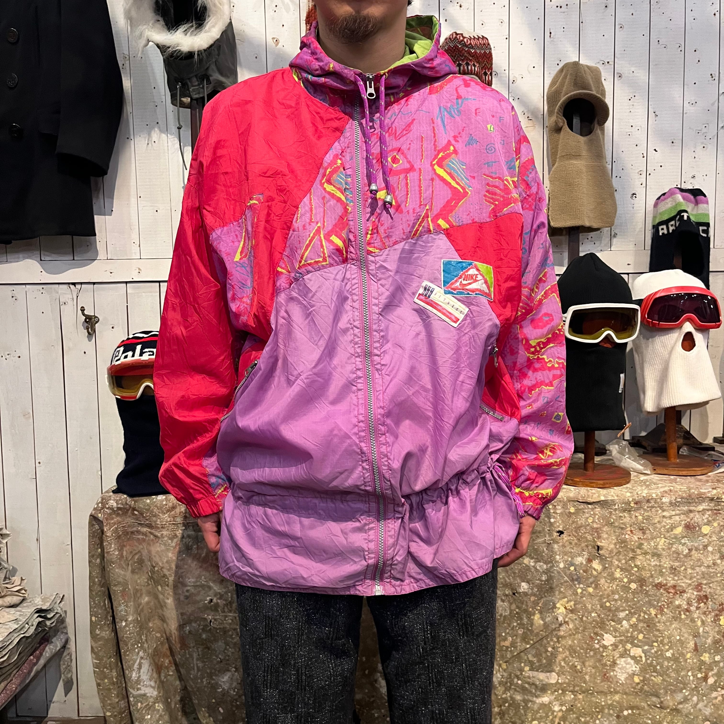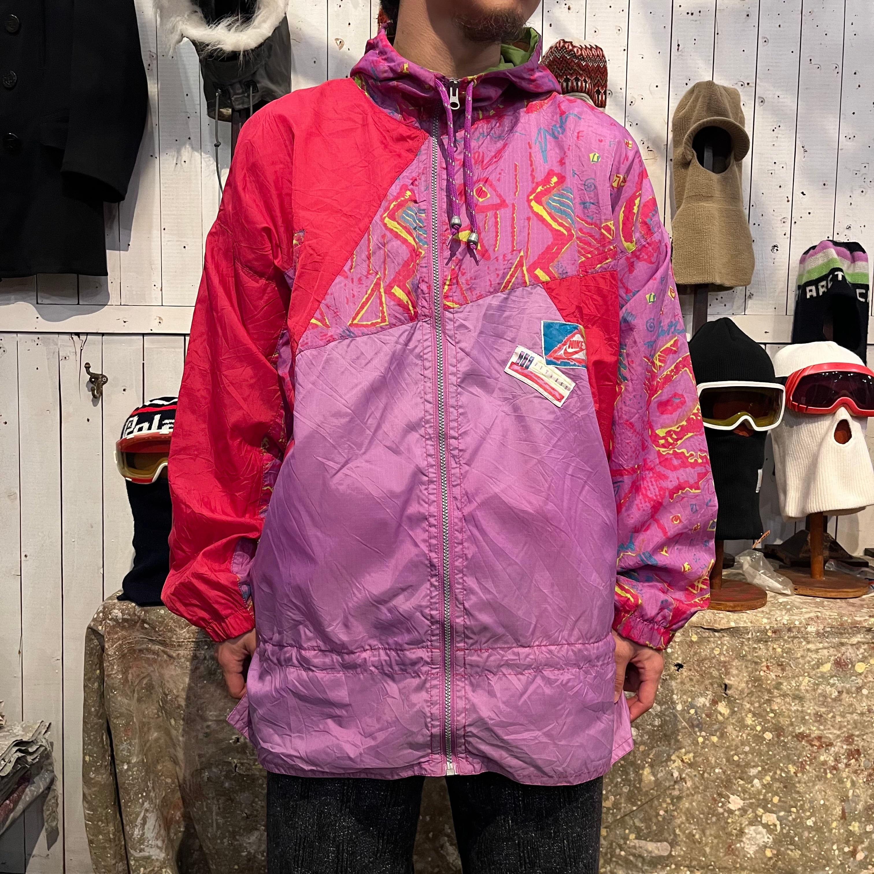 ナイキのフルジップナイロンフーディーになります。こちらは90年代からのアイテム。このシリーズは他にもデザインが違うもので見かけたりもしますが、ピンクをメインとするビビットカラー同士の相性がとても良いです。
