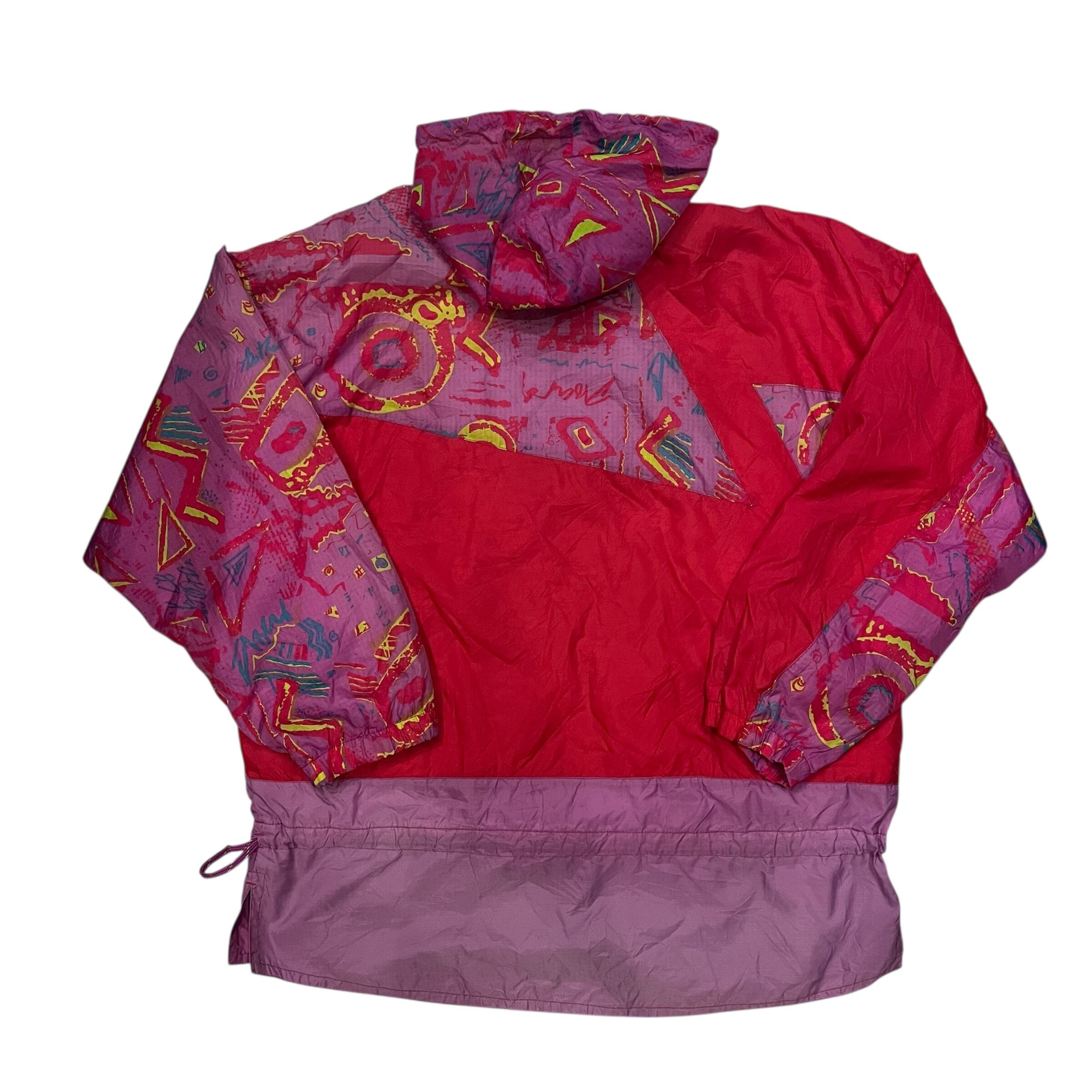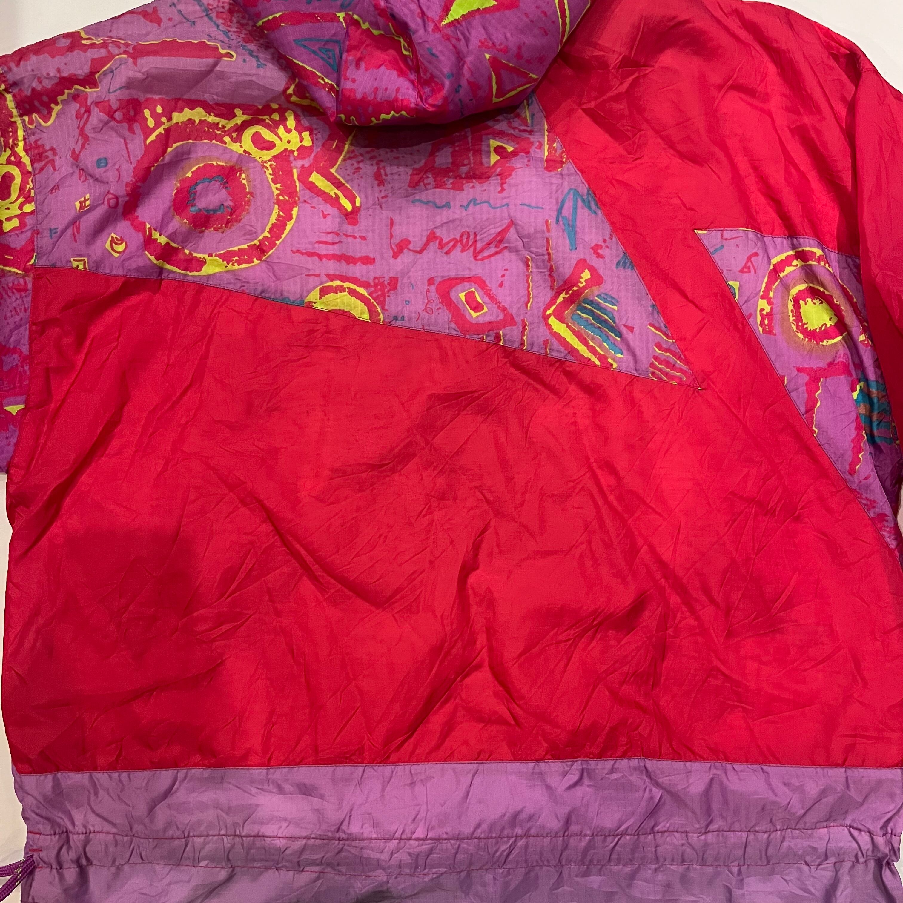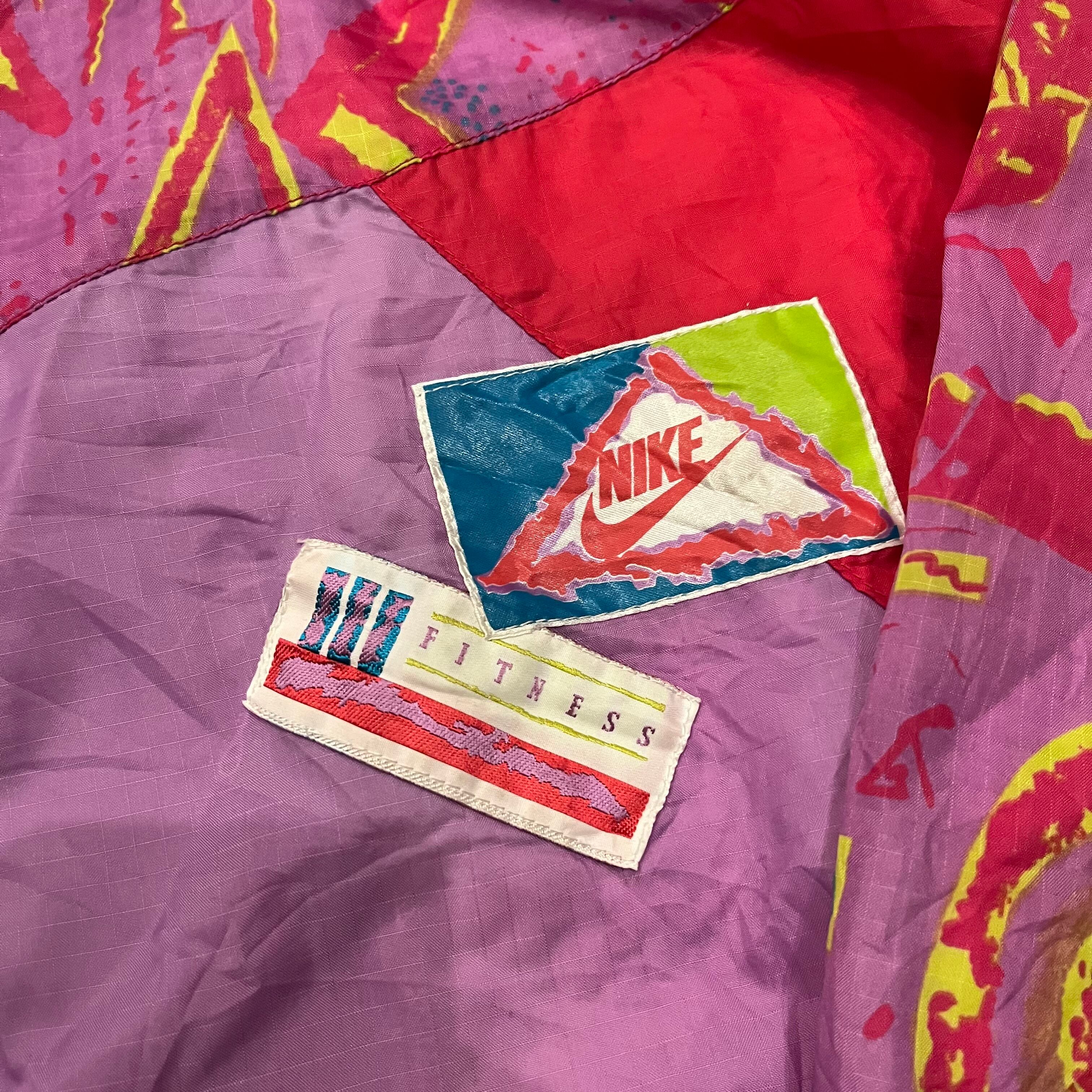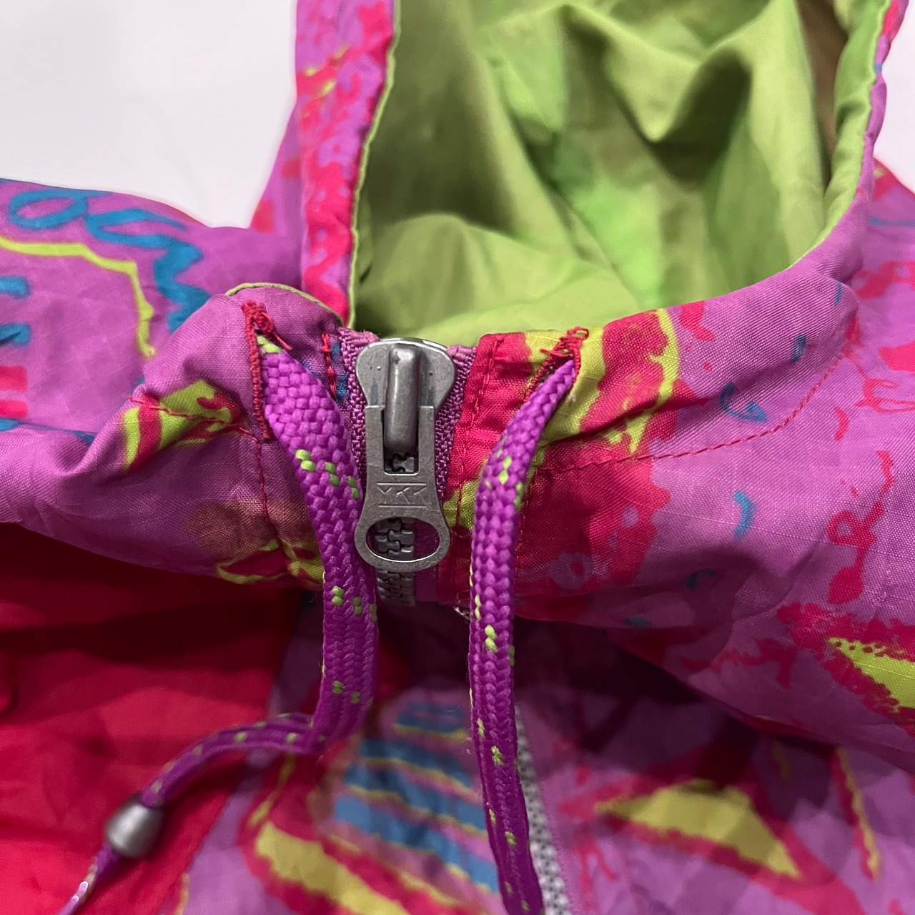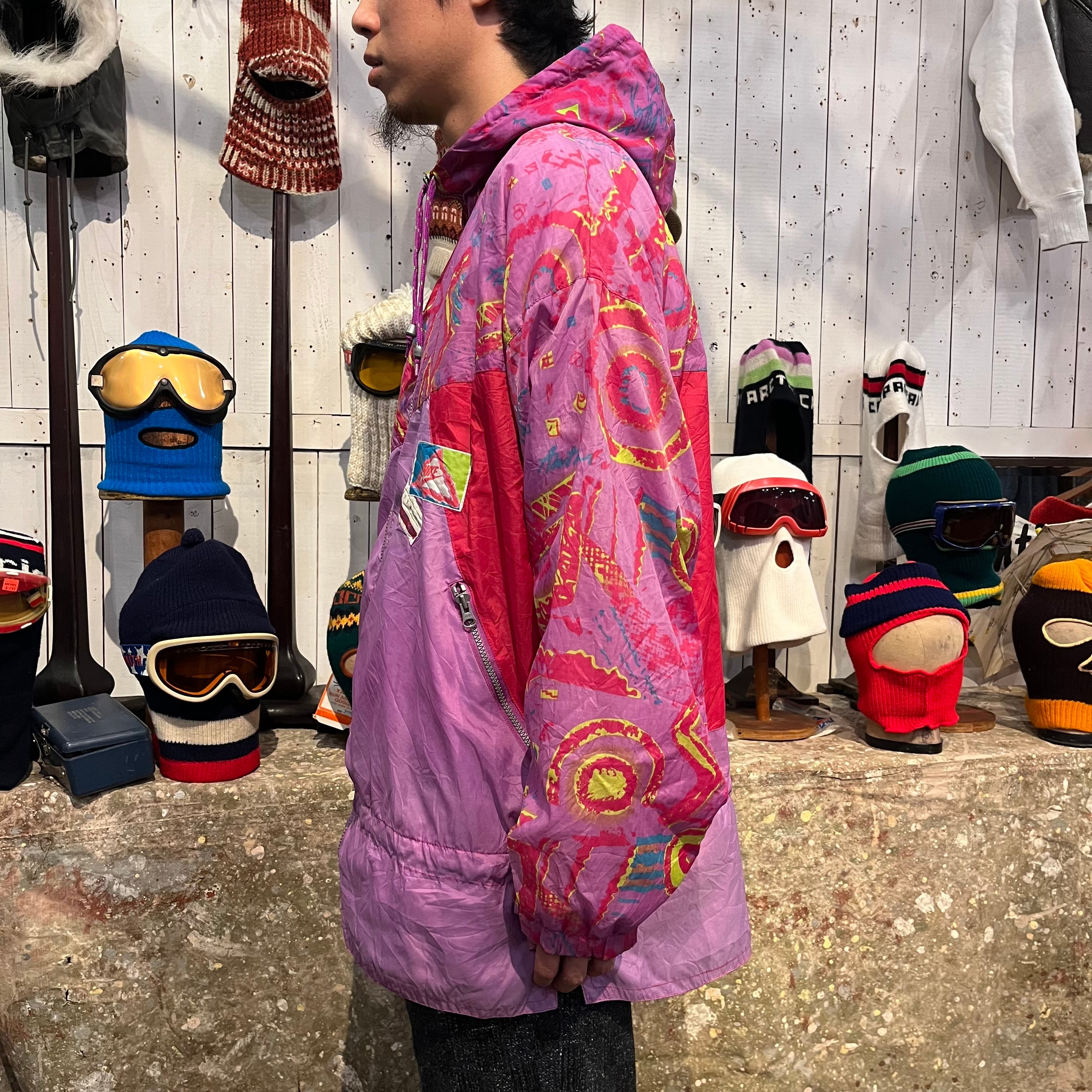 ナイキのフルジップナイロンフーディーになります。こちらは90年代からのアイテム。このシリーズは他にもデザインが違うもので見かけたりもしますが、ピンクをメインとするビビットカラー同士の相性がとても良いです。