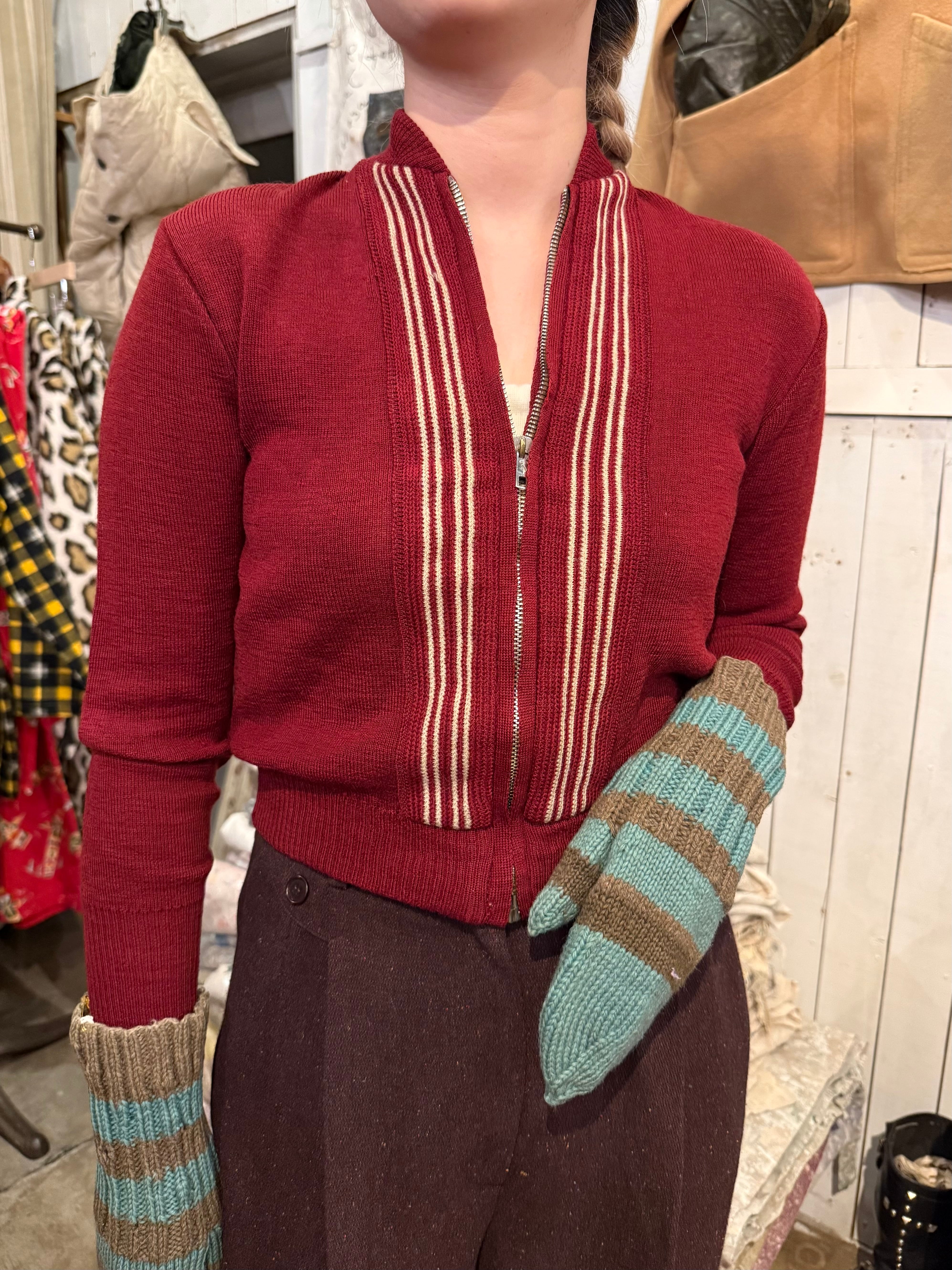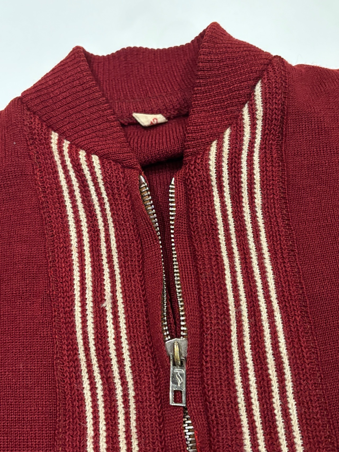 ピタッとしたタイトなシルエットのフルジップニット。小さめなサイズ感でインナーとしても使えるアイテム。ジップ横の白いラインがポイントです。秋冬らしいカラーでコーディネートのワンポイントにもなります。