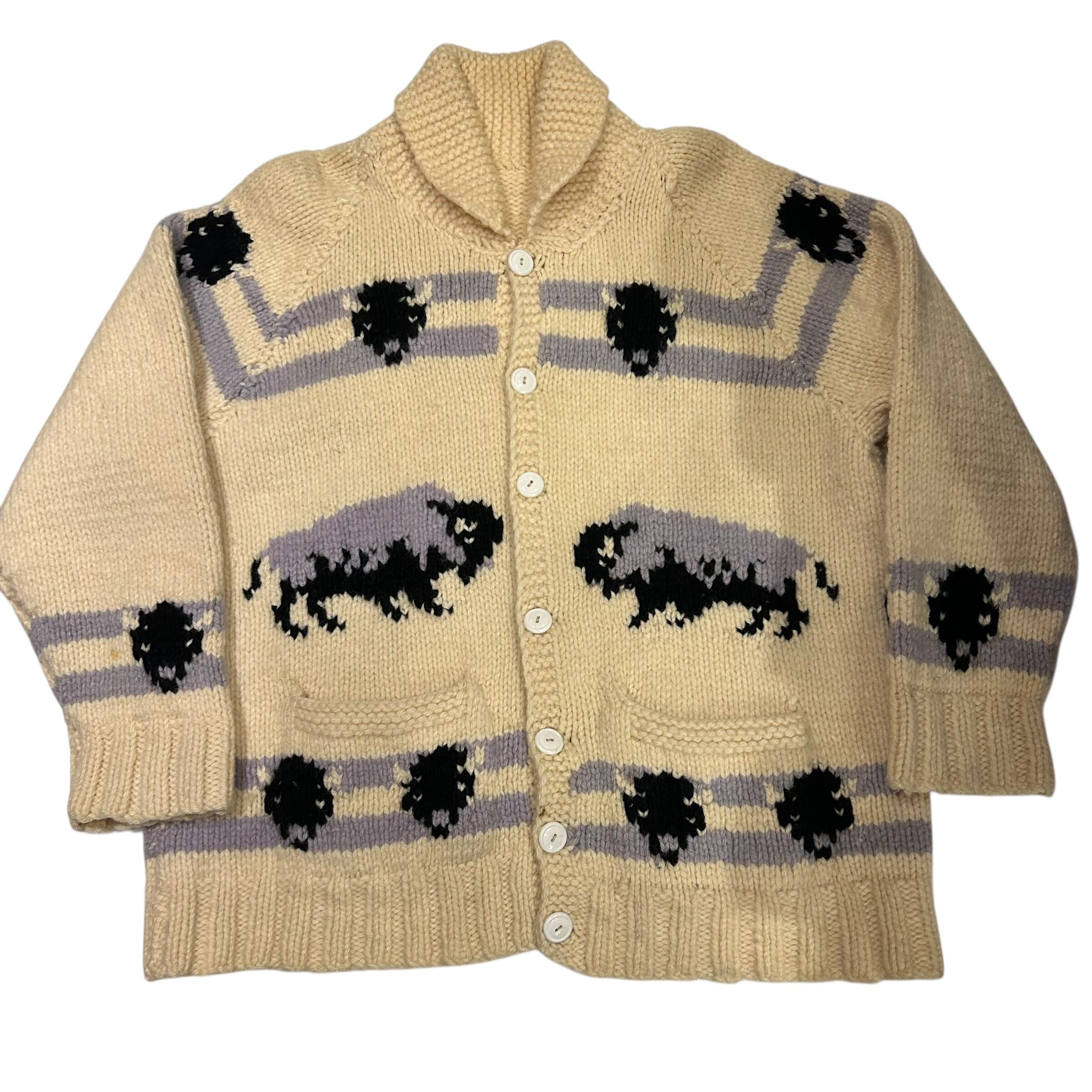 60~70年代位に近い個体のカウチンでございます。こちらのカウチンは、ボタンタイプの個体でございます。柄はバッファロー柄です。小さいサイズも多いジャンルではございますが、バランスのとれたサイズ感でございます。