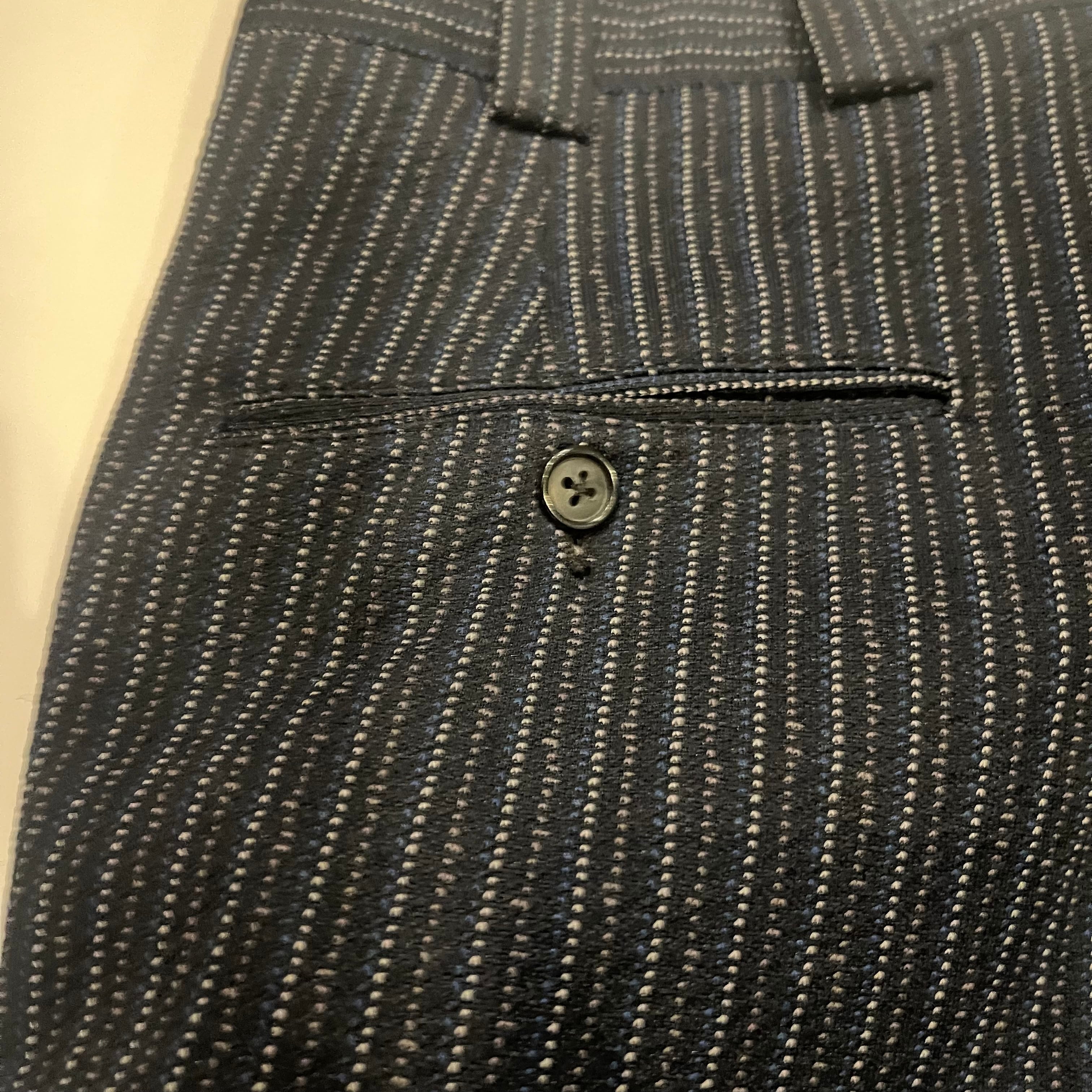 遠くから見るとストライプに見えますが近くで見ると細かいピンストライプが施されているのがわかると思います。