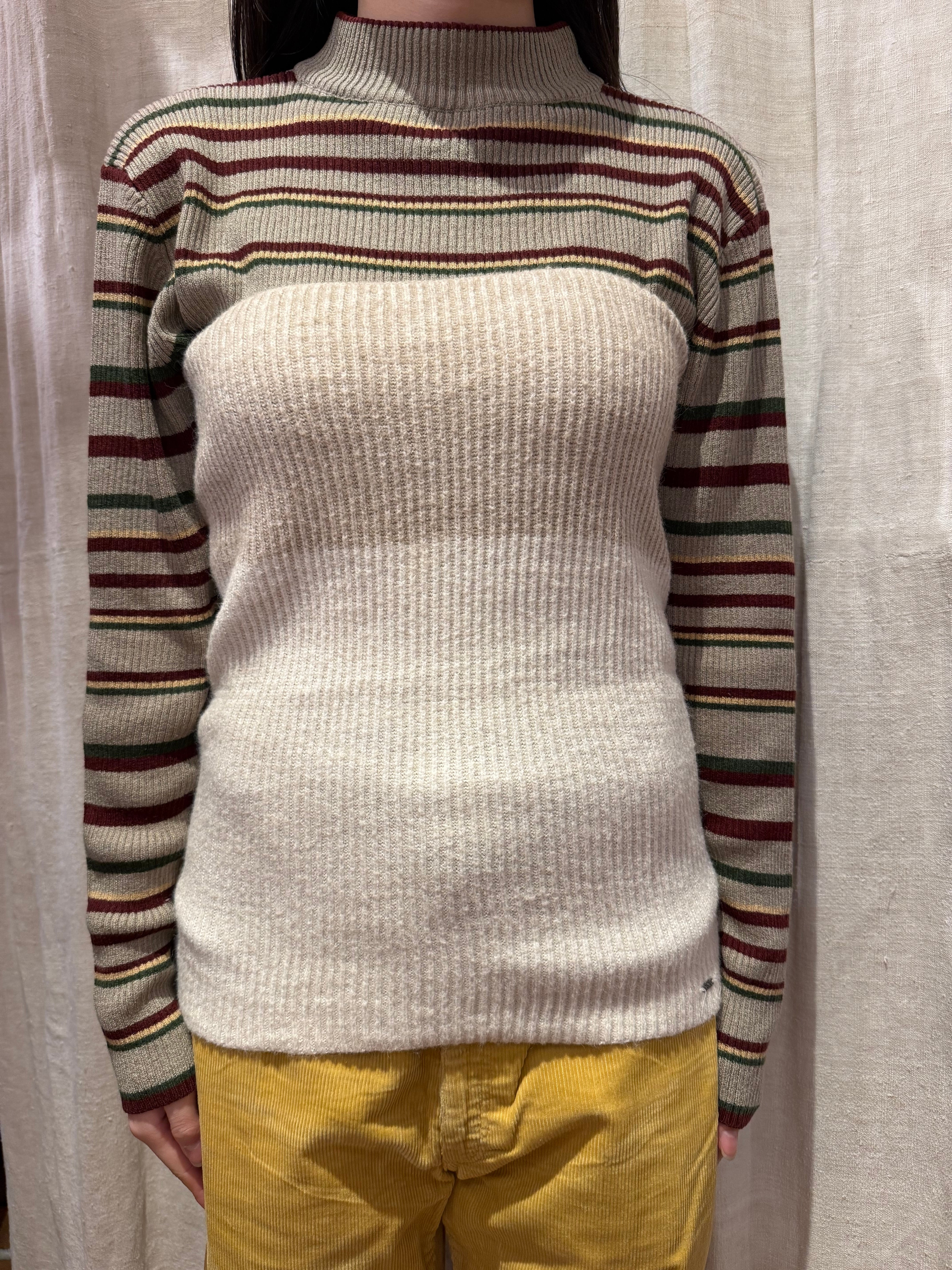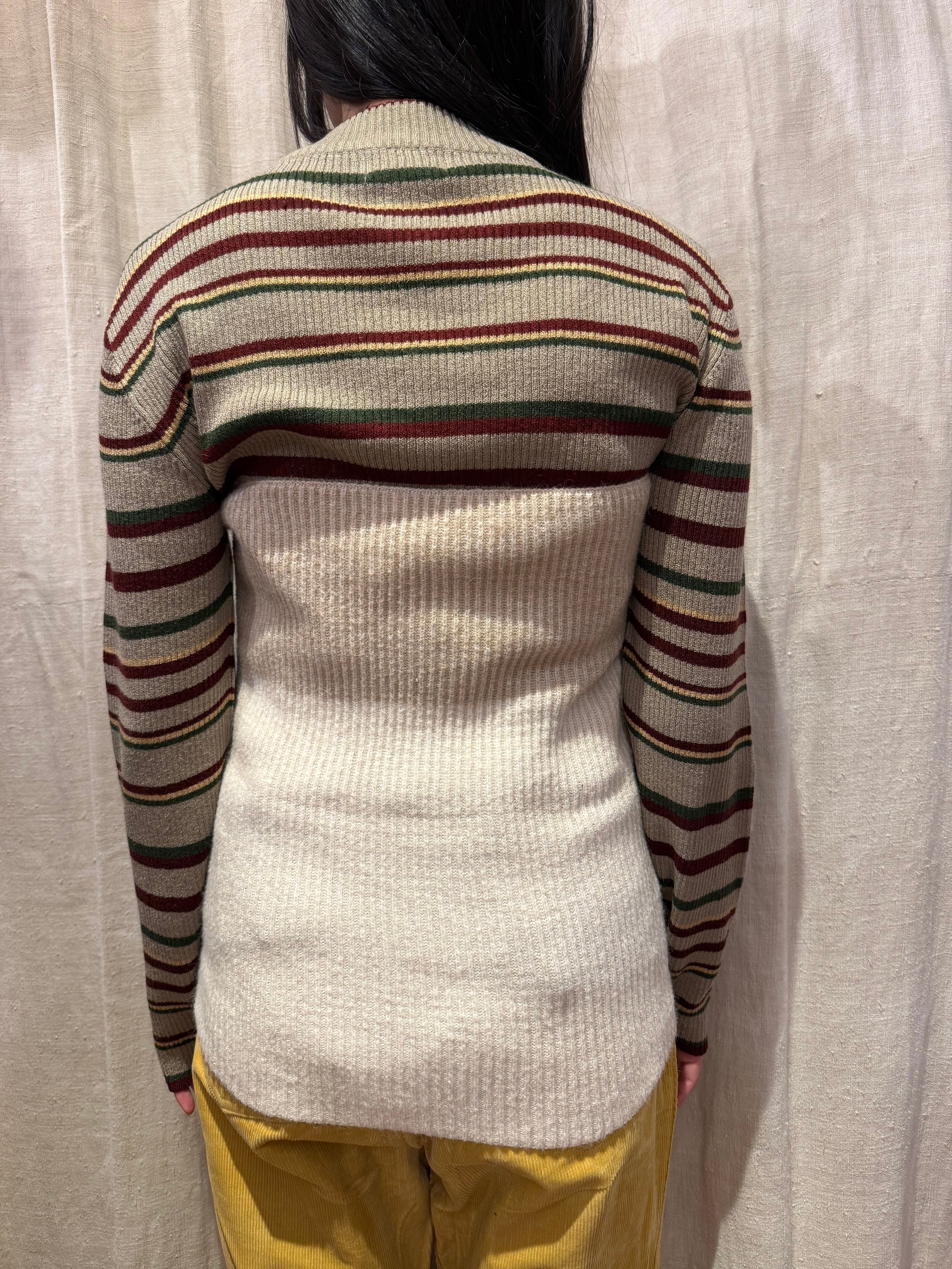 リブなので伸縮性があり、アイボリーとブラウンのバイカラーになっているのも可愛らしいベアトップ。ペアトップとして使うのが主流ですがお腹に巻いたりスカートにしても良いです。何か物足りない時に使えるアイテムです。
