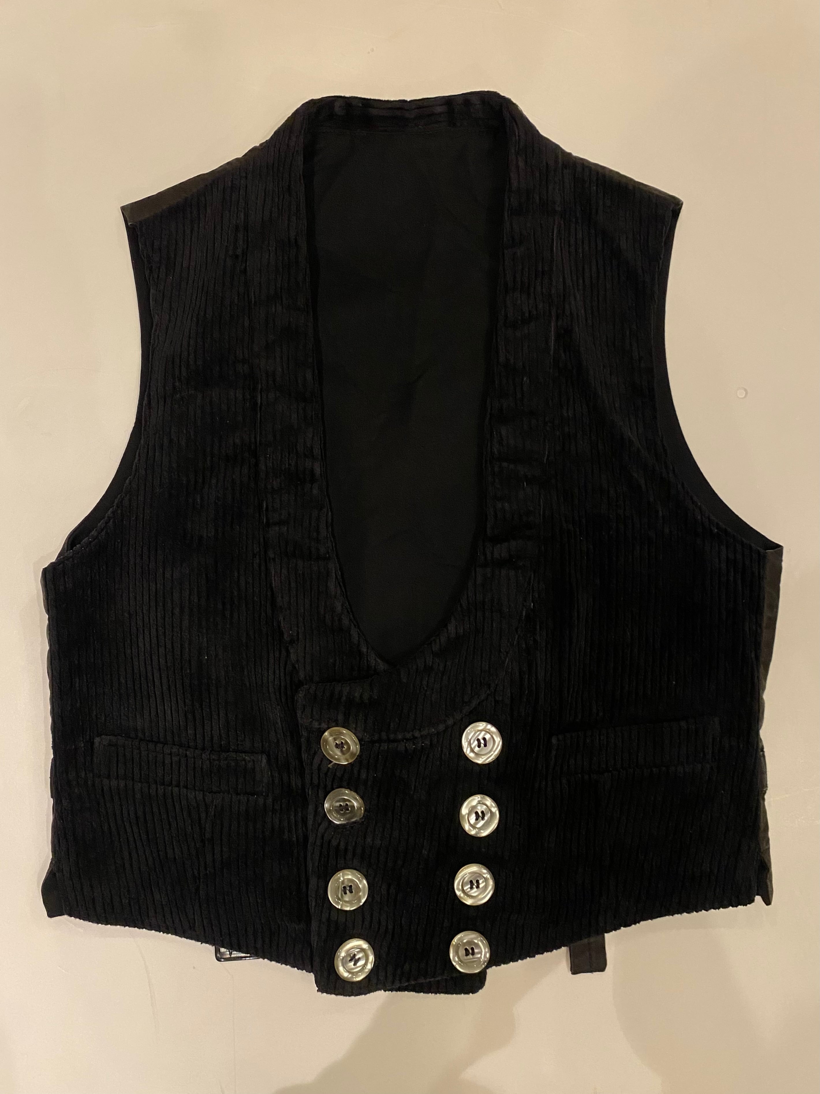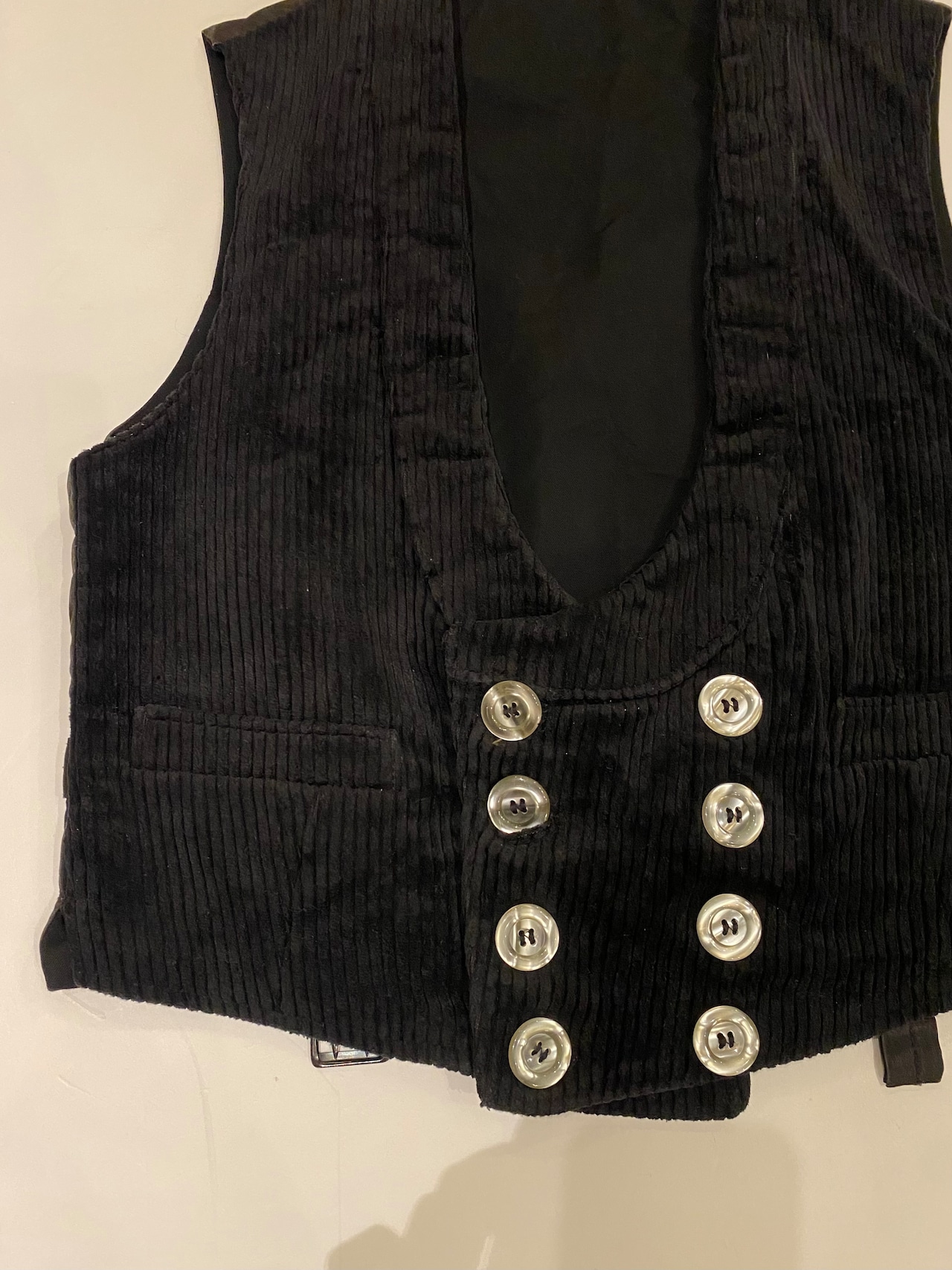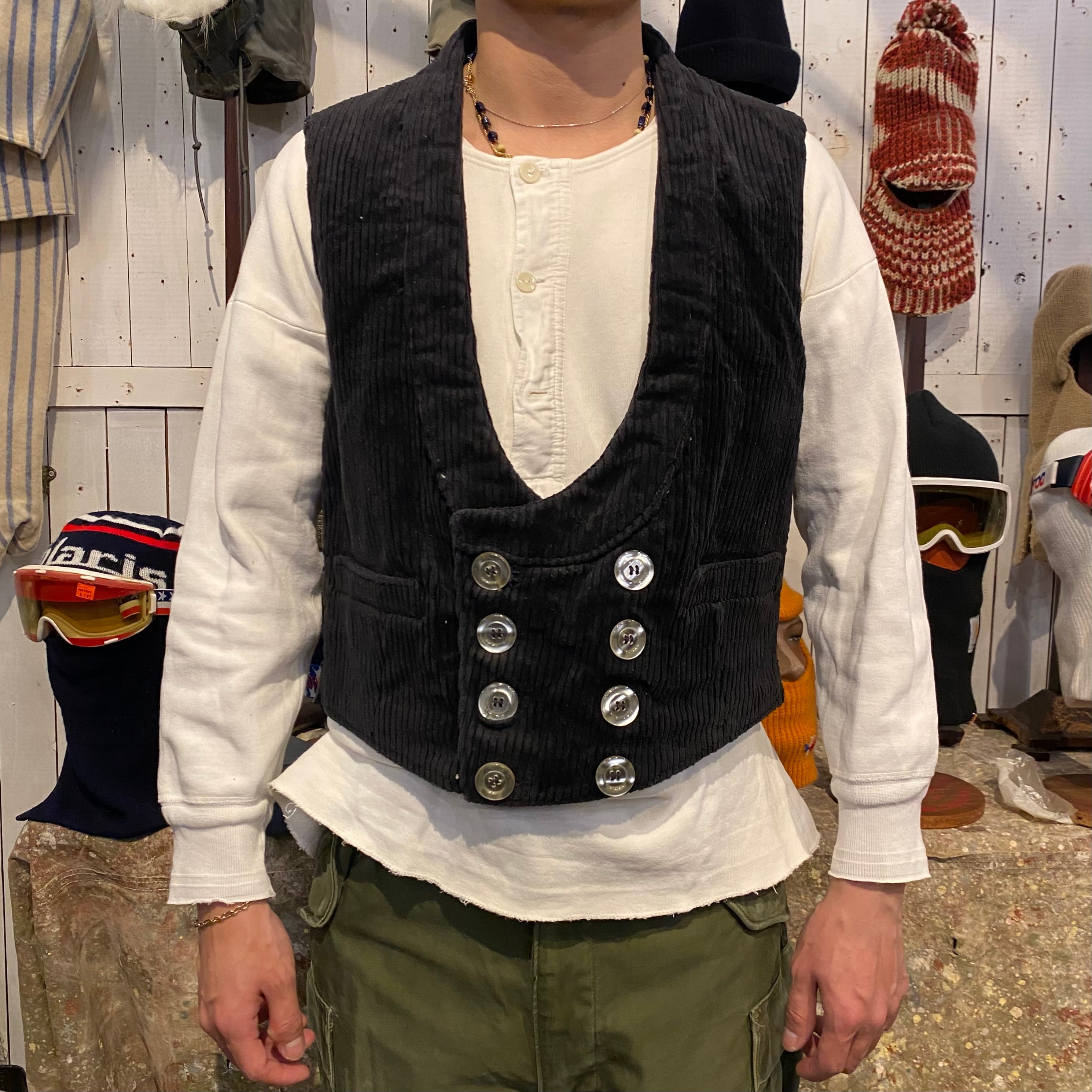 こちらのベストは大きめのボタンでダブルになっているのが特徴です。インパクト、デザイン性もあり、コーディネートのポイントになりそうです。