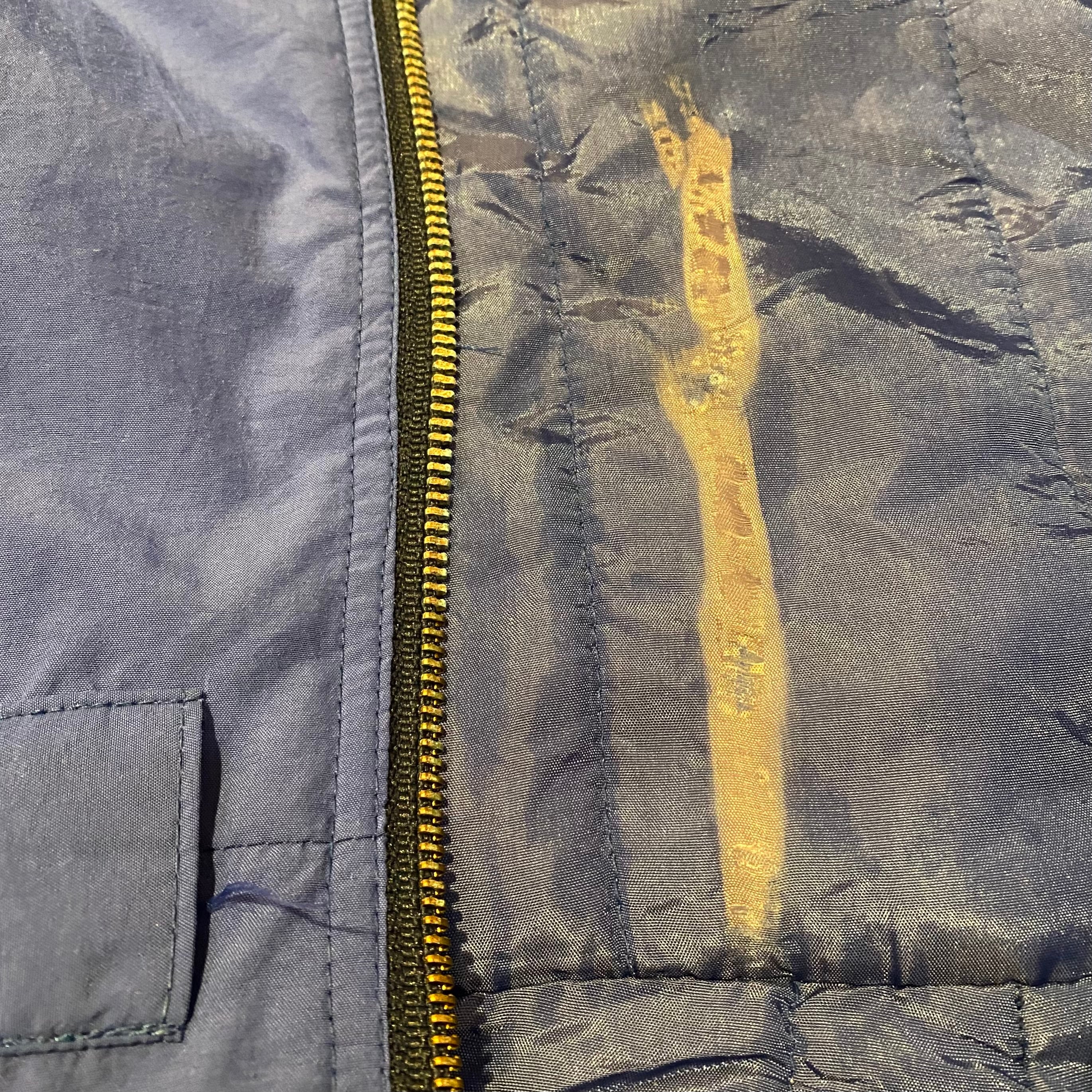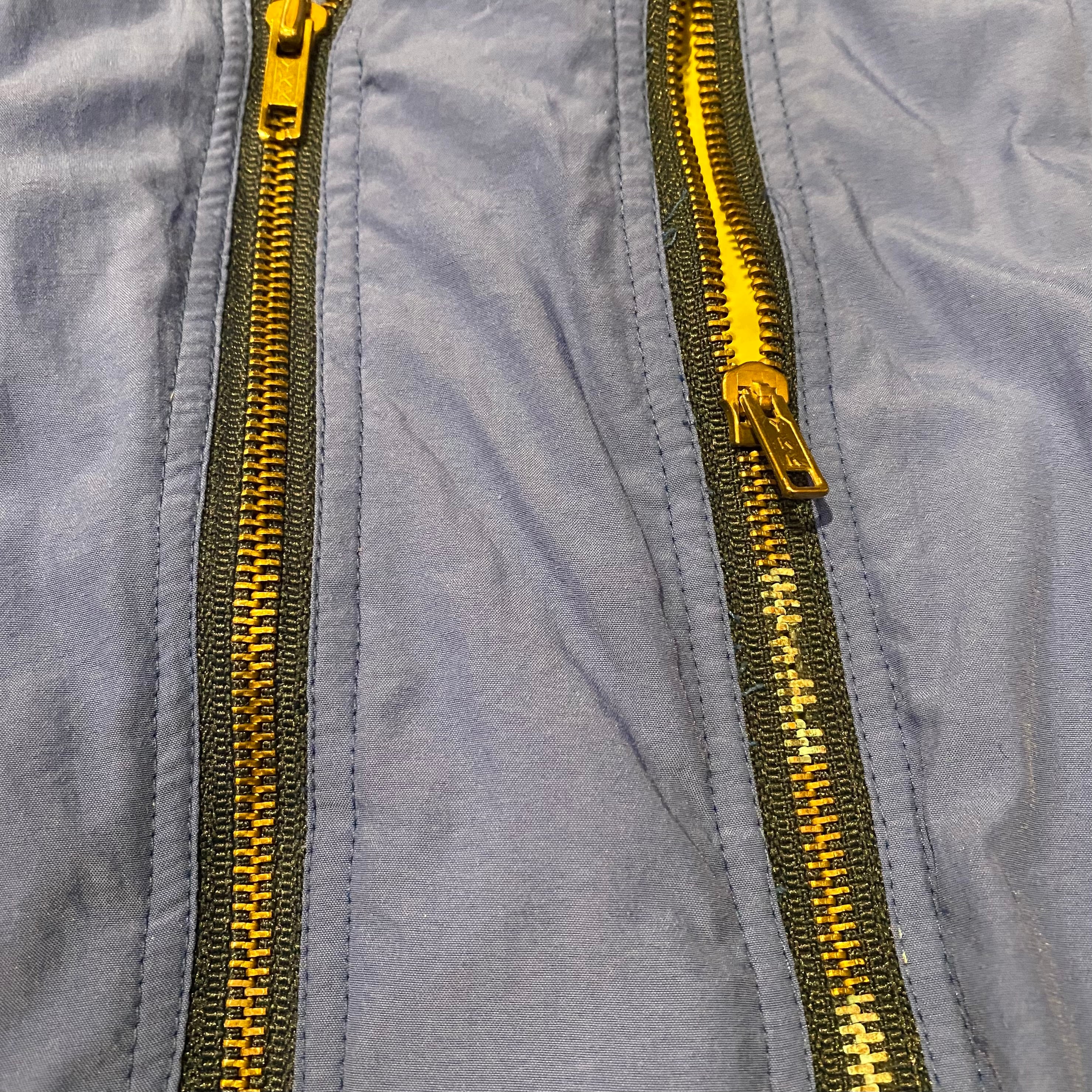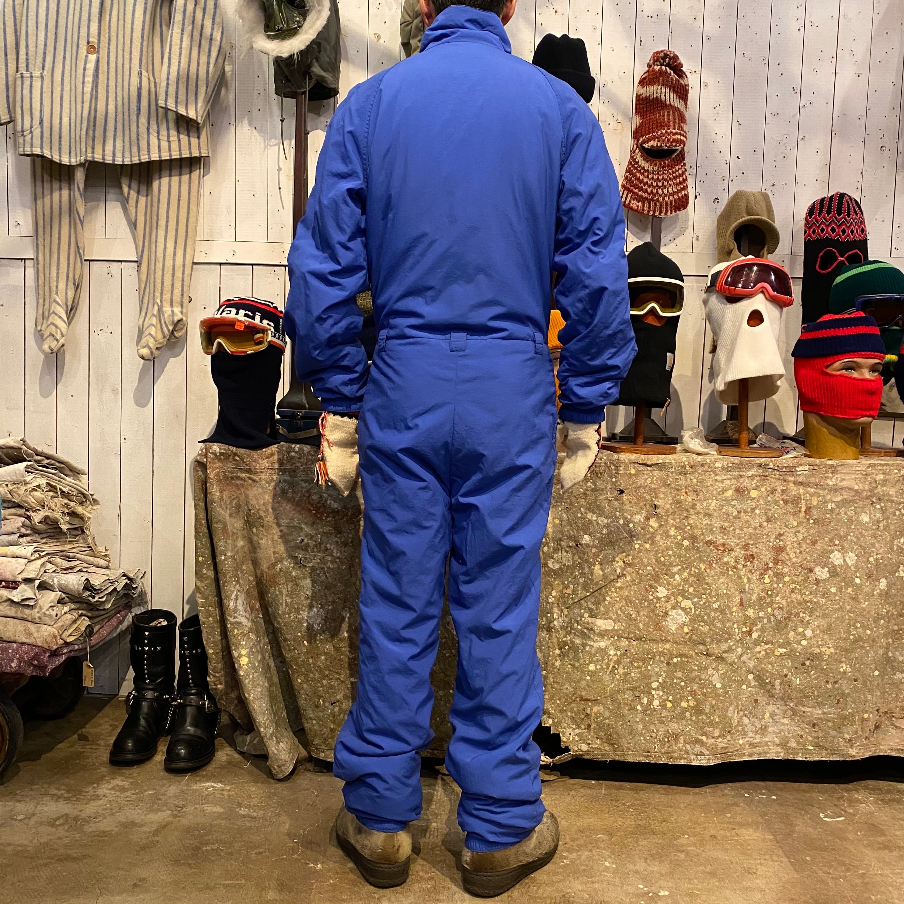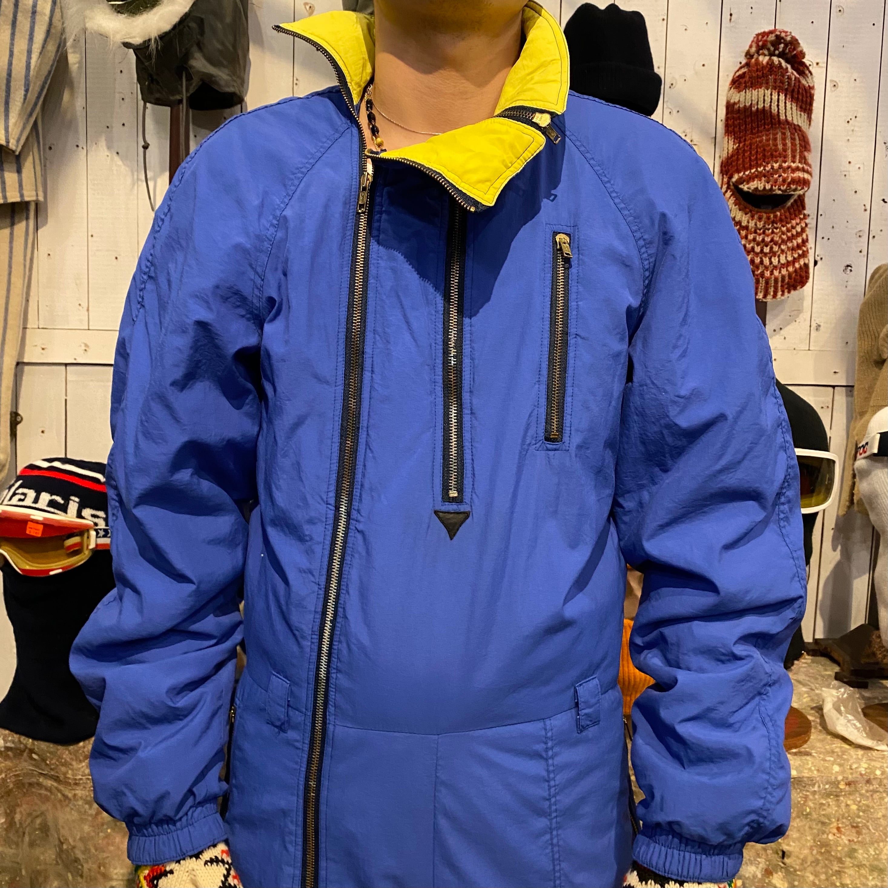 ヨーロッパのスキージャンプスーツになります。中綿が薄く入っていて着ると少しもこっとする感じがとてもかわいいです。野暮ったくなりがちなジャンプスーツですが形もすっきりしていてスタイリッシュで発色も綺麗だと思います。ジッパー使い、ポケットの付き方も面白くポイントになると思います。ジャケットのインナーに忍ばせて着るのもおすすめです。※フロントジッパー2箇所サビ、歯欠け有り。現状スムーズに可動しますが壊れやすいのでやさしく上げ下げしてください。フロントタグの横あたりに黒っぽい汚れ有り。裏地真ん中あたりに白っぽく生地が薄くなっている箇所があります。