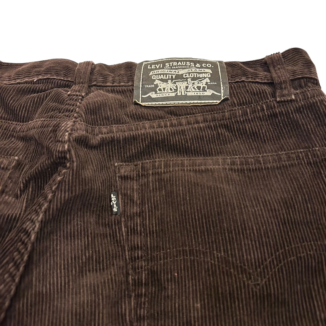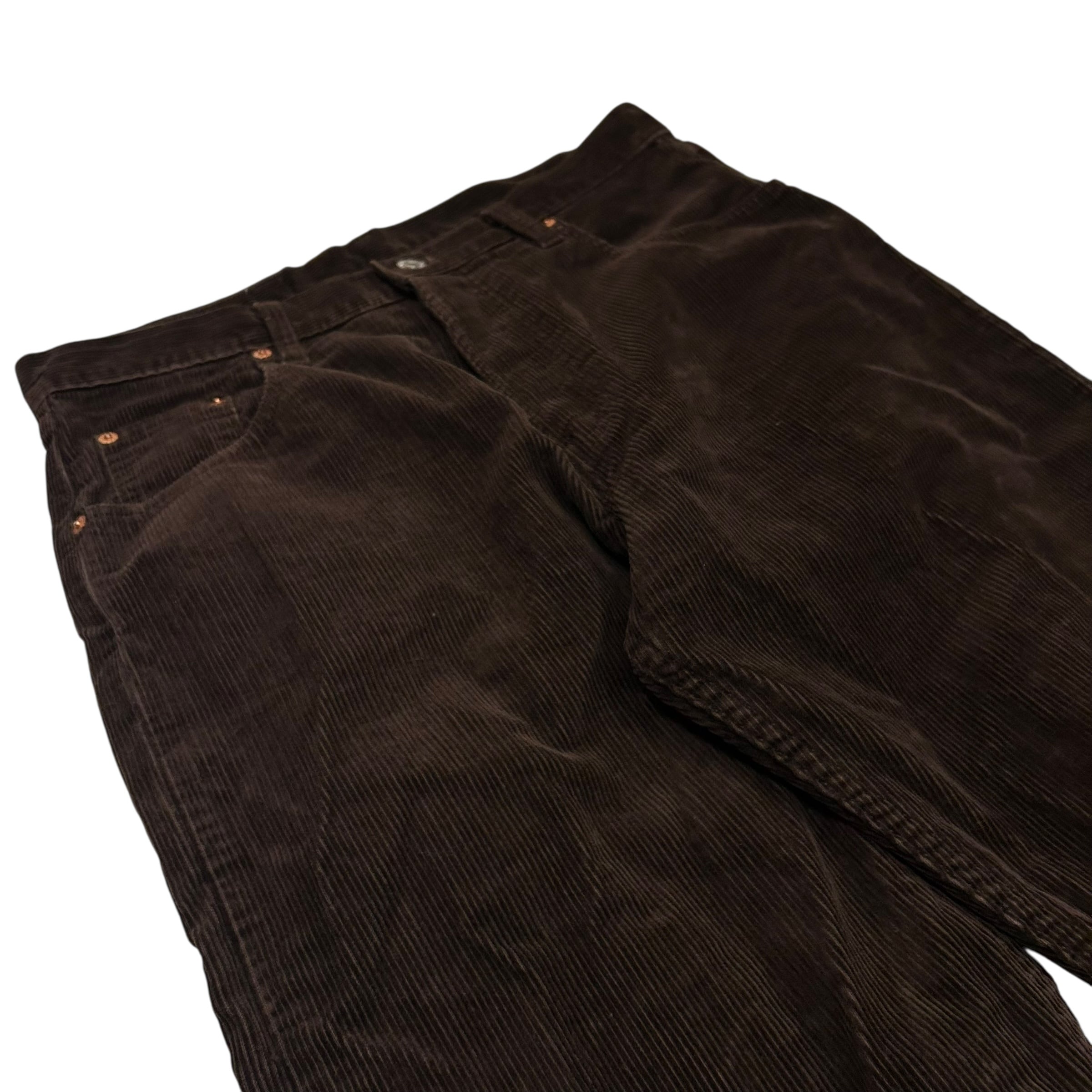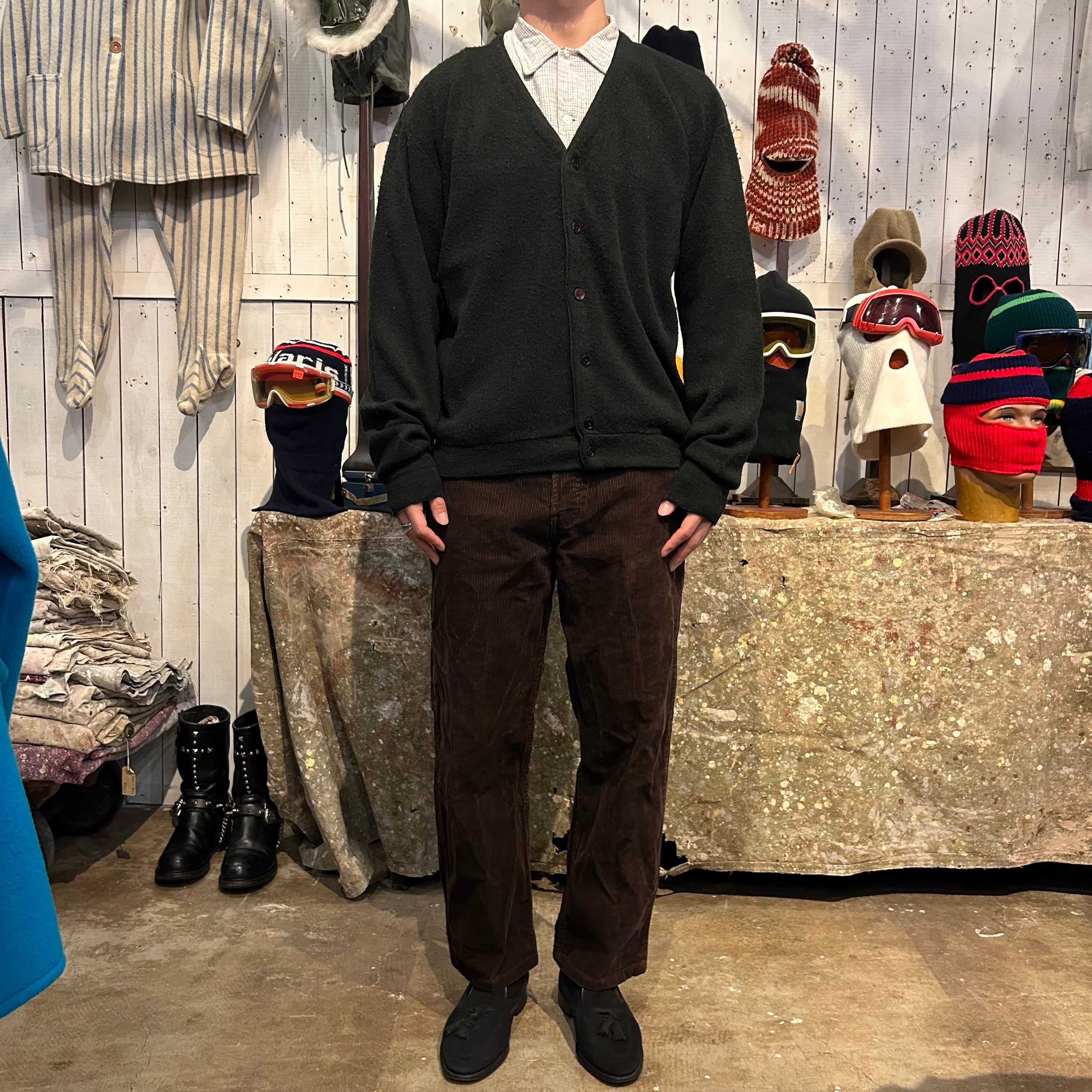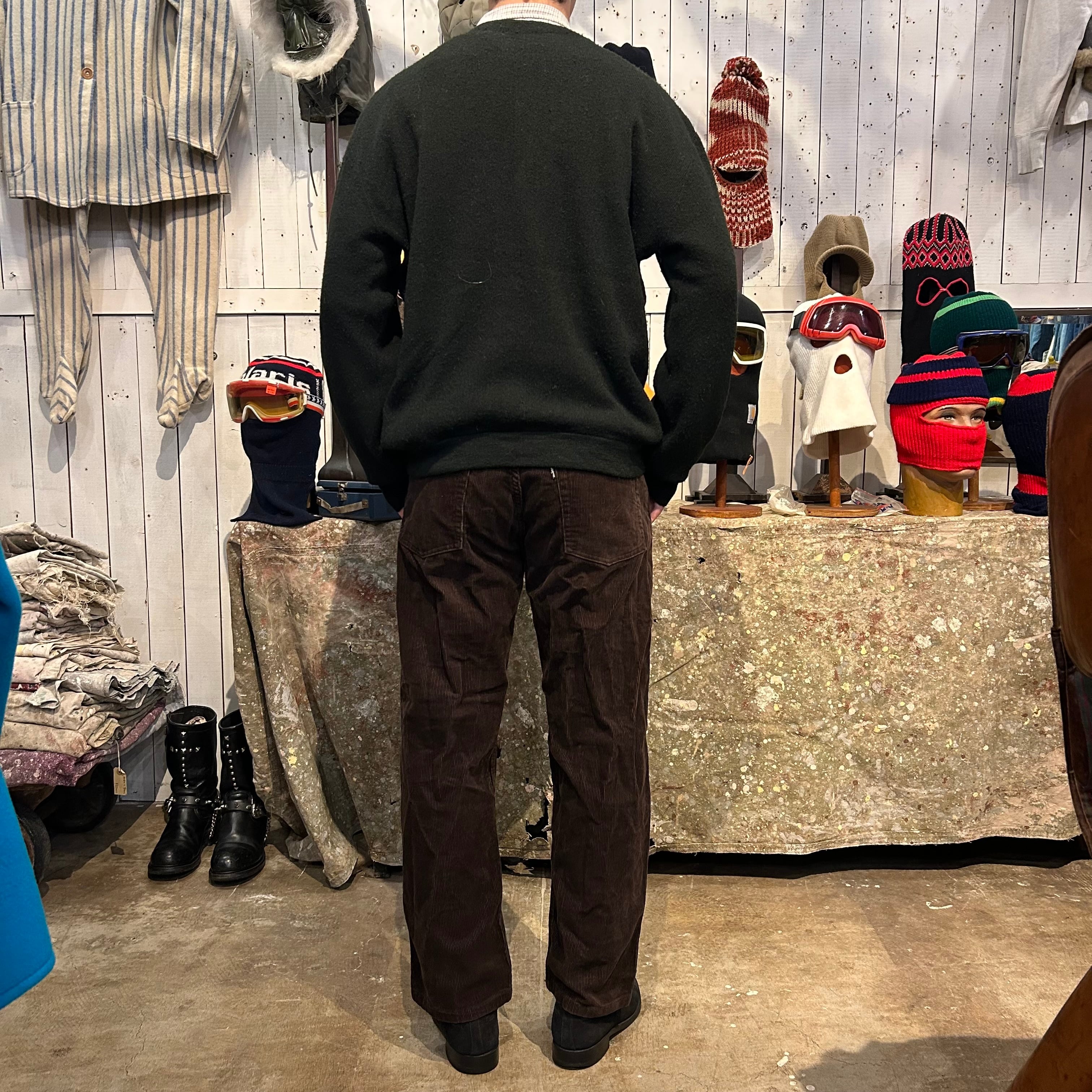 年代の浅いコーデュロイパンツでよく見るジッパーではなくボタンフライの個体でございます。カラーはブラウンです。