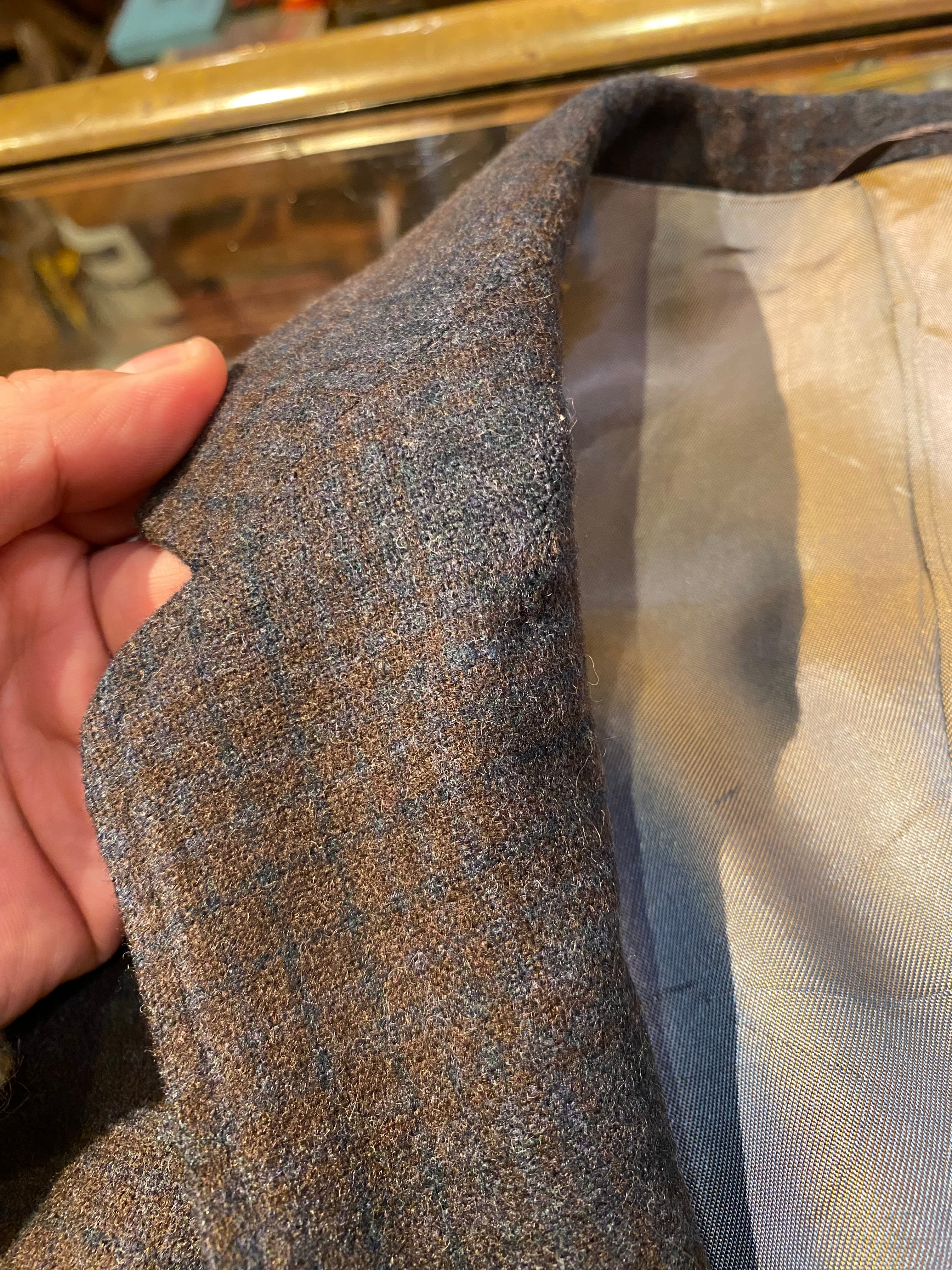 素材はウールです。背中の裏地は無しなので、軽くてサラッと羽織れます。