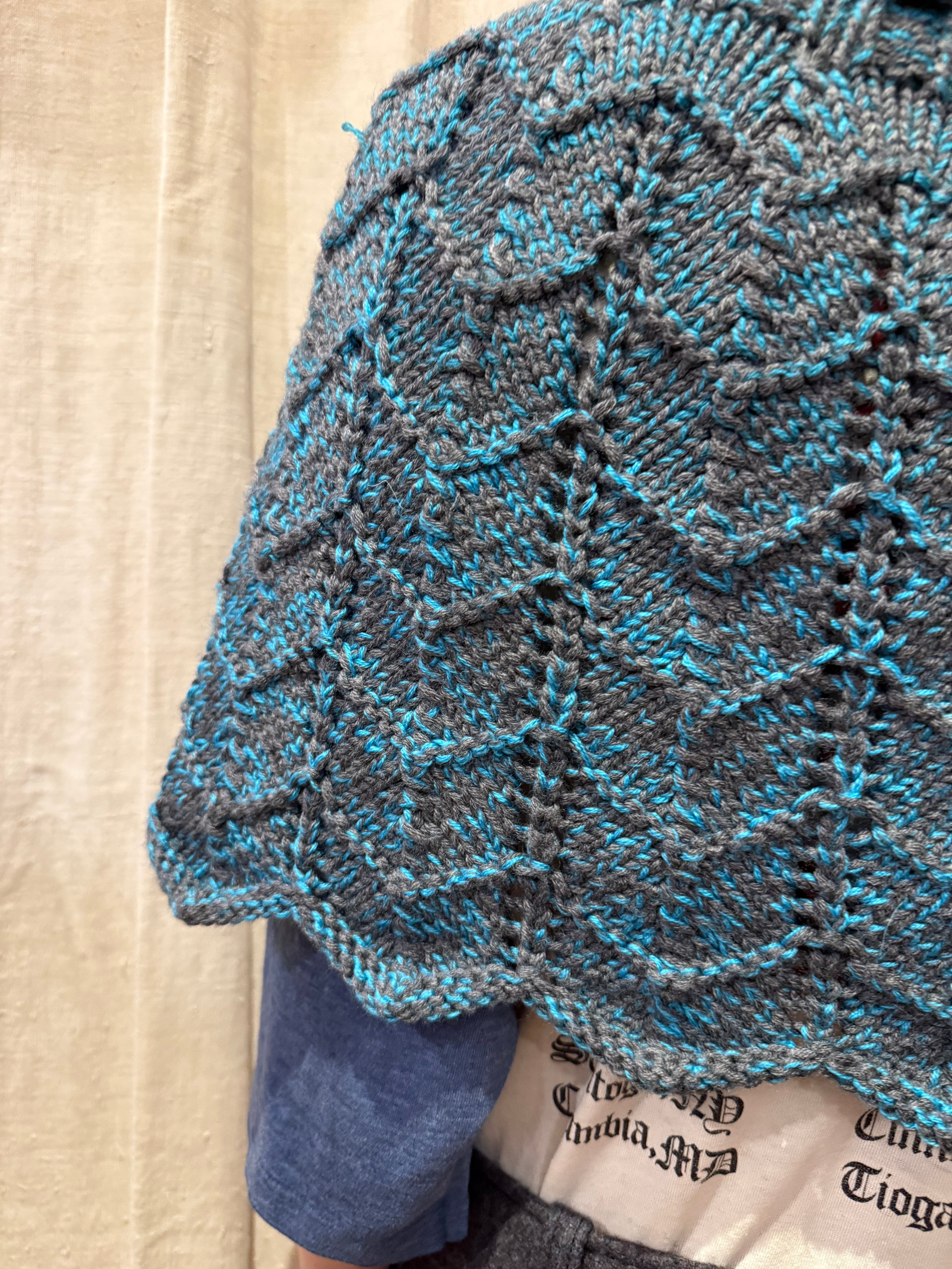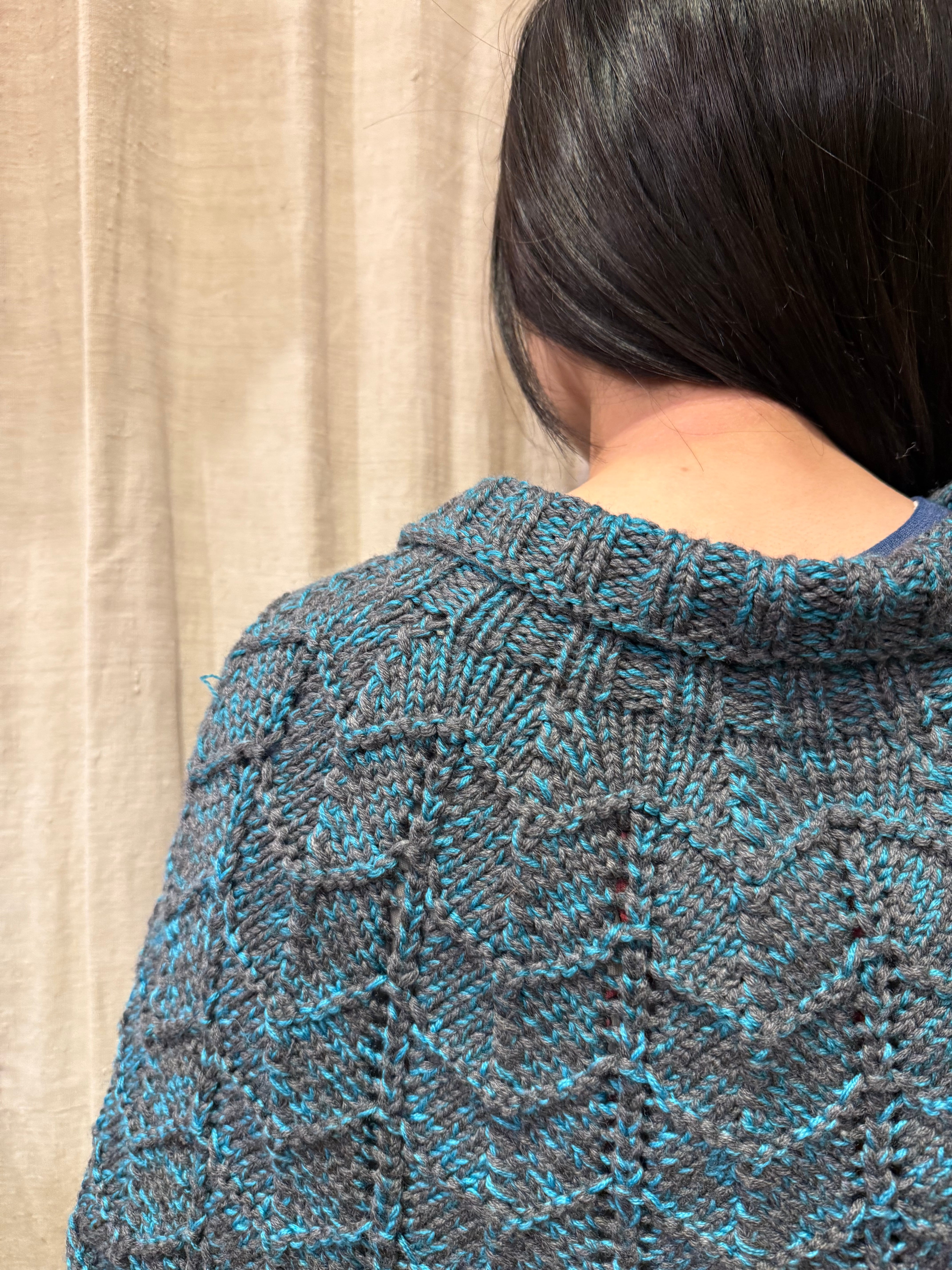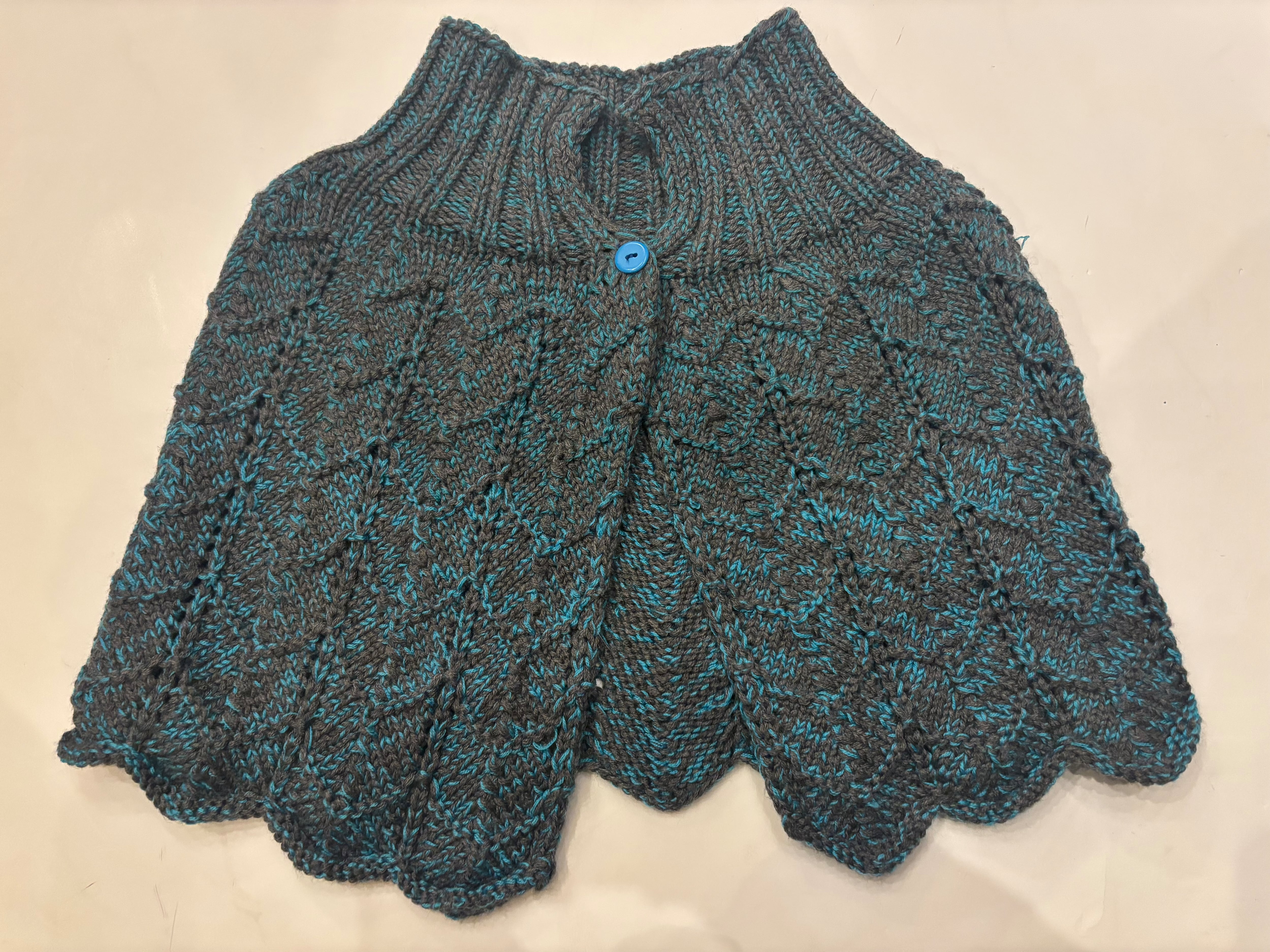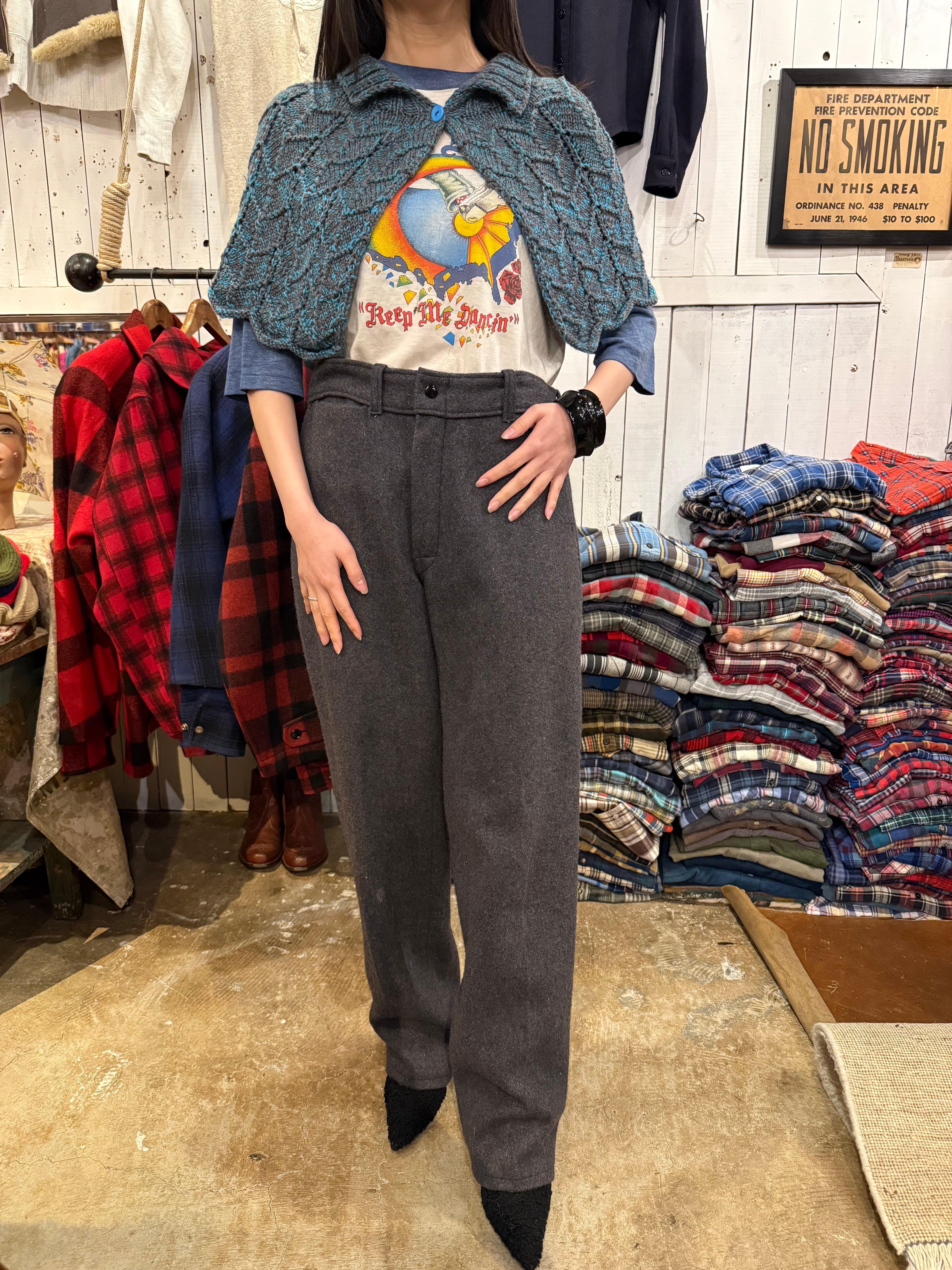 ブルーとグレーの配色が可愛らしいニットケープ。ハンドメイドのような程よくチープな見た目が可愛らしく見えます。ボタンを一点留めの仕様ですがピンやブローチで留めても◎スカートとしても使えるのでレイヤードが色々楽しめそうです。