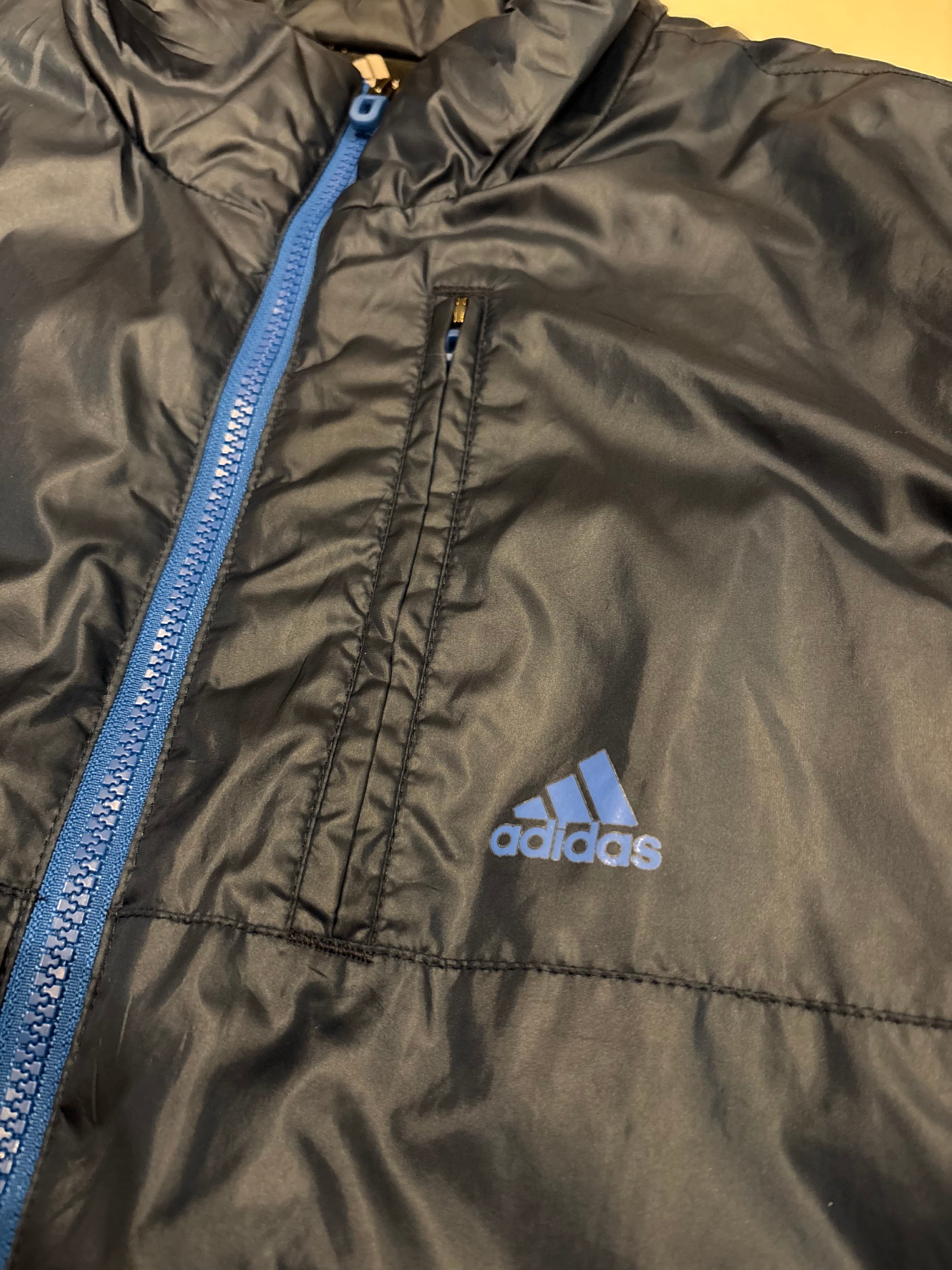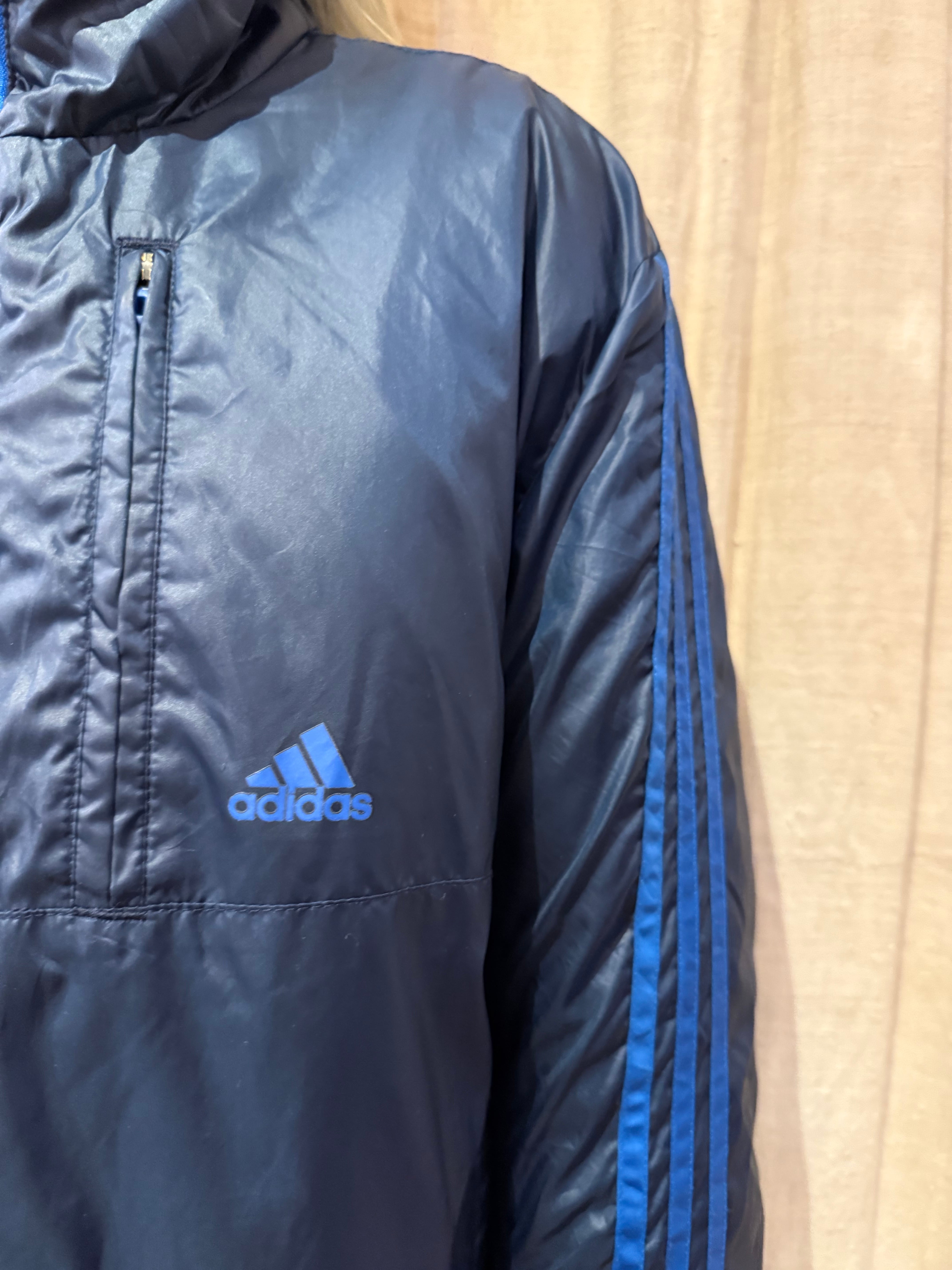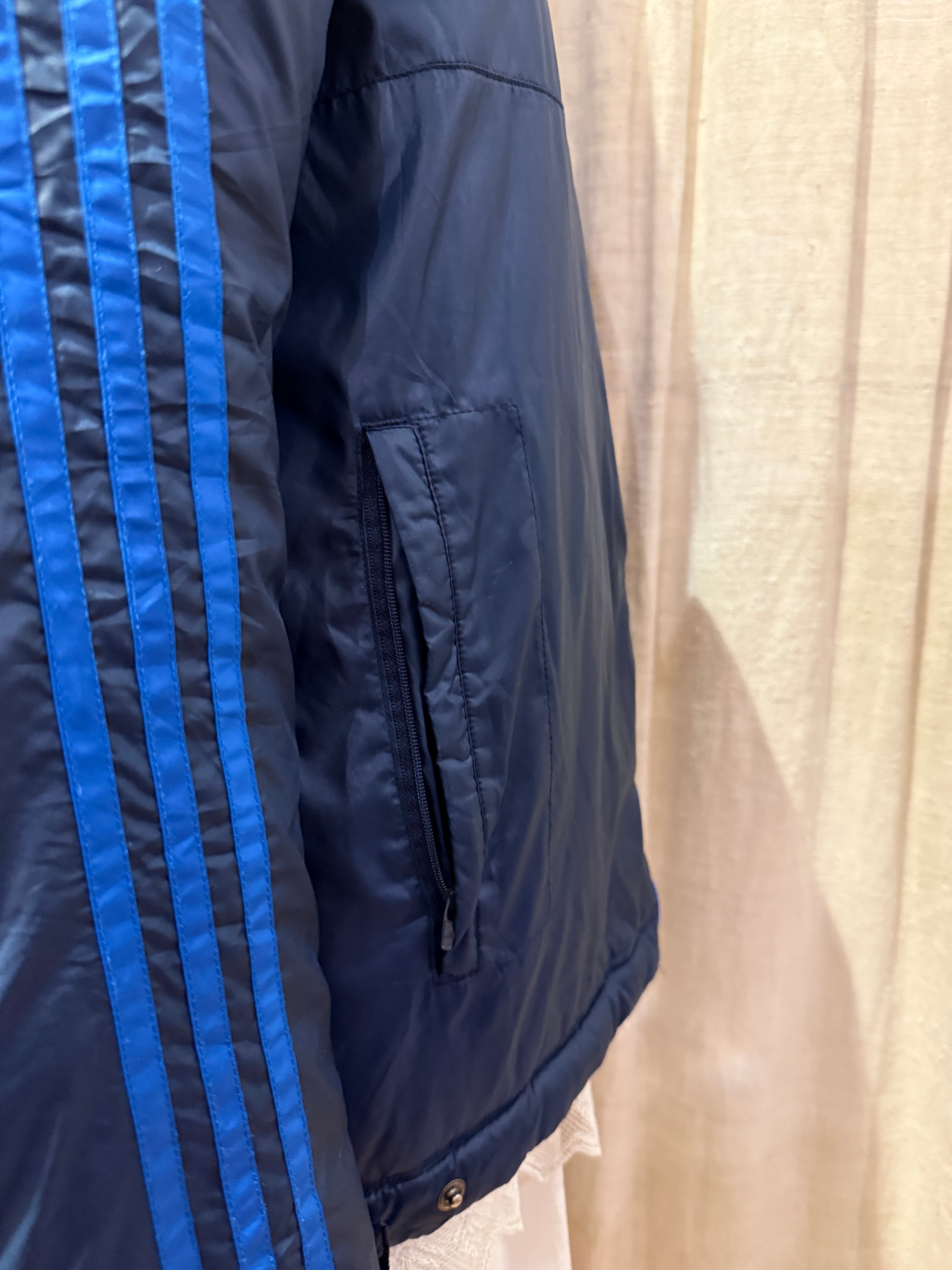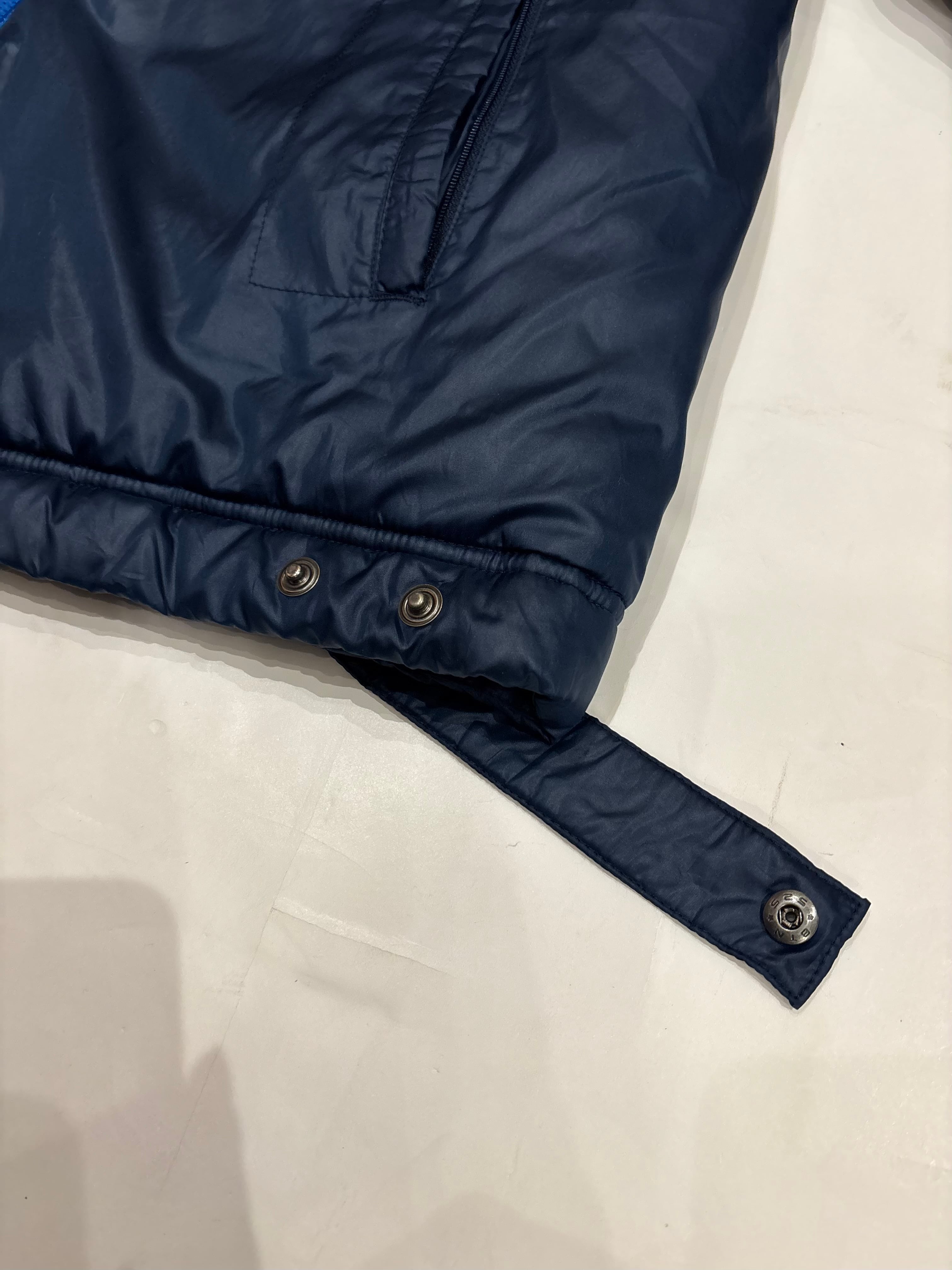 中綿の入った温かな着心地のパデッドジャケット。大きすぎないサイズ感で、ダブルジップになっているのもポイントです。ネイビー&ブルーの配色でコーディネートにも組み込みやすく、気軽に着れるのでオススメです。