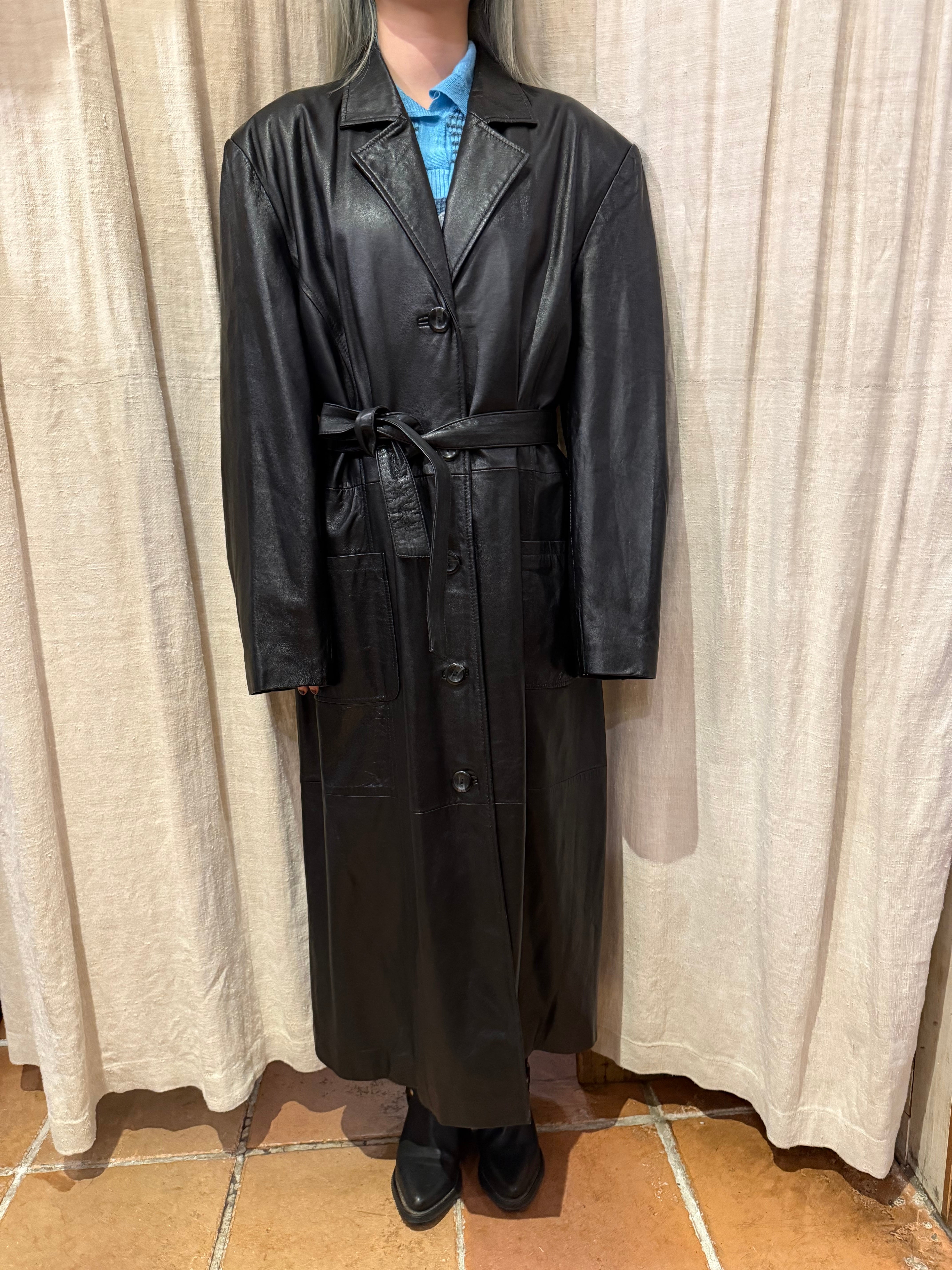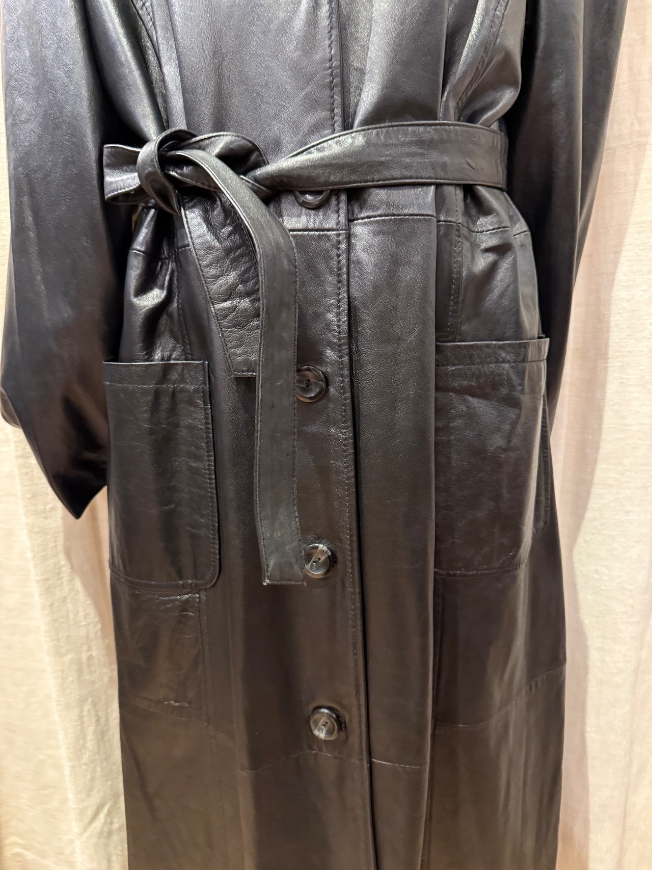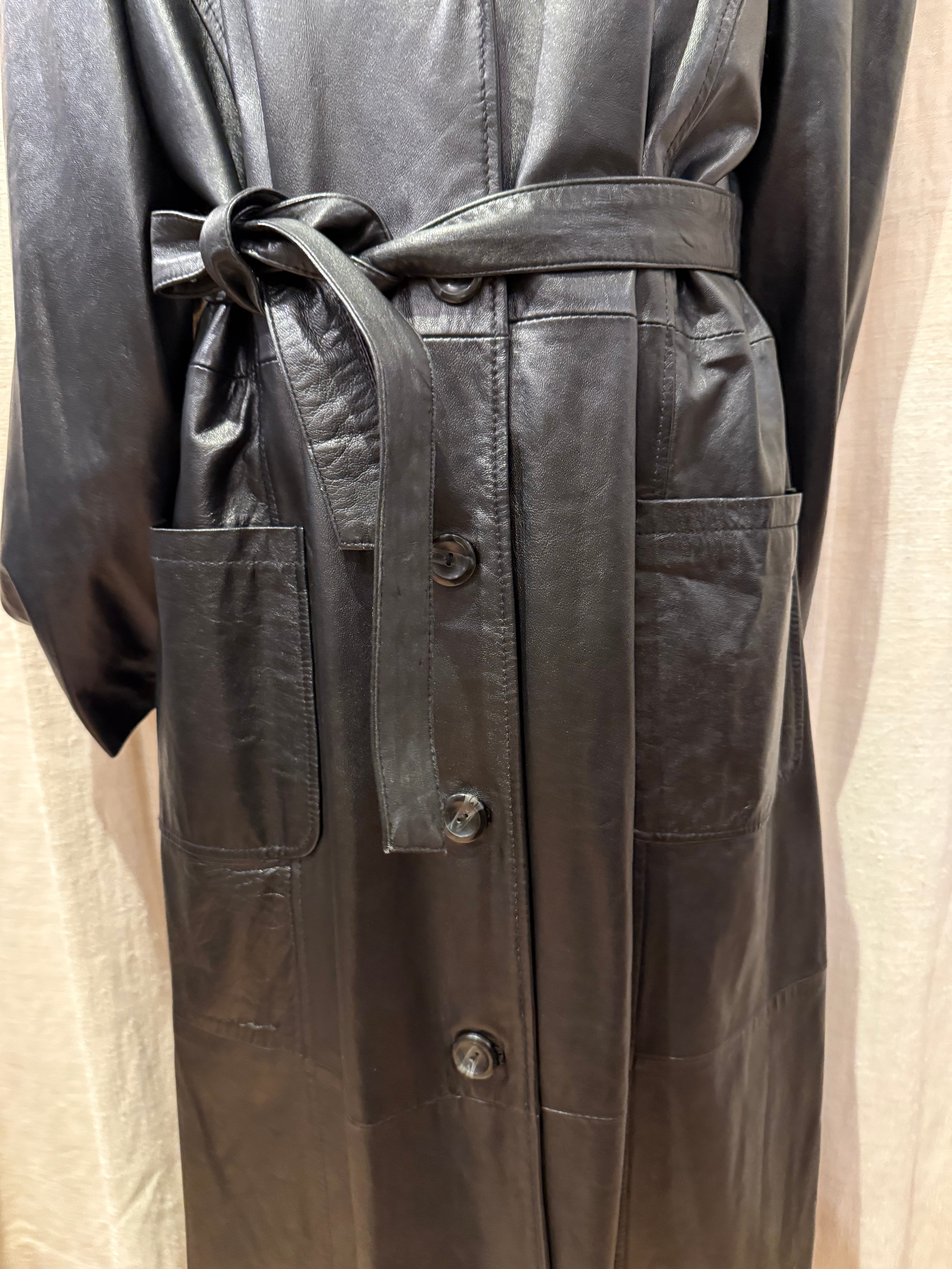 レザーのロングコートは存在感があり、目を惹きます。本革で柔らかい質感なので、サラッと羽織って頂けます。ベルトでウエストマークでき、シルエットのメリハリがつきます。ウエストでギュッとギャザーの寄ったレザーも自然でとても綺麗です。