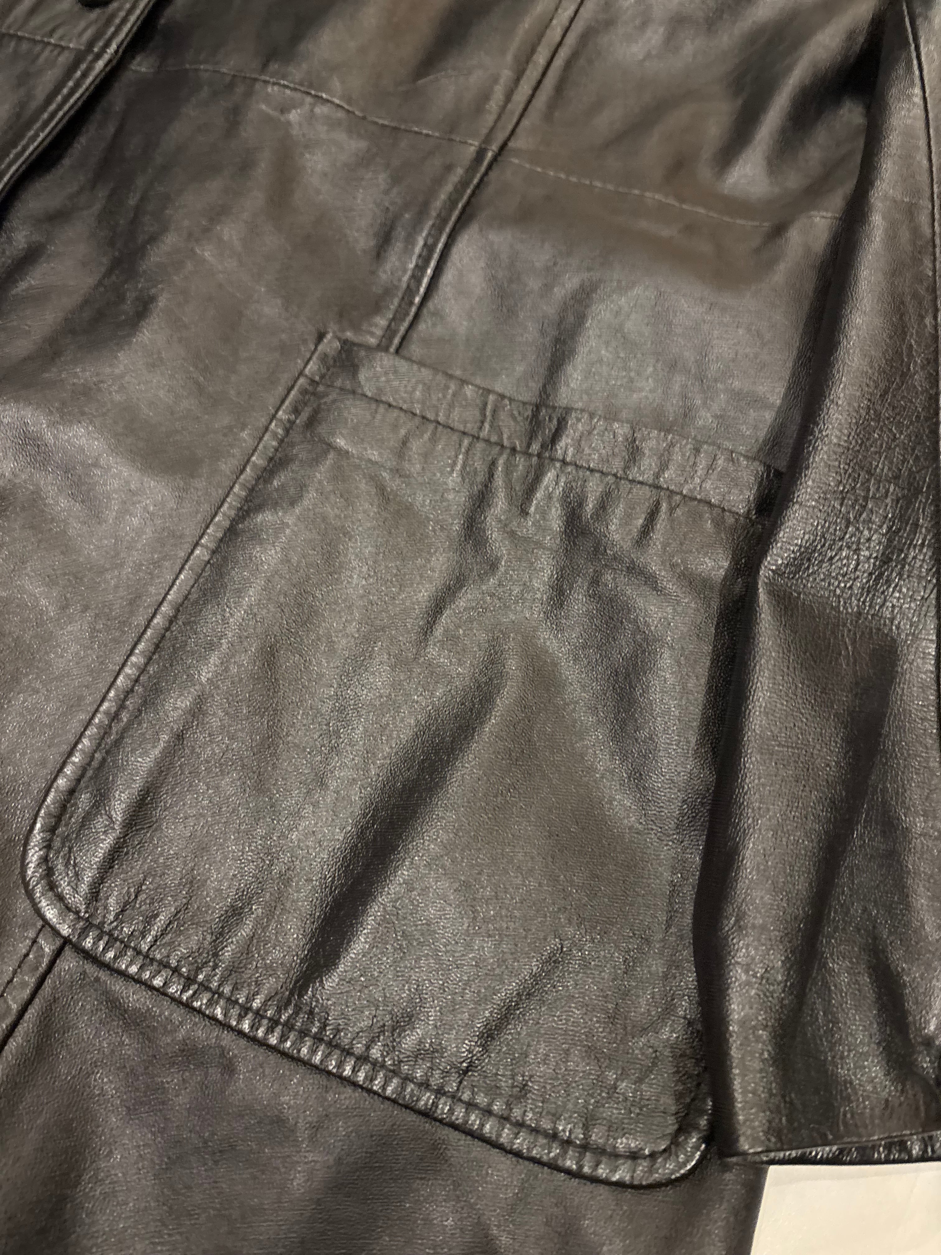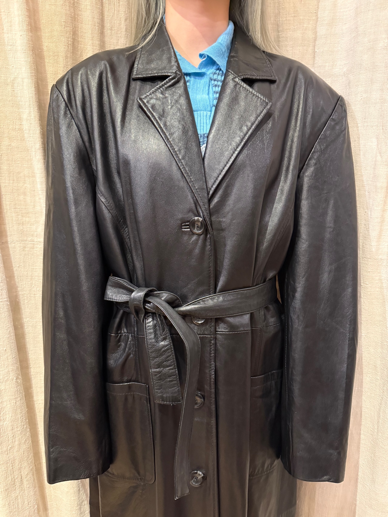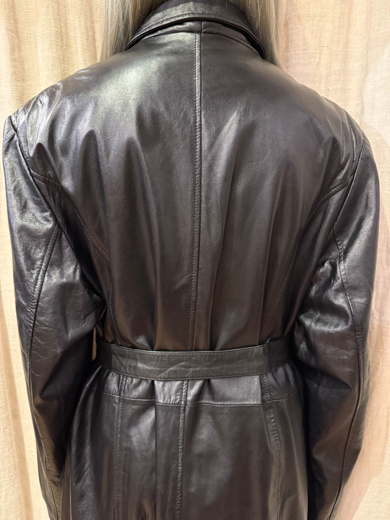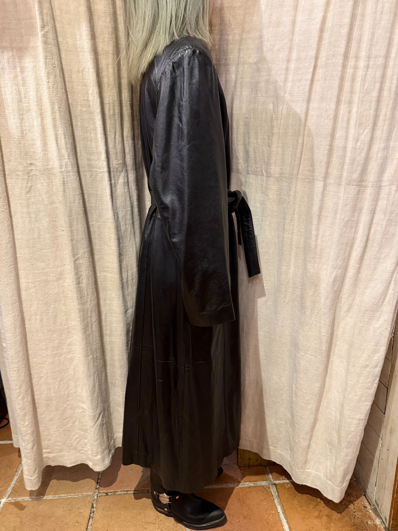 レザーのロングコートは存在感があり、目を惹きます。本革で柔らかい質感なので、サラッと羽織って頂けます。ベルトでウエストマークでき、シルエットのメリハリがつきます。ウエストでギュッとギャザーの寄ったレザーも自然でとても綺麗です。