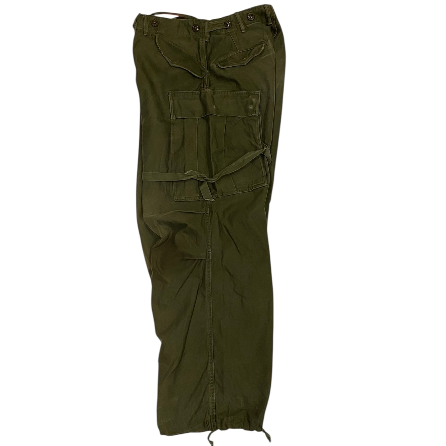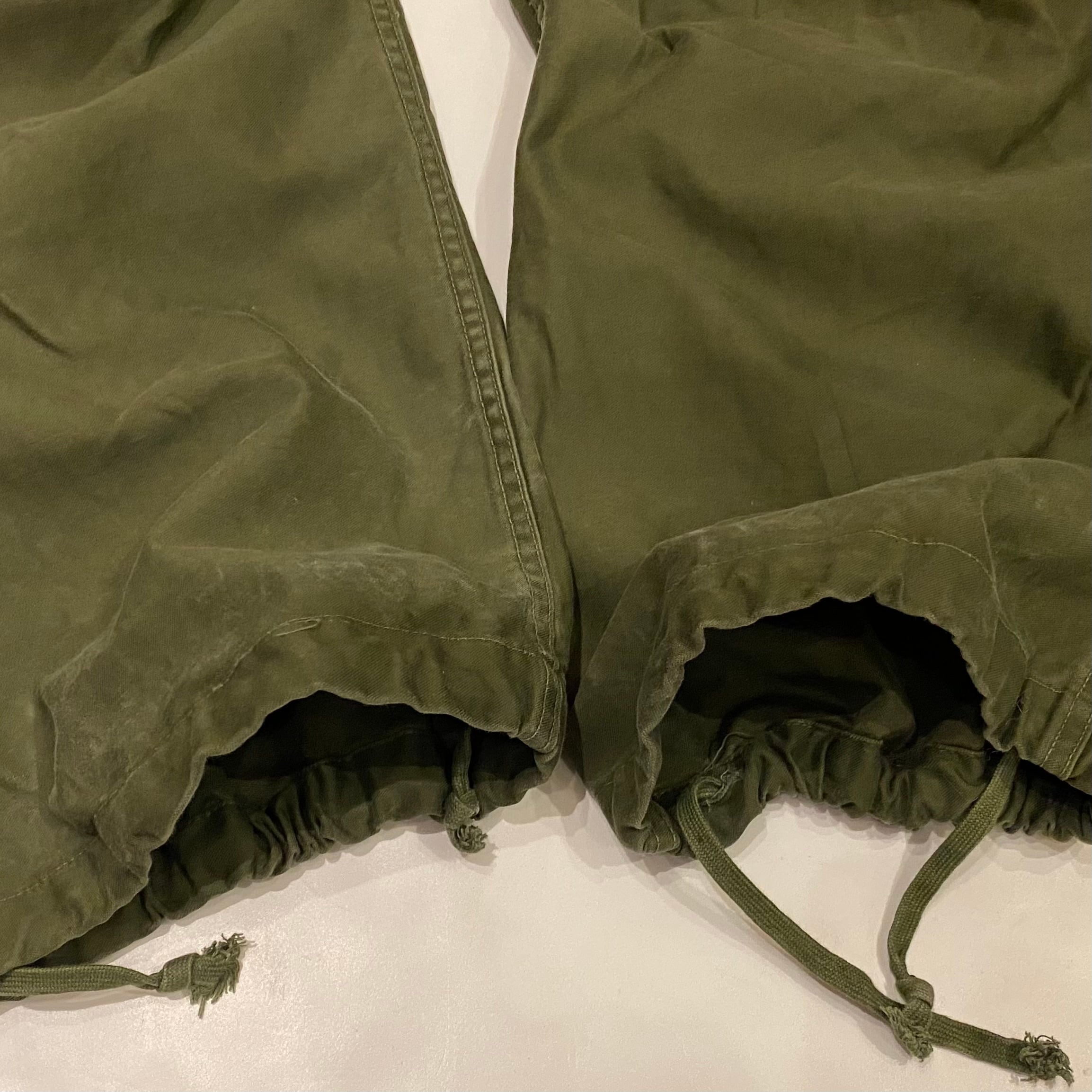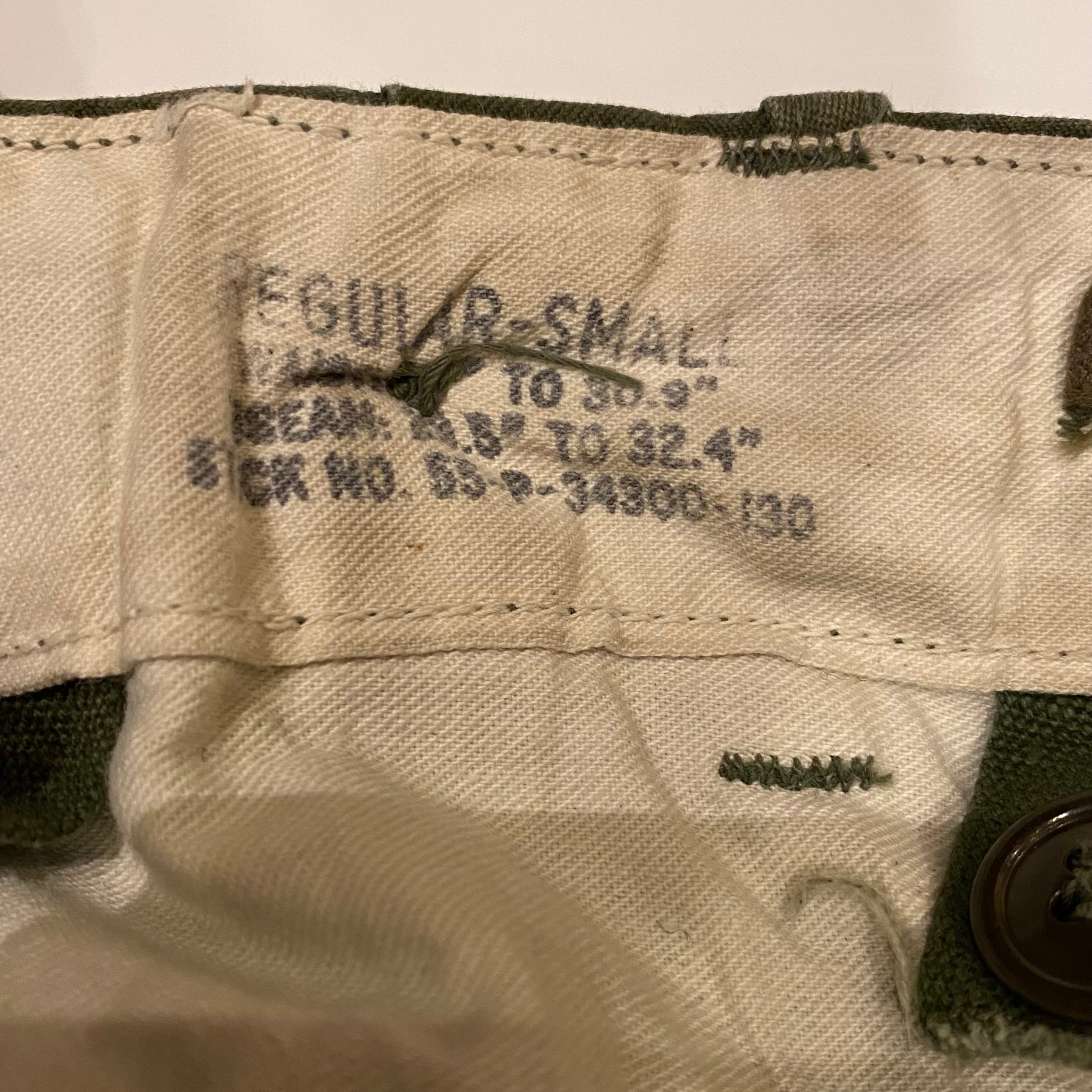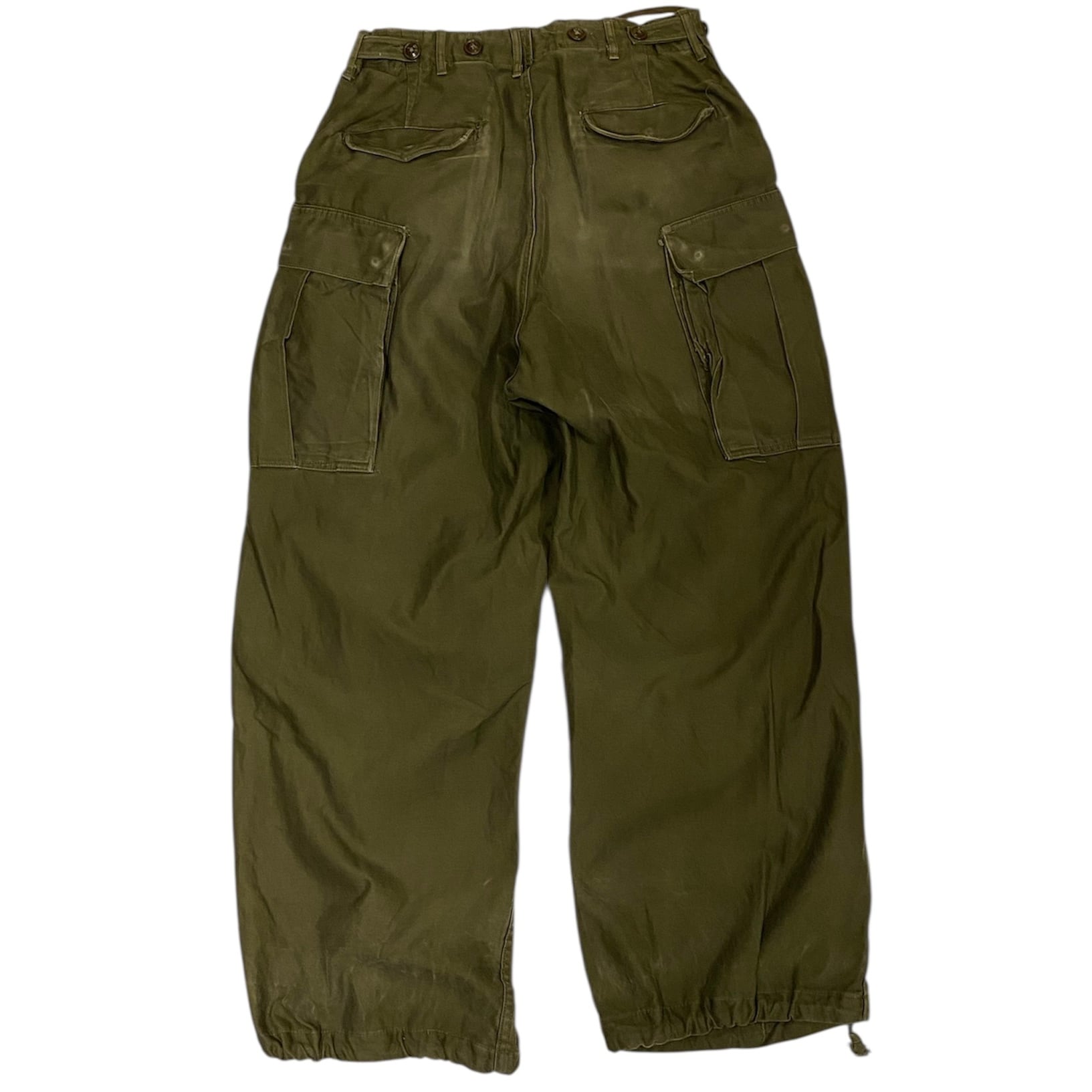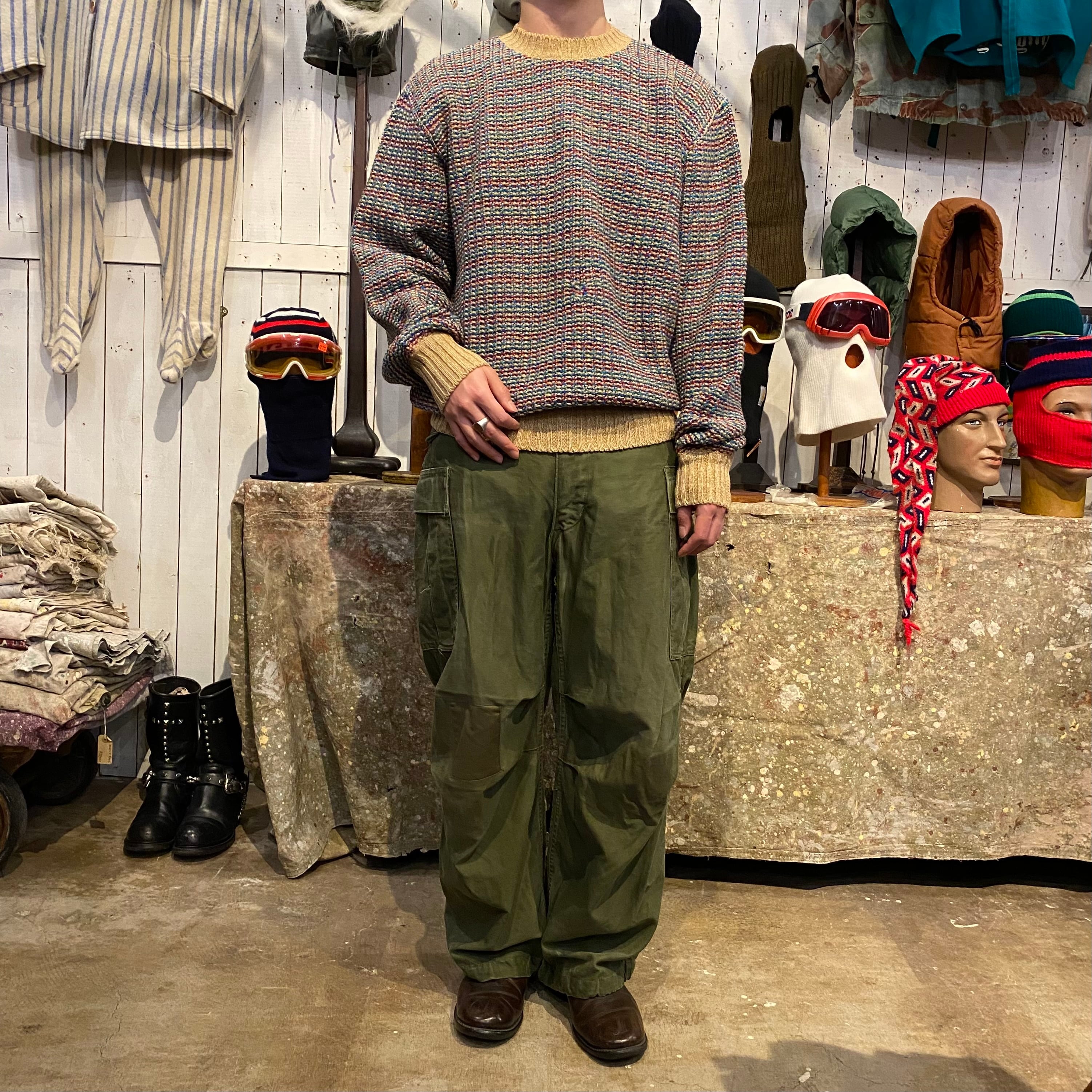1950年代のアメリカ軍M-1951、6PK軍パンになります。しっかりとしたコットンの生地感、太いストレートシルエットです。ポケットのミルスペックの印字もまだ読みとれます。所々白っぽくあたりがでていて格好良いですし生地のコンディションはとても良いと思います。良いビンテージの6PK軍パンをお探しの方におすすめです。※右ひざあたり大きく後ろから生地をあててパッチワーク修理しています。