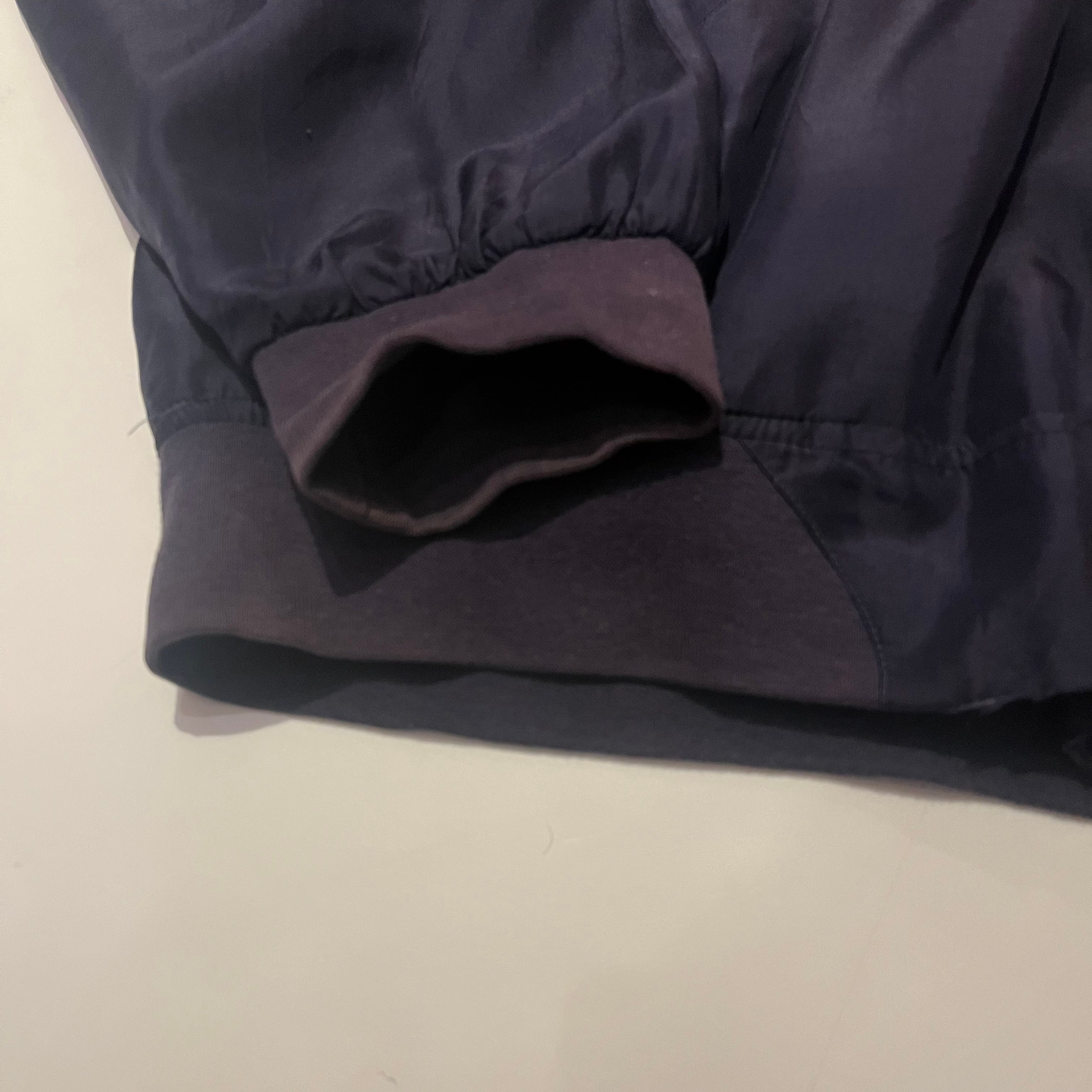 ピュアシルクのフルジップジャケットになります。この時期にレイヤードするにはピッタリなアイテムです。