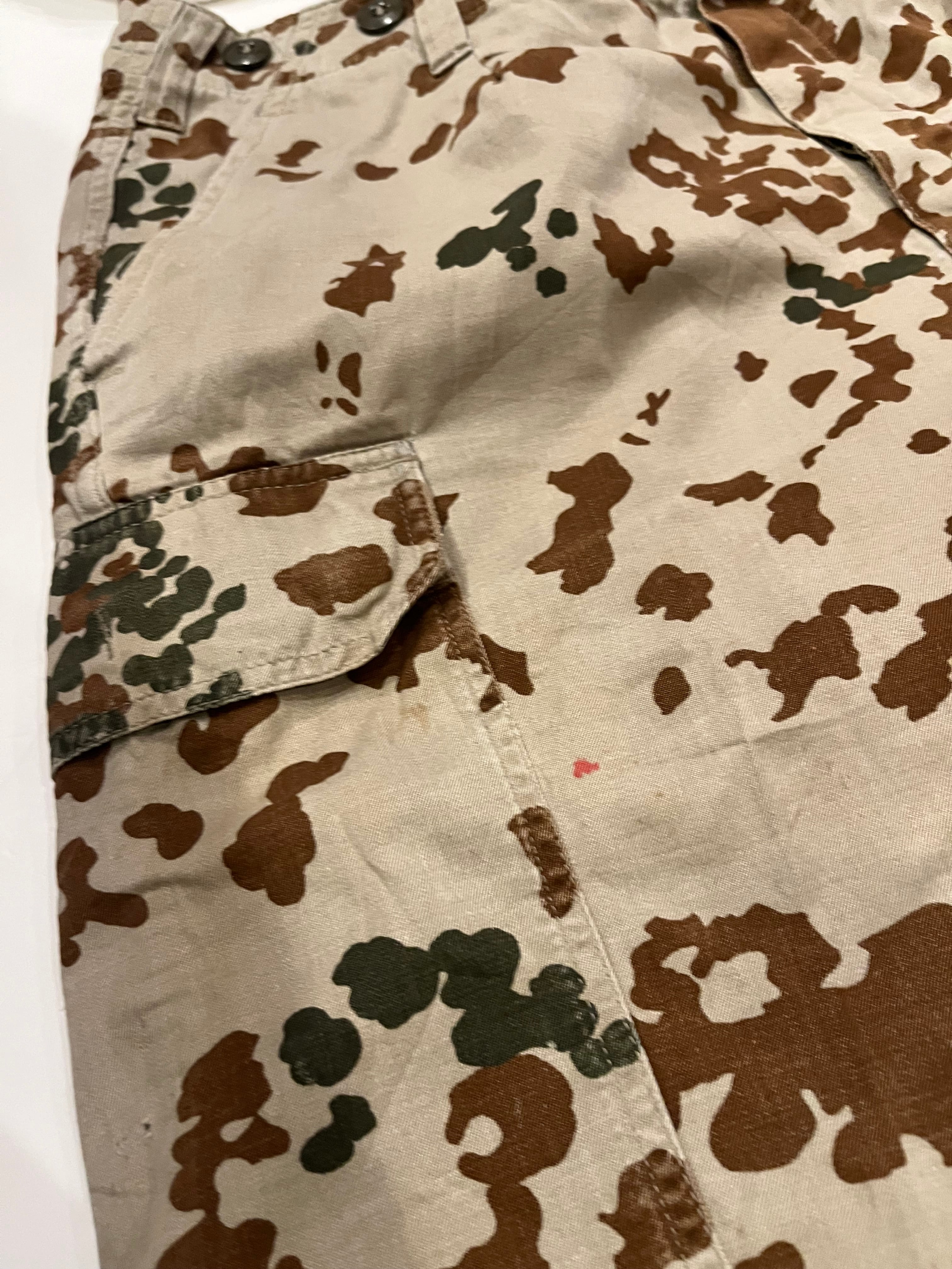 ドイツ軍砂漠地帯用に支給されていたデザートフレクターカモのカーゴパンツになります。不規則な反転模様が特徴的なカモ柄になっています。