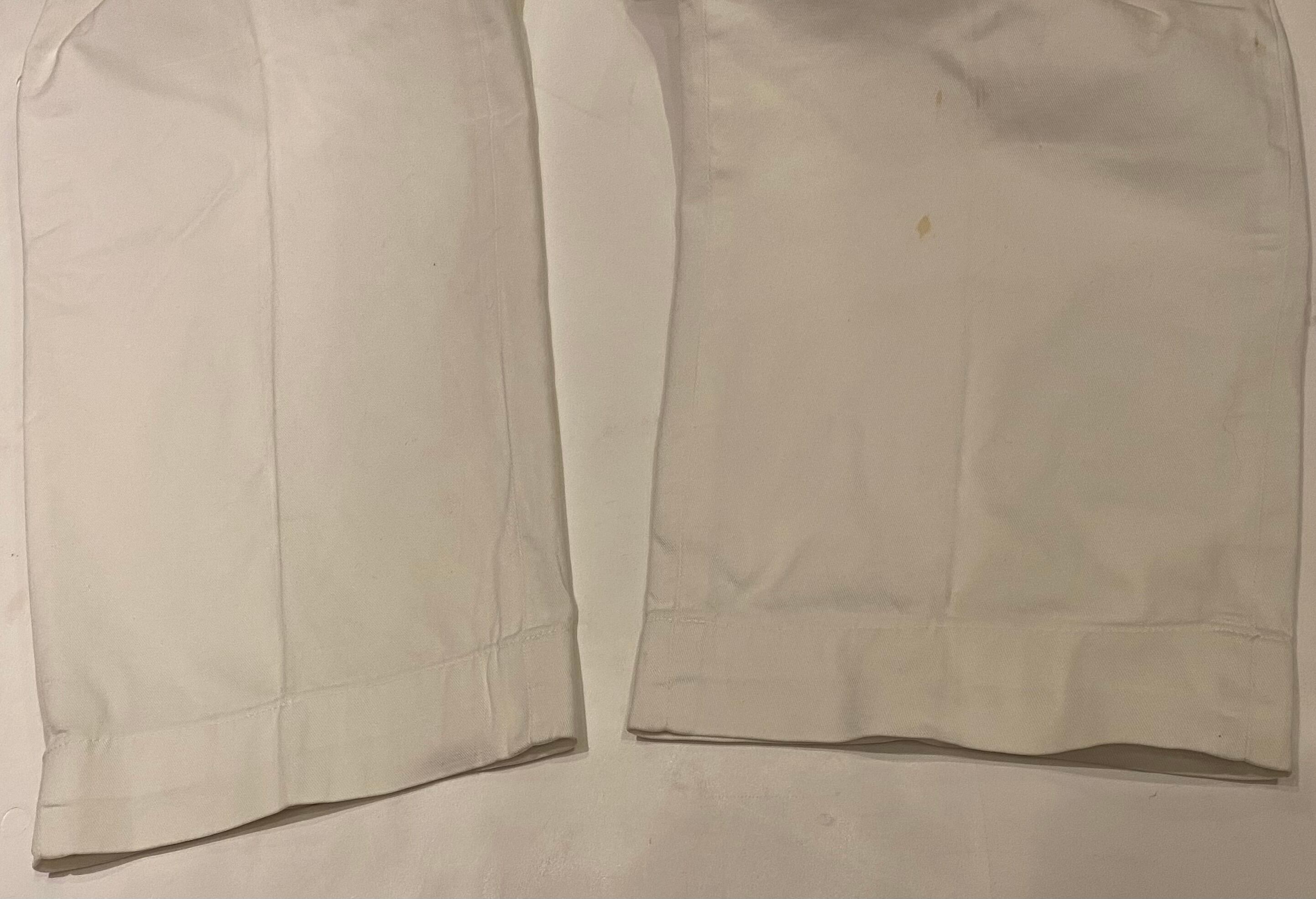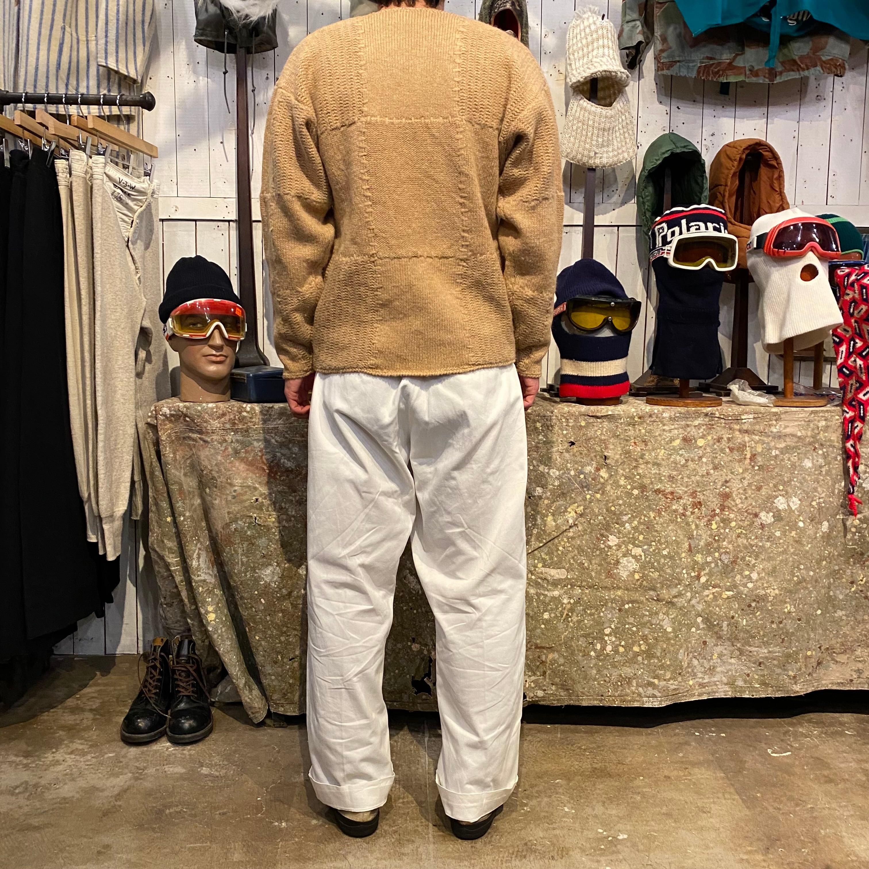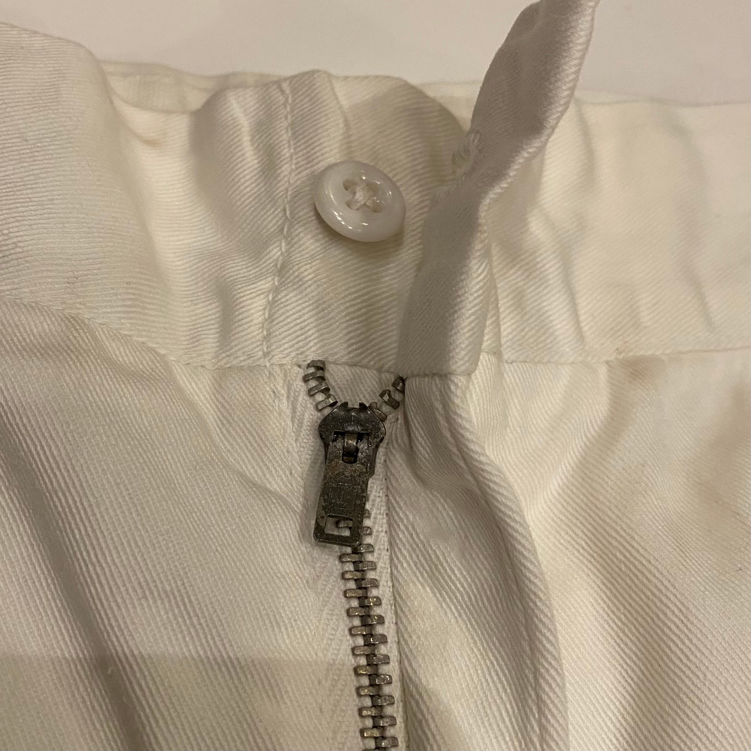 1960年代のアメリカもののワークパンツになります。5ポケットのジッパータイプのチノパンスタイルです。デッドストックをワンウォッシュしたコンディションになります。ストレート〜少しテーパードした太めのシルエットです。白のコットンワークパンツはオールシーズン使えますし、いま時期でしたらインナーにサーマルパンツを合わせて冬のコーディネートに取り入れてみるのも面白いと思います。※フロント左足ひざ下あたりにシミ、汚れあり。その他全体的に細かい薄汚れがあります。