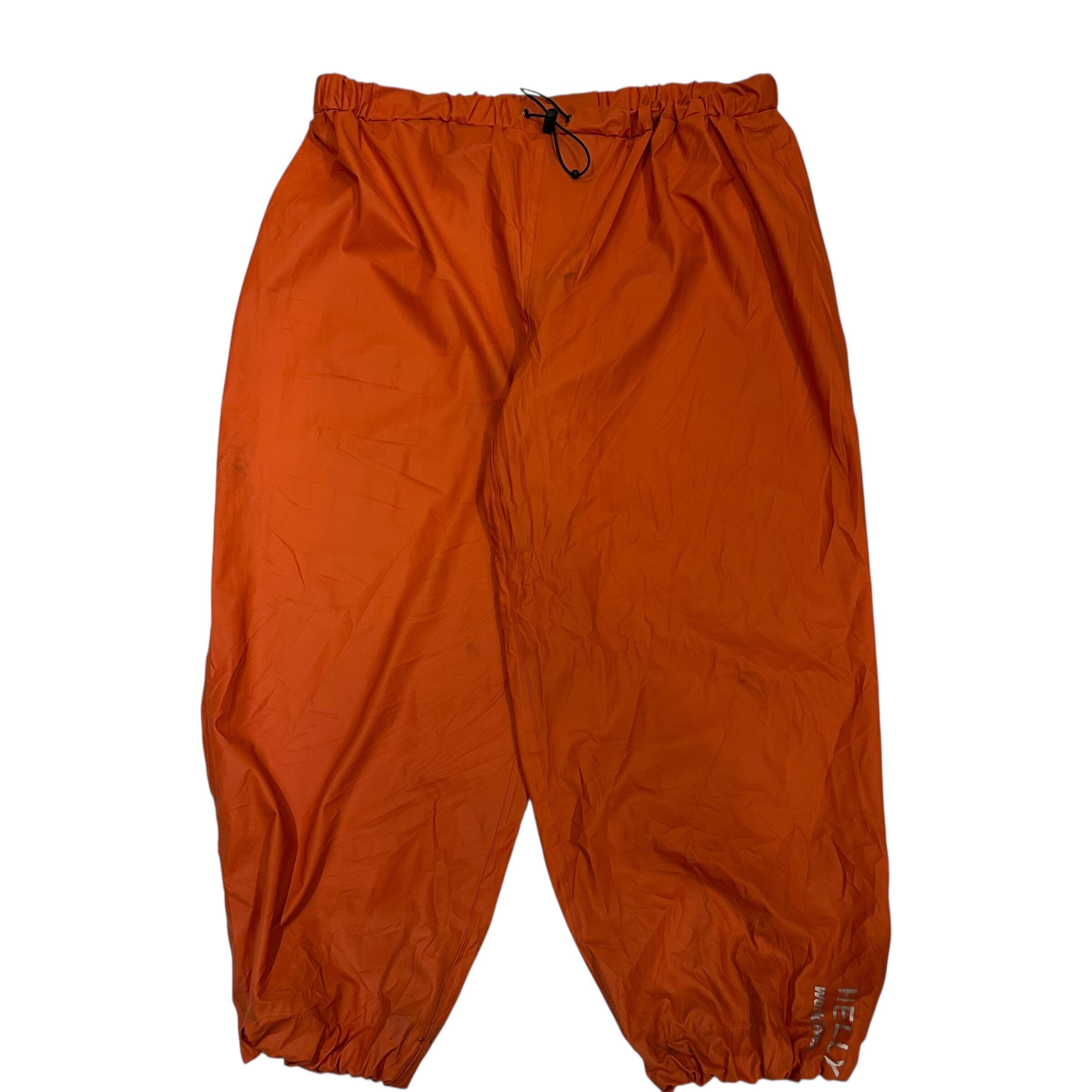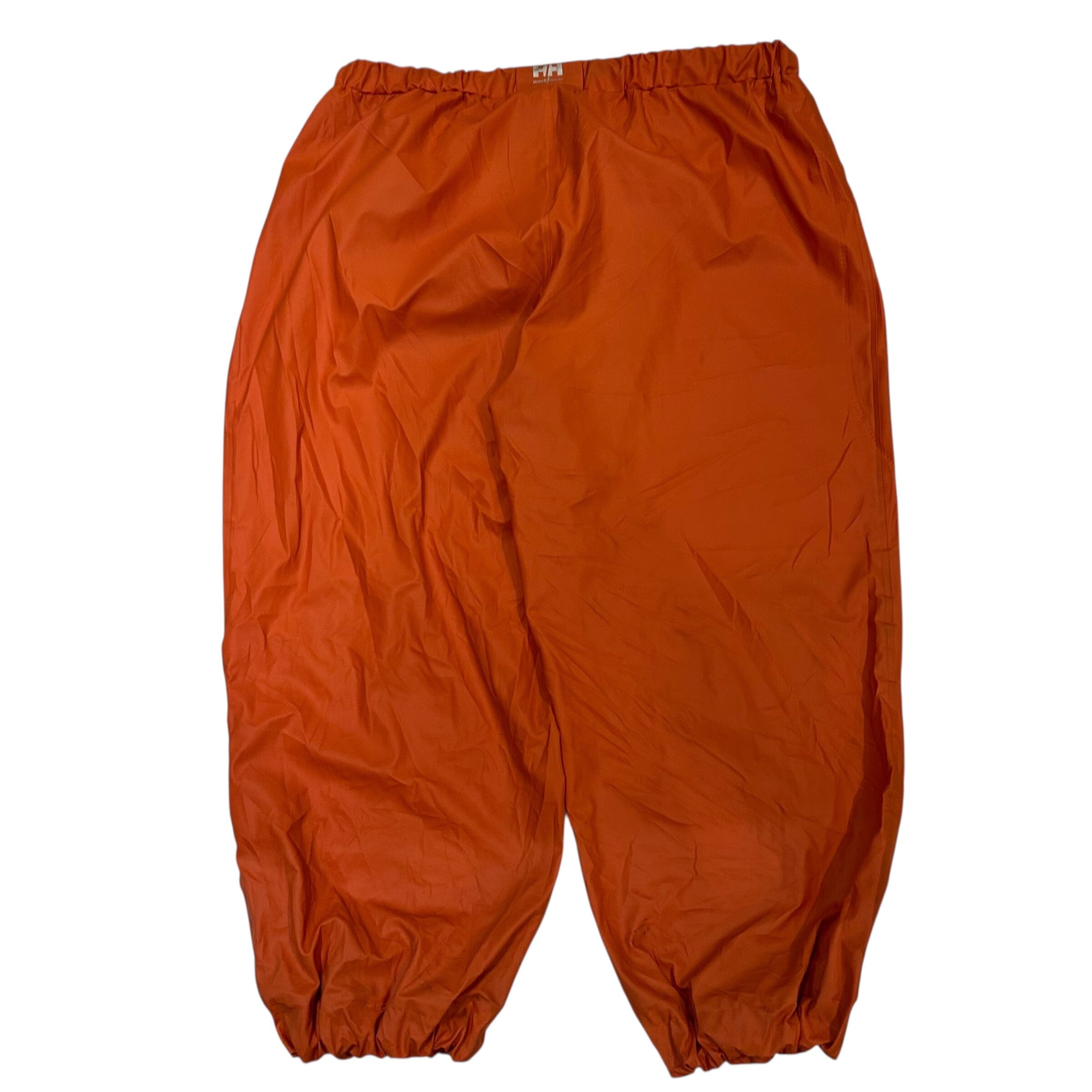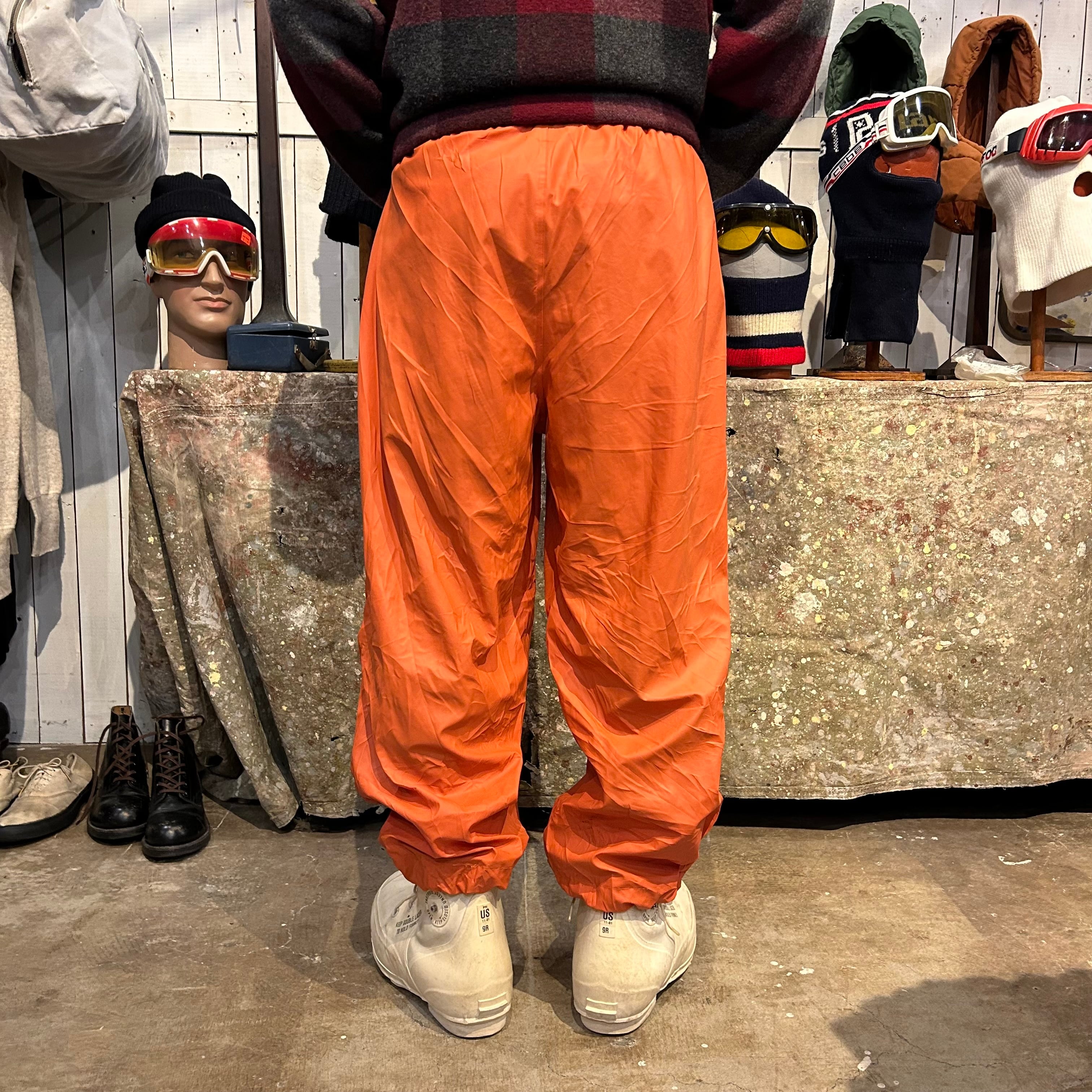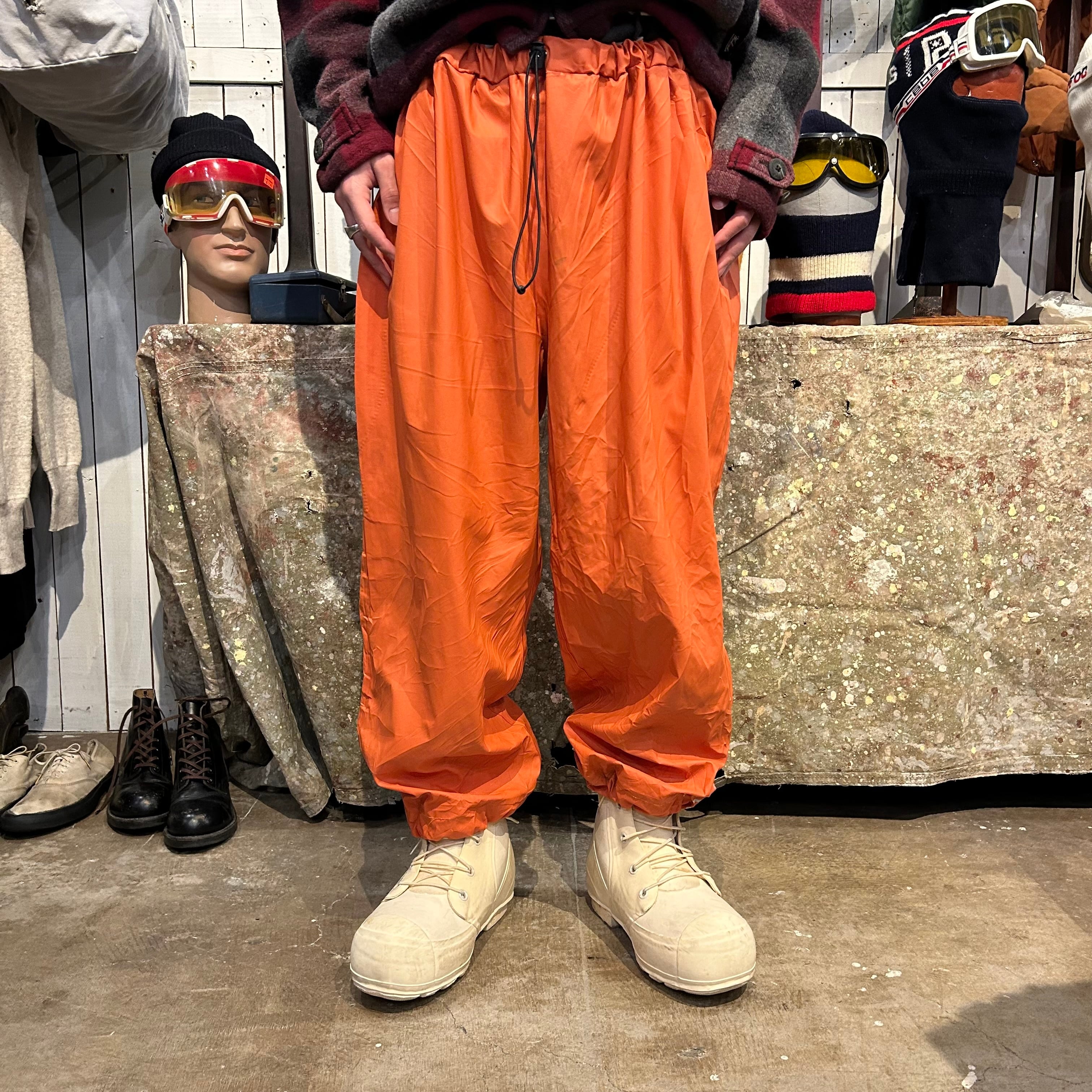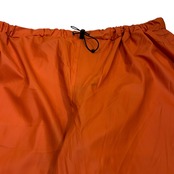 裾はゴムが入っているため、ボンタンのように履くのもひとつの案です。カラーは、オレンジです。サイズはXLですが、ウエストもかなり絞れるので、男性はもちろん、女性の方でも着用可能です。