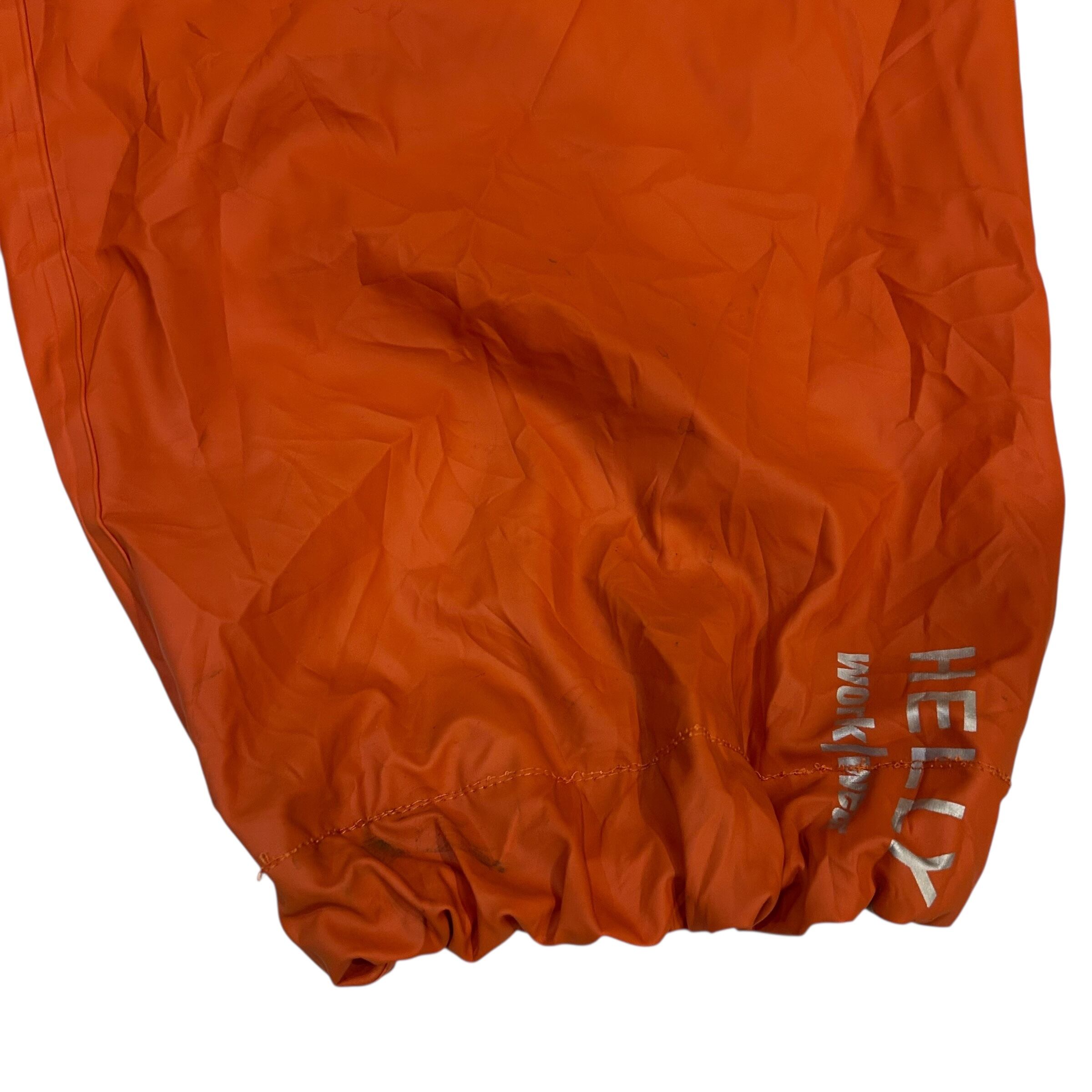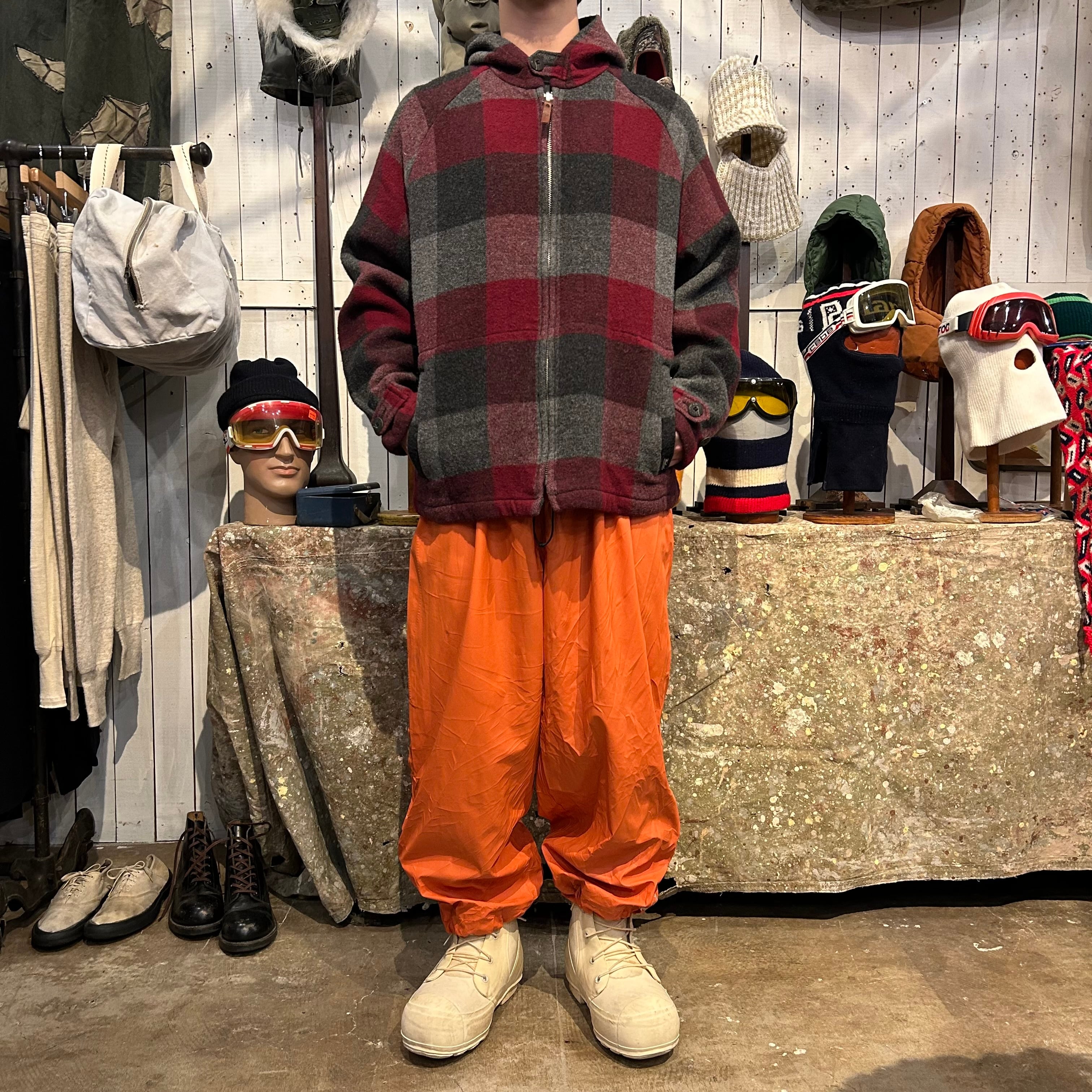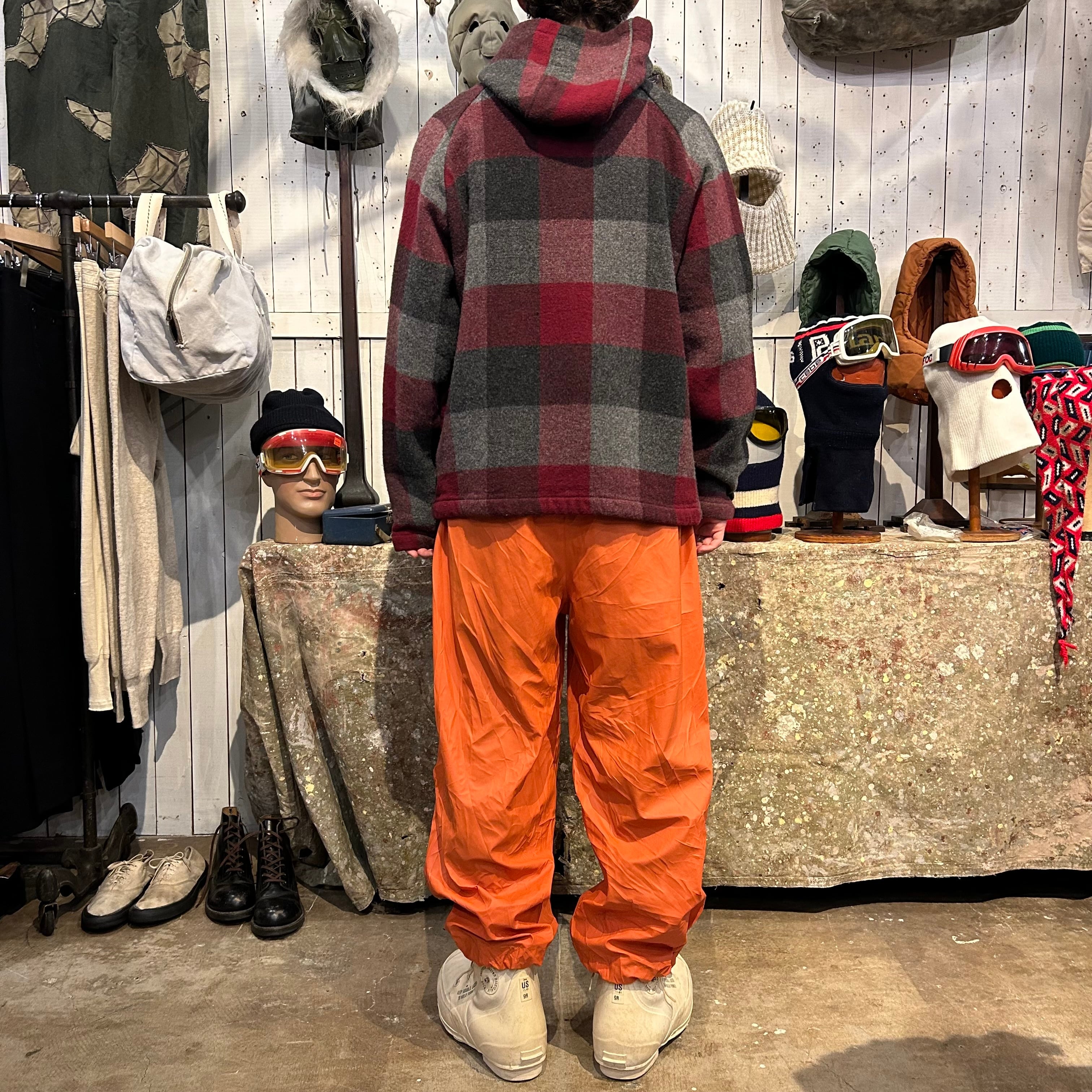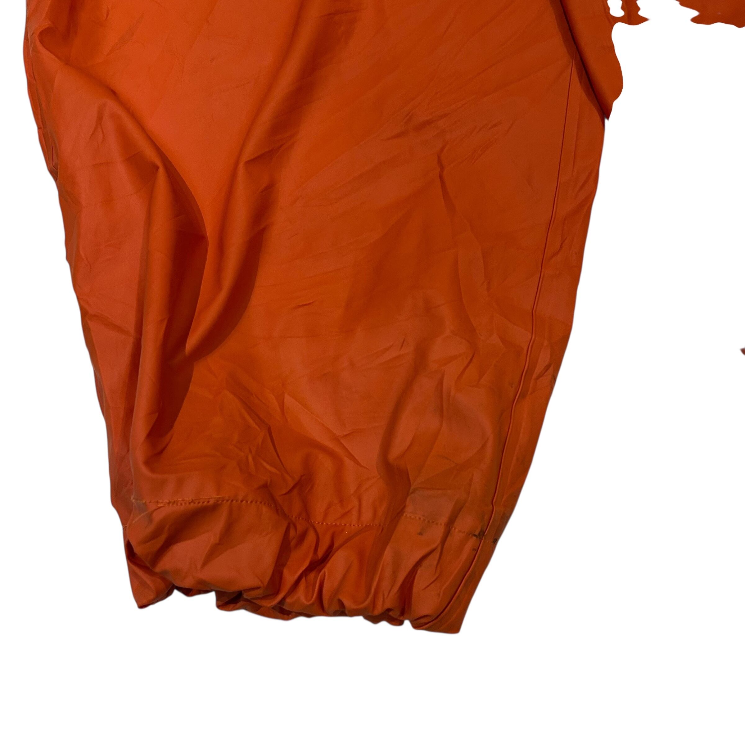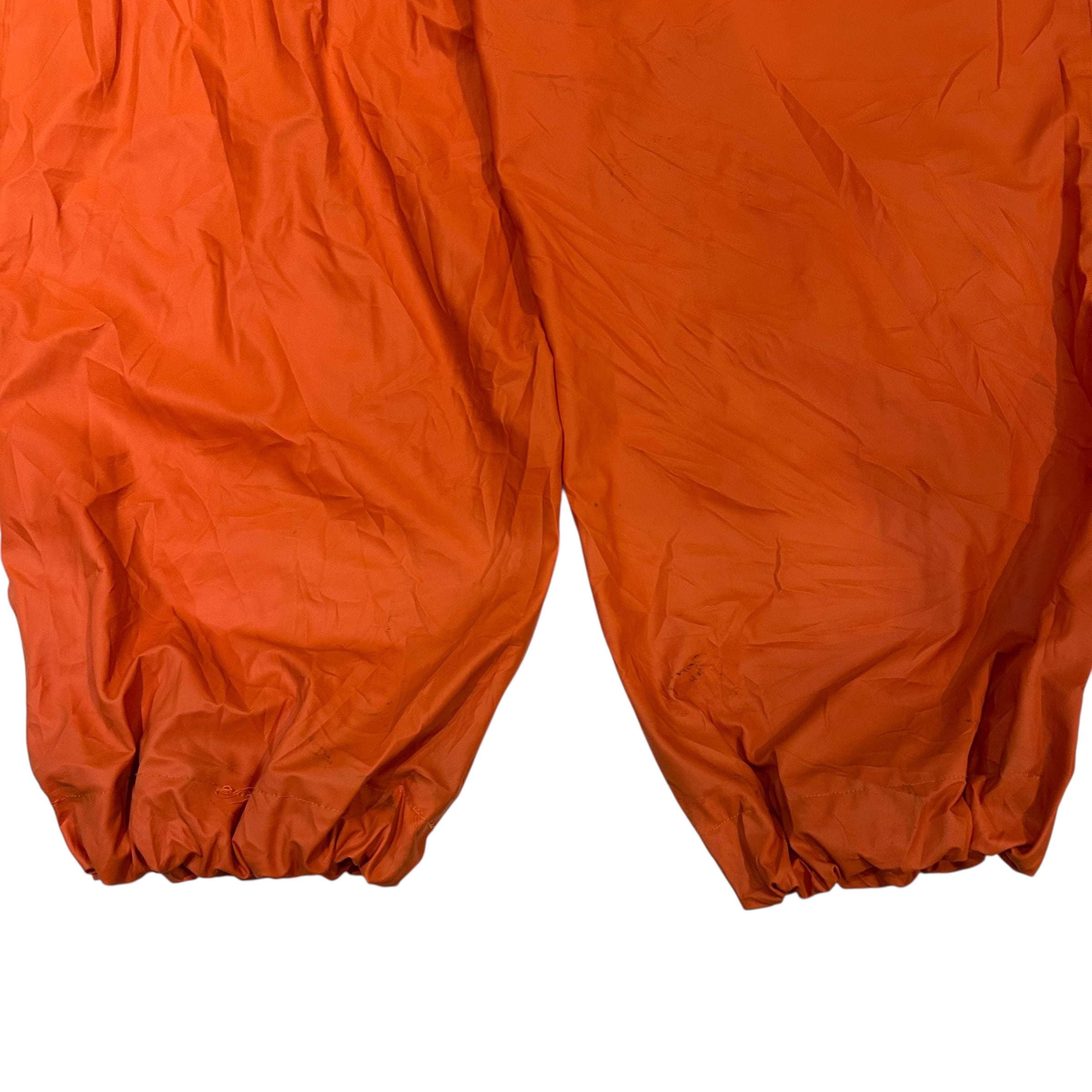 裾はゴムが入っているため、ボンタンのように履くのもひとつの案です。カラーは、オレンジです。サイズはXLですが、ウエストもかなり絞れるので、男性はもちろん、女性の方でも着用可能です。