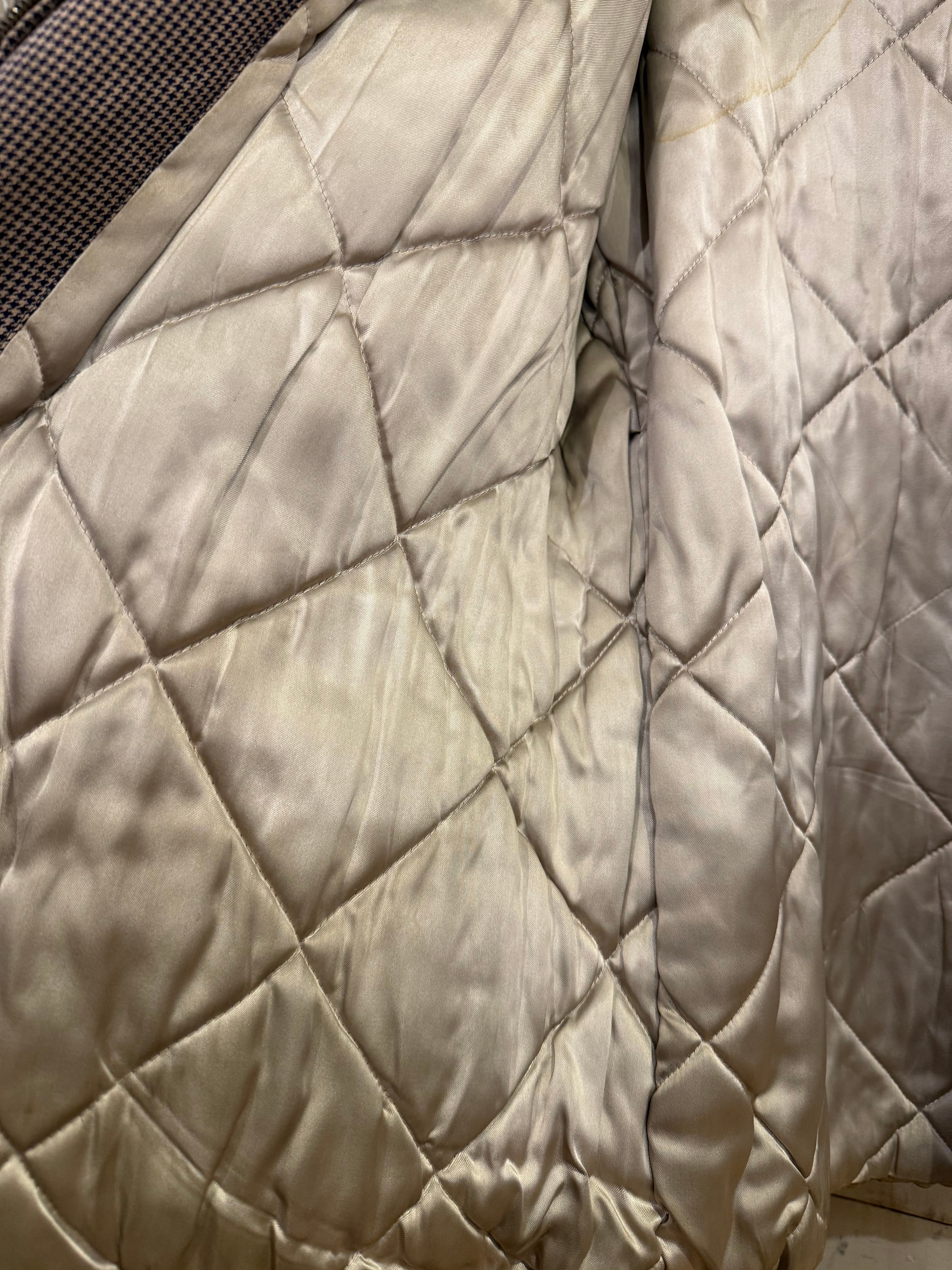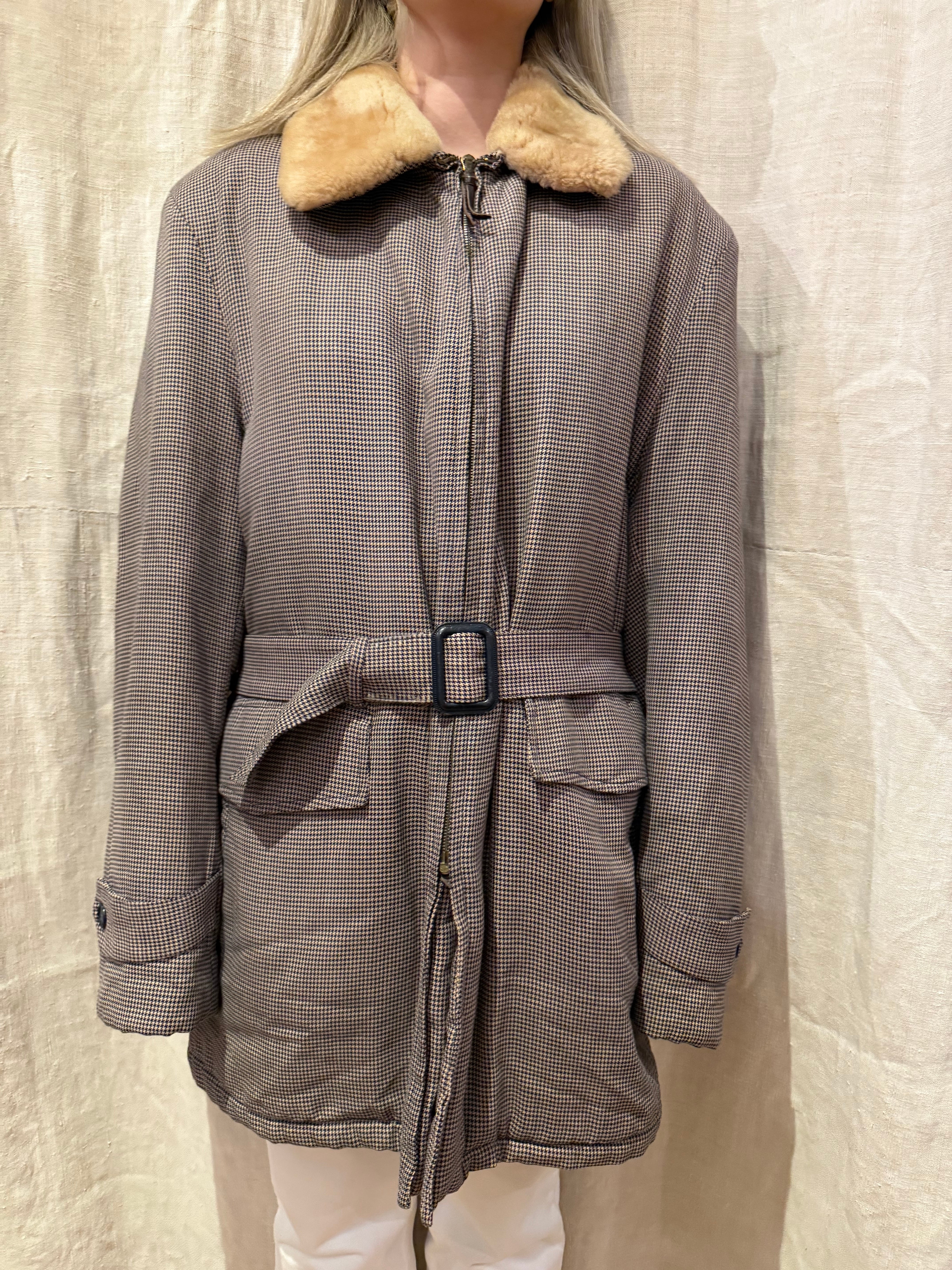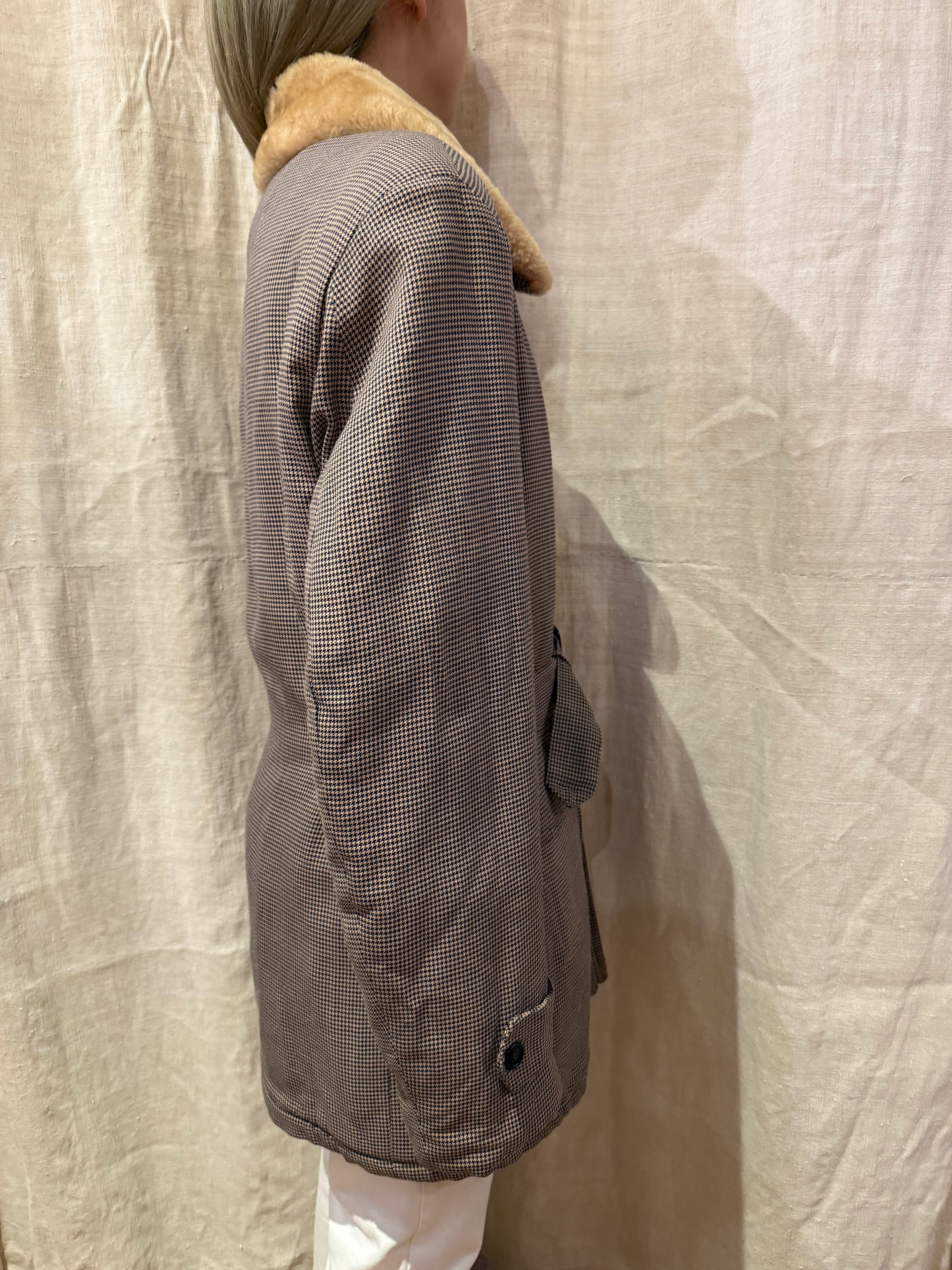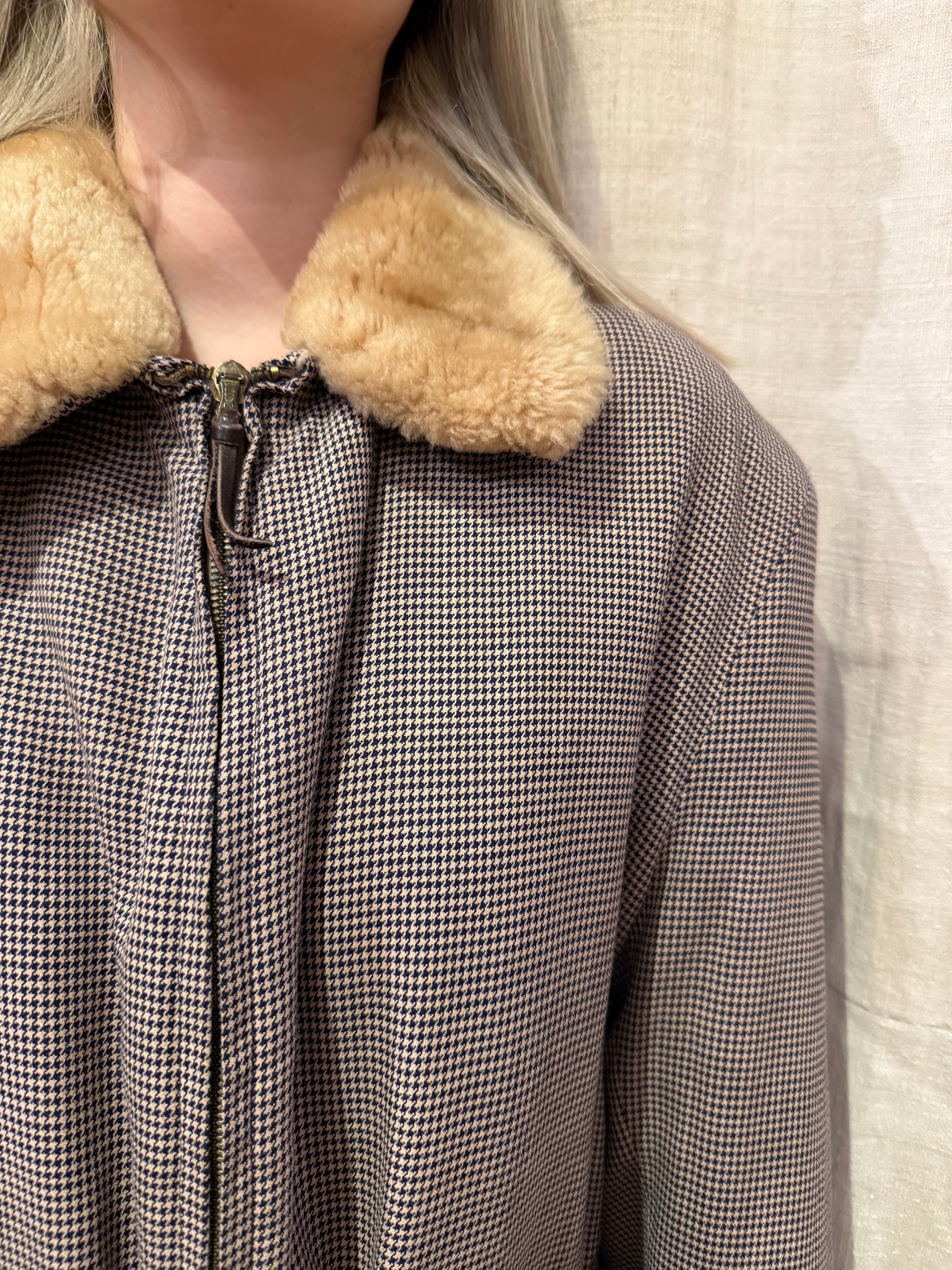 襟がボア素材になった格子柄のヴィンテージジャケットです。