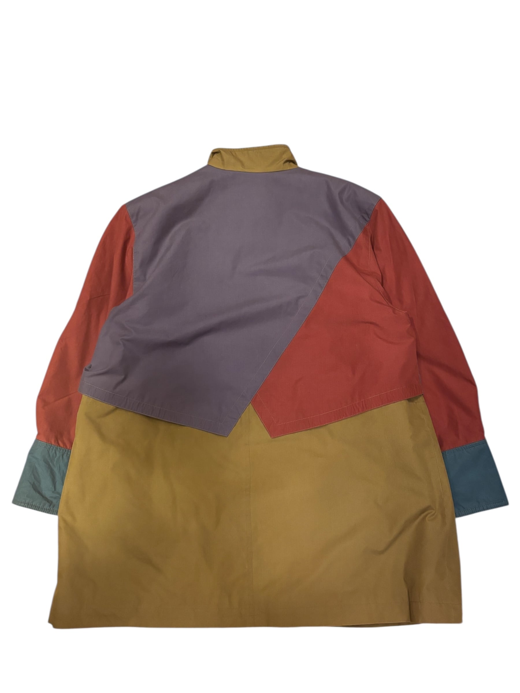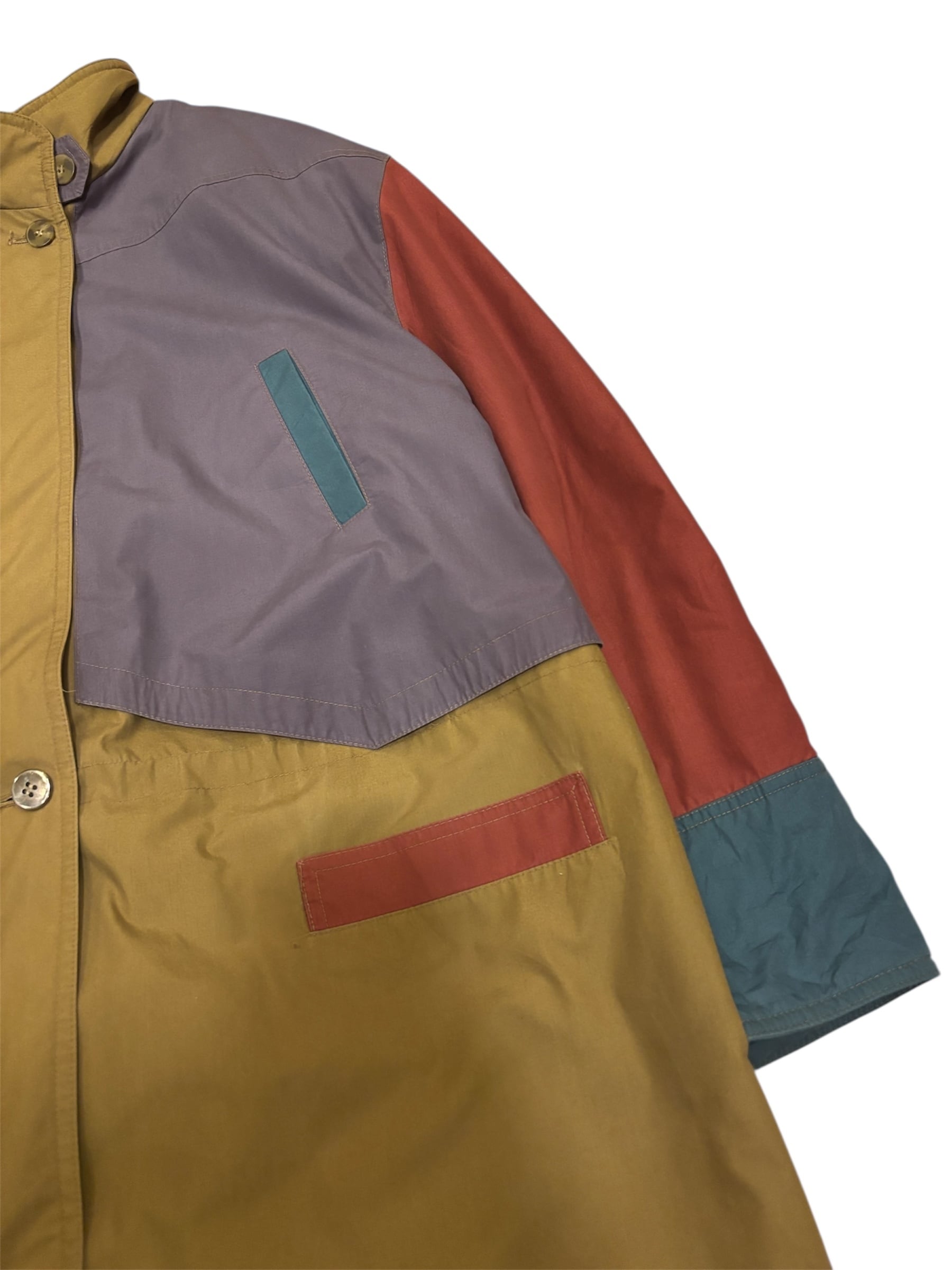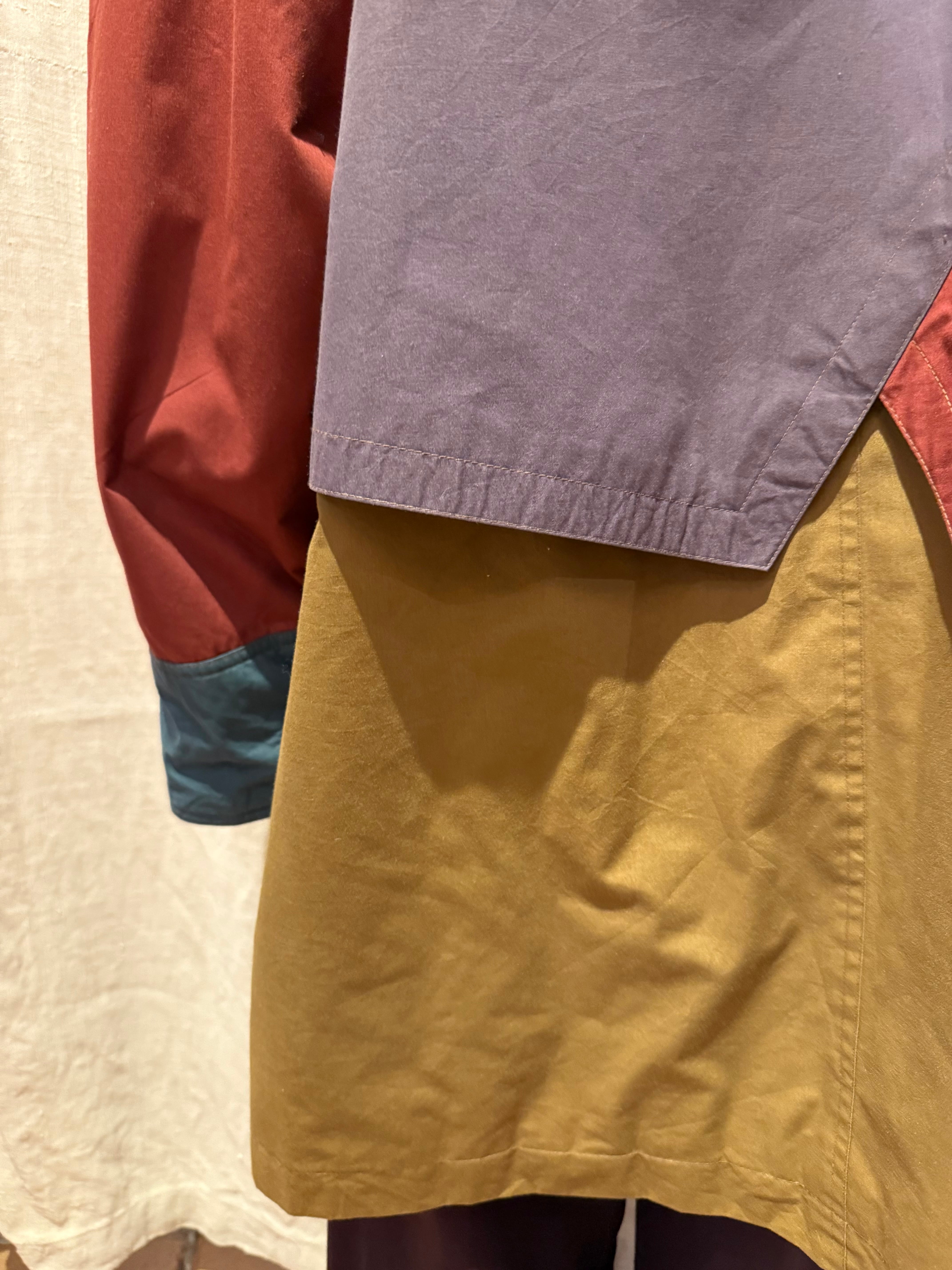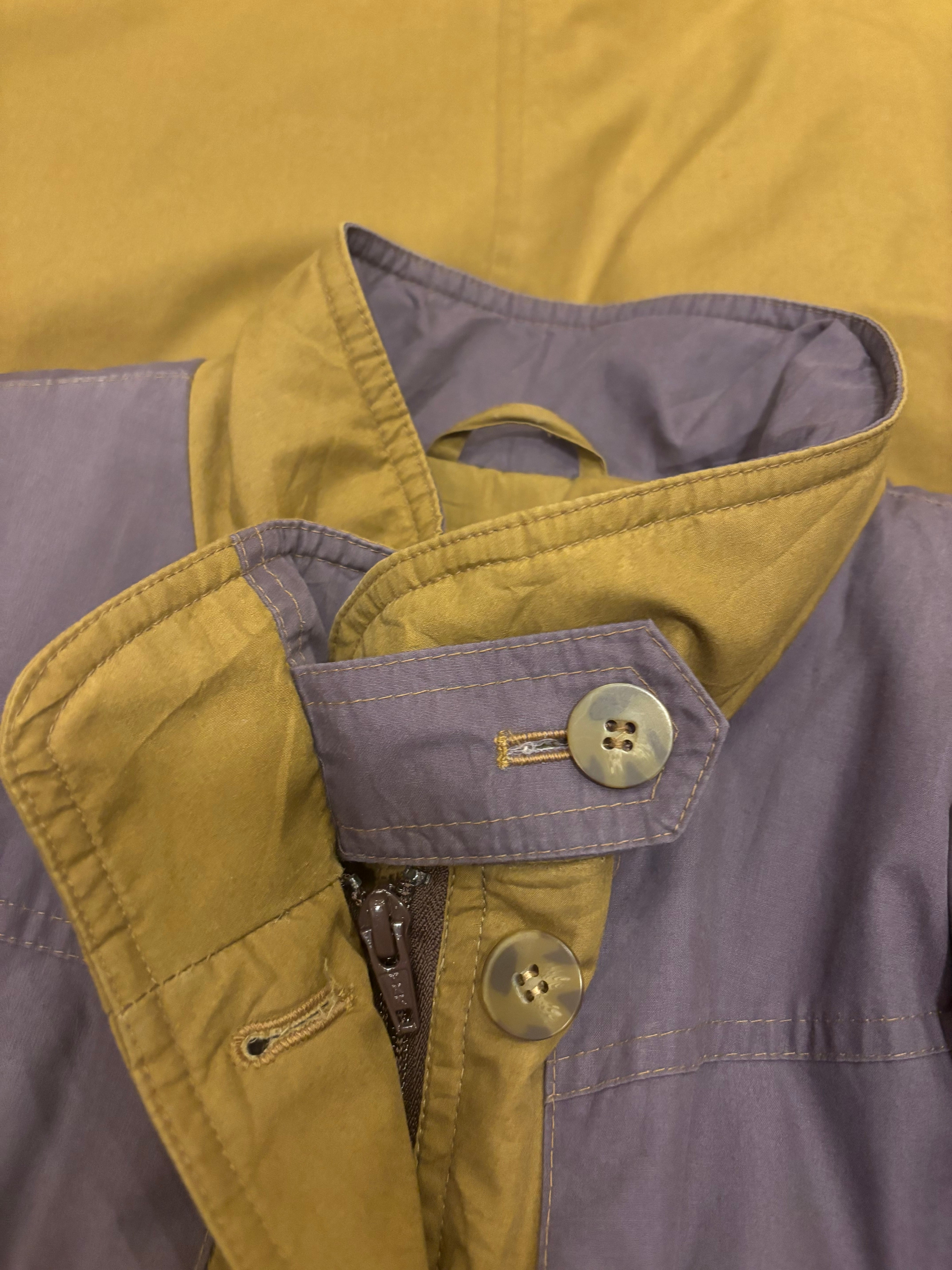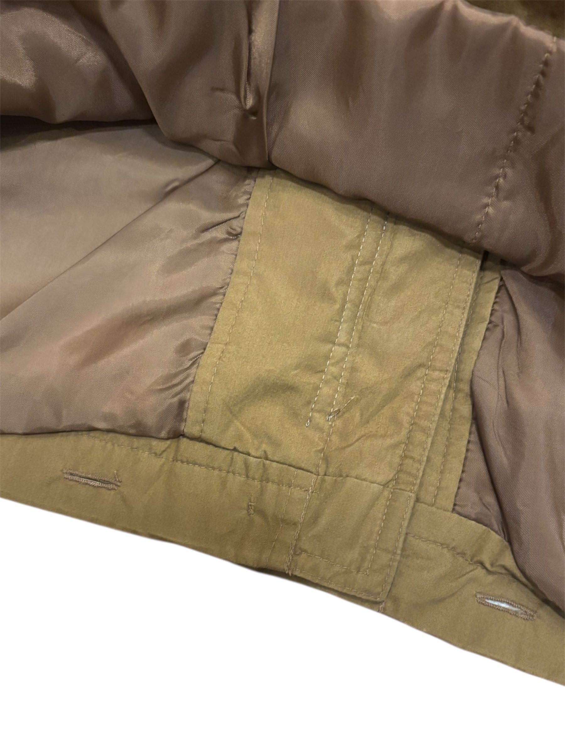 クレイジーパターンの中綿ジャケットでございます。暖かな着心地で全体的にくすみカラーで可愛らしく、大きめなサイズ感で男性の方でも着用可能です。ヨークの部分が特徴的でドローコードも付けられる仕様でデザイン製もある一着です。