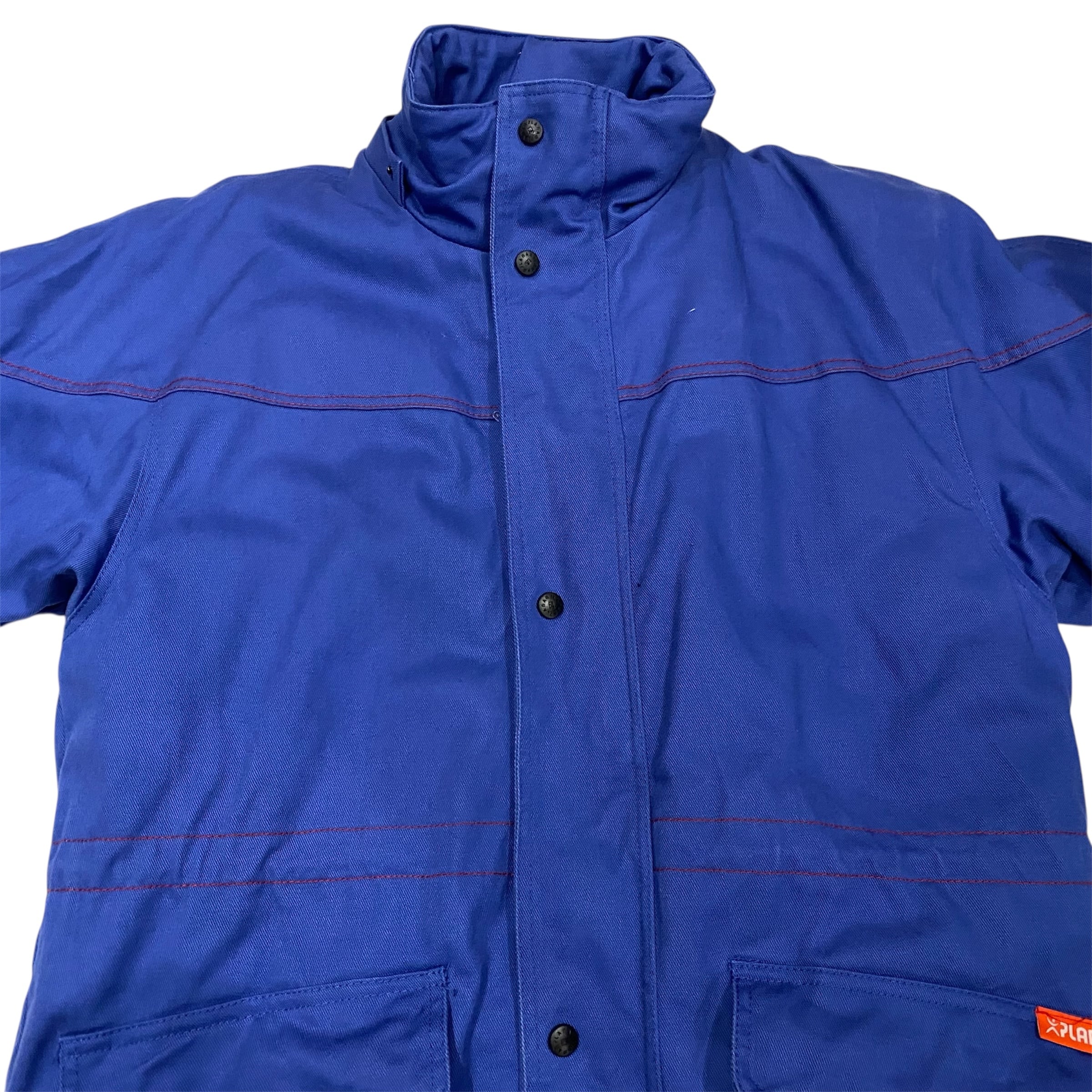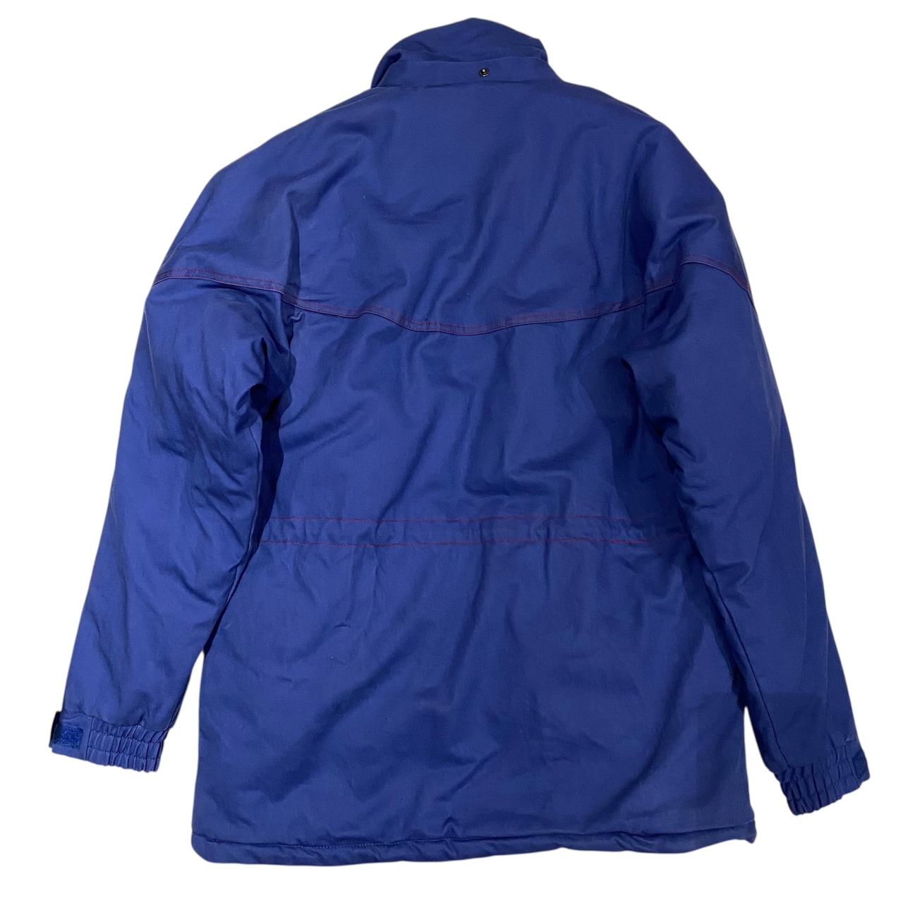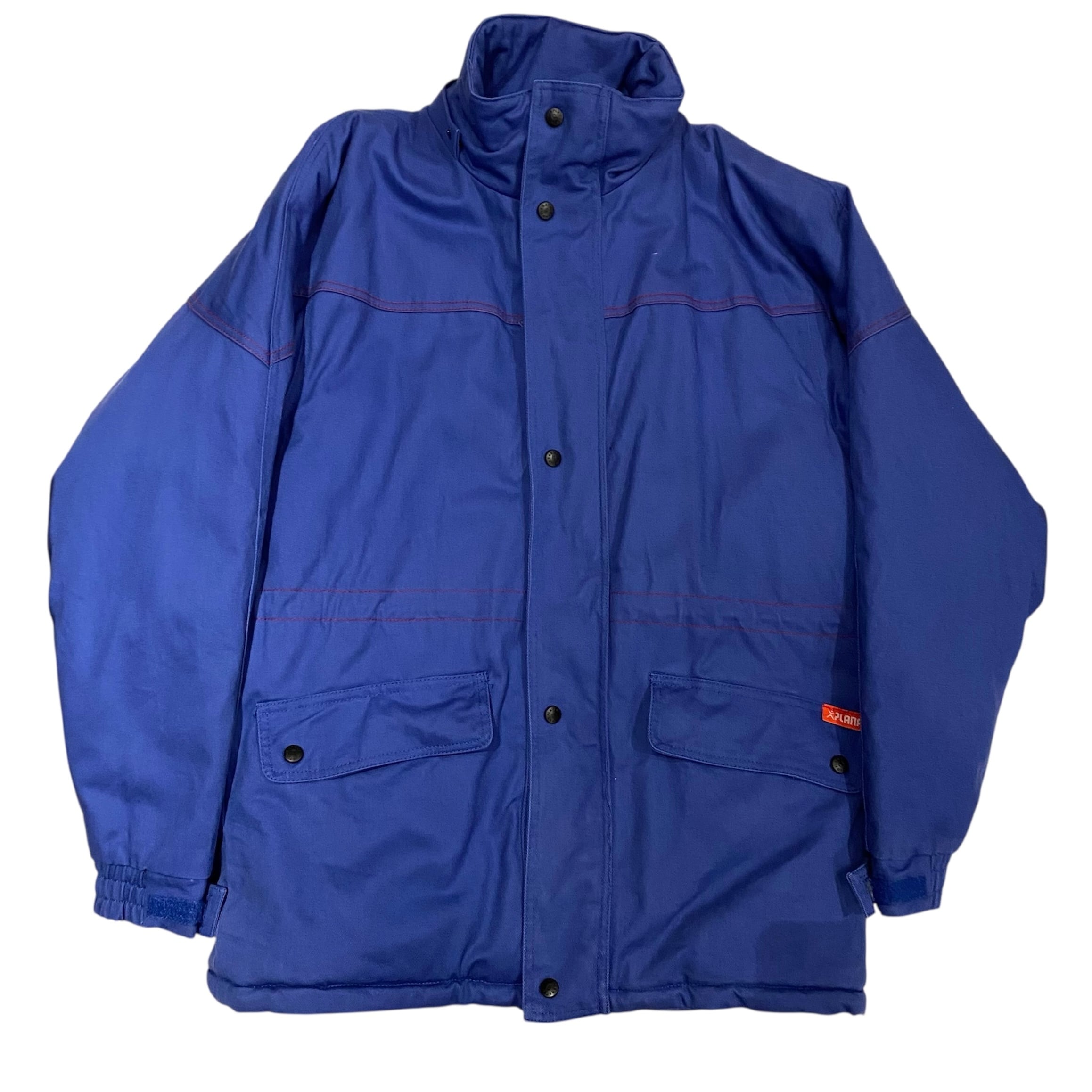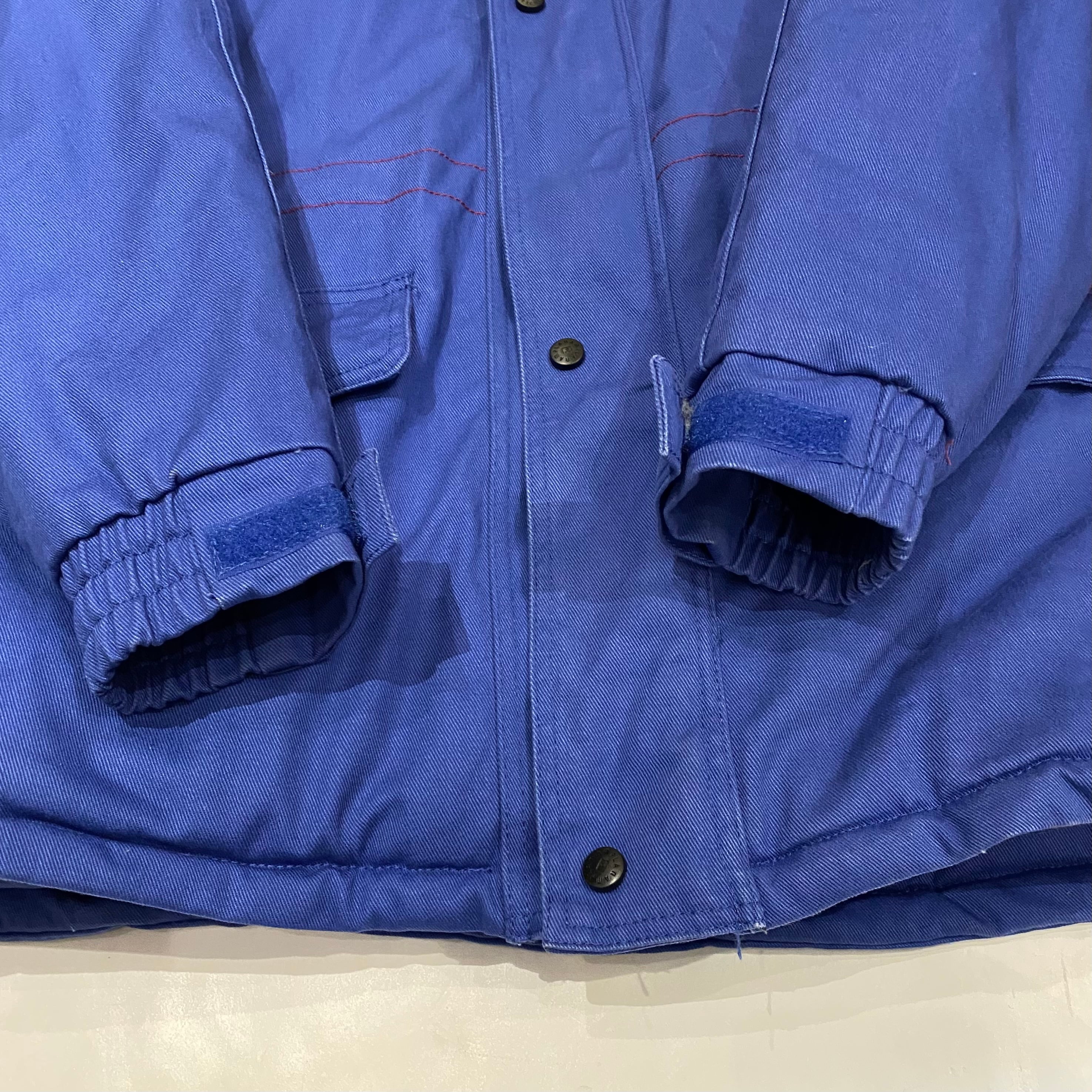 2000年代くらいのドイツの中綿入りのジャケットになります。表地はかたく目の詰まったコットン地、裏地はチェックの柔らかいキルティングが使われています。鮮やかなカラーにこのふっくらとしたボリューム感が着るととてもかわいいと思います。ダブルジッパー仕様、ステッチ使いやポケットなど各ディテールも凝った作りです。※後ろ肩部分に小さい汚れがあります。